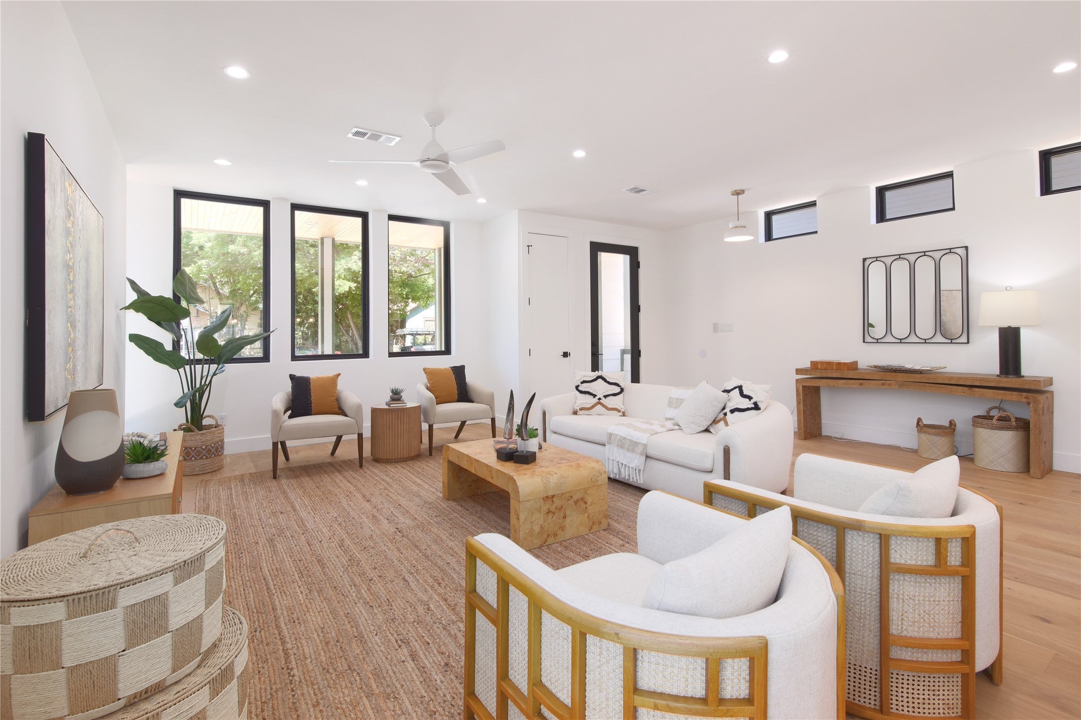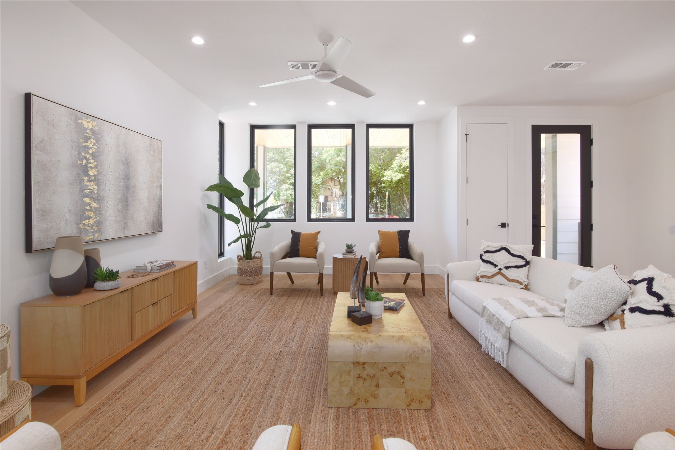 Welcome to the epitome of modern urban living in the coveted Holly neighborhood with an included garage apartment! This luxurious Alchemy Builders new construction home has everything you could possibly want: 3614 total square feet, 4 beds/3.5 baths in the main home (3309 sf), corner lot with alley access plus a double carport with a sleek 1 bed/1 bath garage apartment (305 sf) above it which is perfect for guests or an office. Step inside to view the stylish interior with high-end finishes and bright natural light that floods in through the huge windows, showcasing the wood and tile flooring. The open-concept layout seamlessly connects the living, dining, and kitchen areas, creating a perfect space for entertaining. The gorgeous modern kitchen features quartz countertops, tile backsplash, a center island, ample counter space, top-of-the-line appliances, and an abundance of contemporary cabinetry throughout. The home is situated on a large lot with spectacular trees that makes for beautiful views from the bedrooms. This is truly an urban oasis in 78702, you'll have privacy and space but live blocks from Downtown, Town Lake and some of the best entertainment and restaurants in the city (Launderette, La Barbecue, and more). This is a truly special property with innovative elements woven throughout, must see this gem!