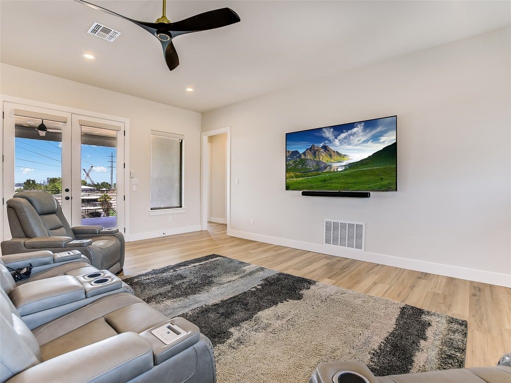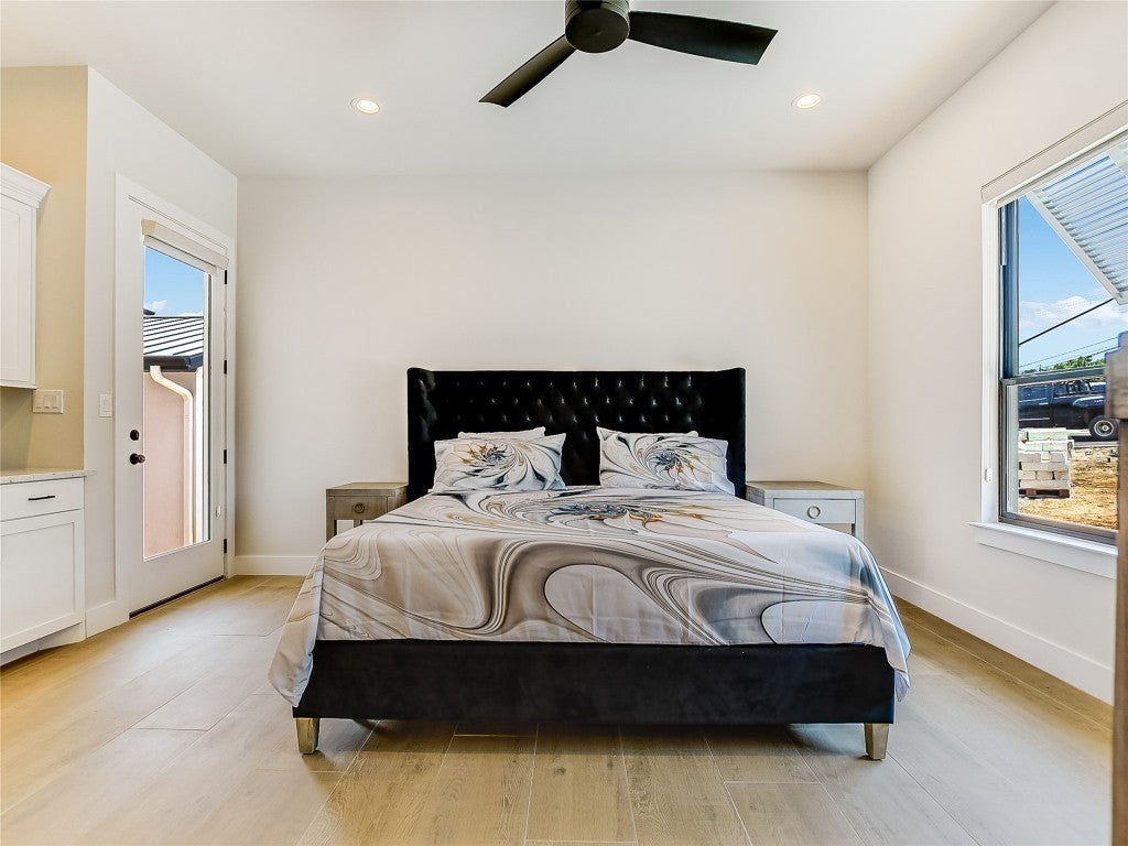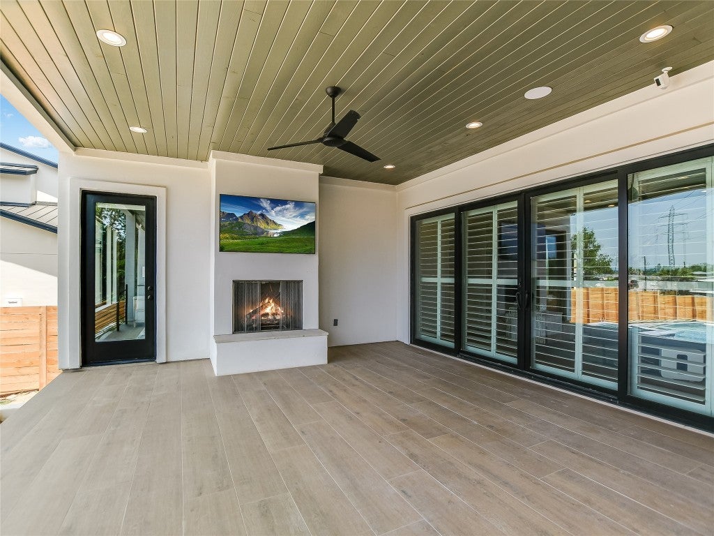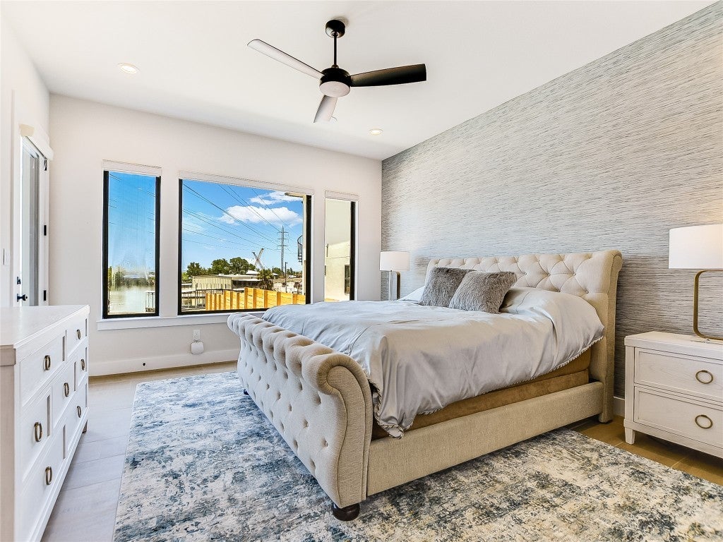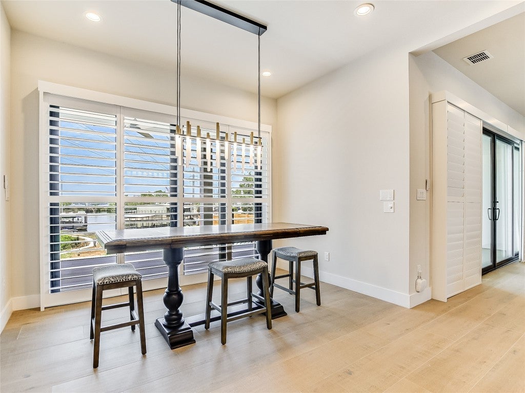 Enjoy lakeside living with this stunning home on Lake LBJ in the gated waterfront community of Captains Cove. Whether you're looking for a private retreat or a lucrative investment, this waterfront beauty delivers. Designed for both comfort and style, this lake house boasts an open living area with floor-to-ceiling windows, gas fireplace, ceramic plank flooring and breathtaking water views. The island kitchen is an entertainer's dream, featuring soft-close cabinetry, granite countertops, dine-in breakfast bar and top-tier appliances, including double ovens and a 6-burner gas cooktop. The spacious main-level primary suite offers a sitting area, dual sinks with quartz countertops, a soaking tub and a beautifully tiled frameless glass shower. A lockable guest suite with a private entrance is perfect for short-term rentals. Upstairs, your visitors will love two well-appointed guest bedrooms, each with its own bath, a secondary living area with theater seating and a covered deck overlooking the pool. Thoughtful upgrades include designer lighting, tankless water heater, automatic blinds, Sonos sound system and more. Outdoor amenities are just as impressive, featuring a covered patio with gas fireplace, built-in grill, pool, hot tub and 200+ ft of NW-facing water frontage. Boaters will appreciate two 27' boat slips. All TVs, electronics and furniture convey with the sale. With short-term rental potential, this property offers a fantastic opportunity to generate income while enjoying the best of lakefront living.