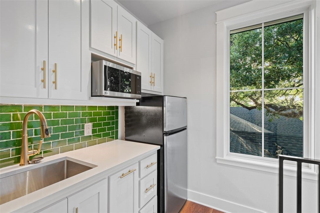 Beautifully remodeled home in the heart of much sought after, Travis Heights. Studio with a full bath and kitchenette, private entrance, and a beautiful 2nd story deck. New stainless steel appliances, built in storage, and a stackable washer/dryer. Located in Travis Heights on a quiet street only 1 1/2 blocks from Stacy Park and Blunn Creek. Walking distance to South Congress shops and restaurants, Lady Bird Lake and the Hike & Bike Trail, and only 1 mile from Downtown Austin.