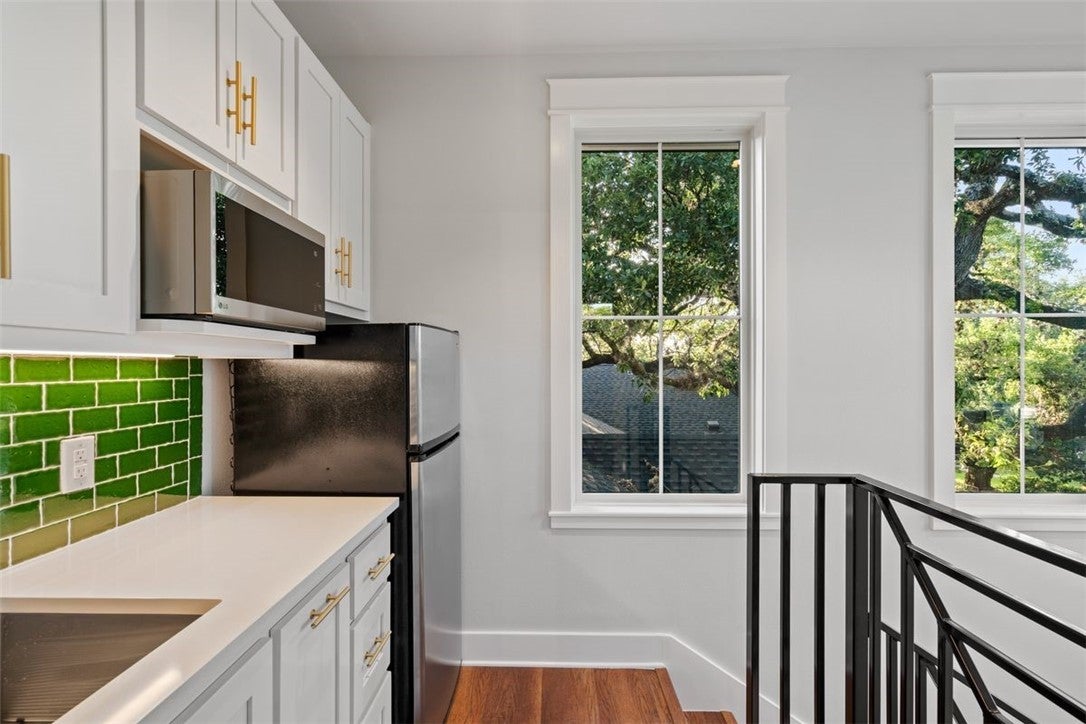 - Dryer, Dishwasher, Exhaust Fan, Free-Standing Gas Range, Free-Standing Refrigerator, Freezer, Disposal, Gas Range, Gas Water Heater, Microwave, Oven, Refrigerator, Stainless Steel Appliance(s), Vented Exhaust Fan, Washer/Dryer Stacked