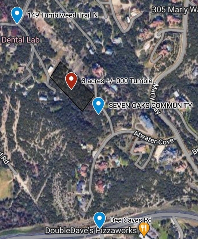 Un-restricted undeveloped 3 acres in coveted Eanes ISD. Gorgeous Wooded Hillside Lot with Incredible Views for Miles. Property backs to Seven Oaks (potential easement- neighbor has current easement in place) or can access via Tumbleweed Trail. Client is selling off a portion of their property. Contact agent for details. Plat to be finalized after closing.