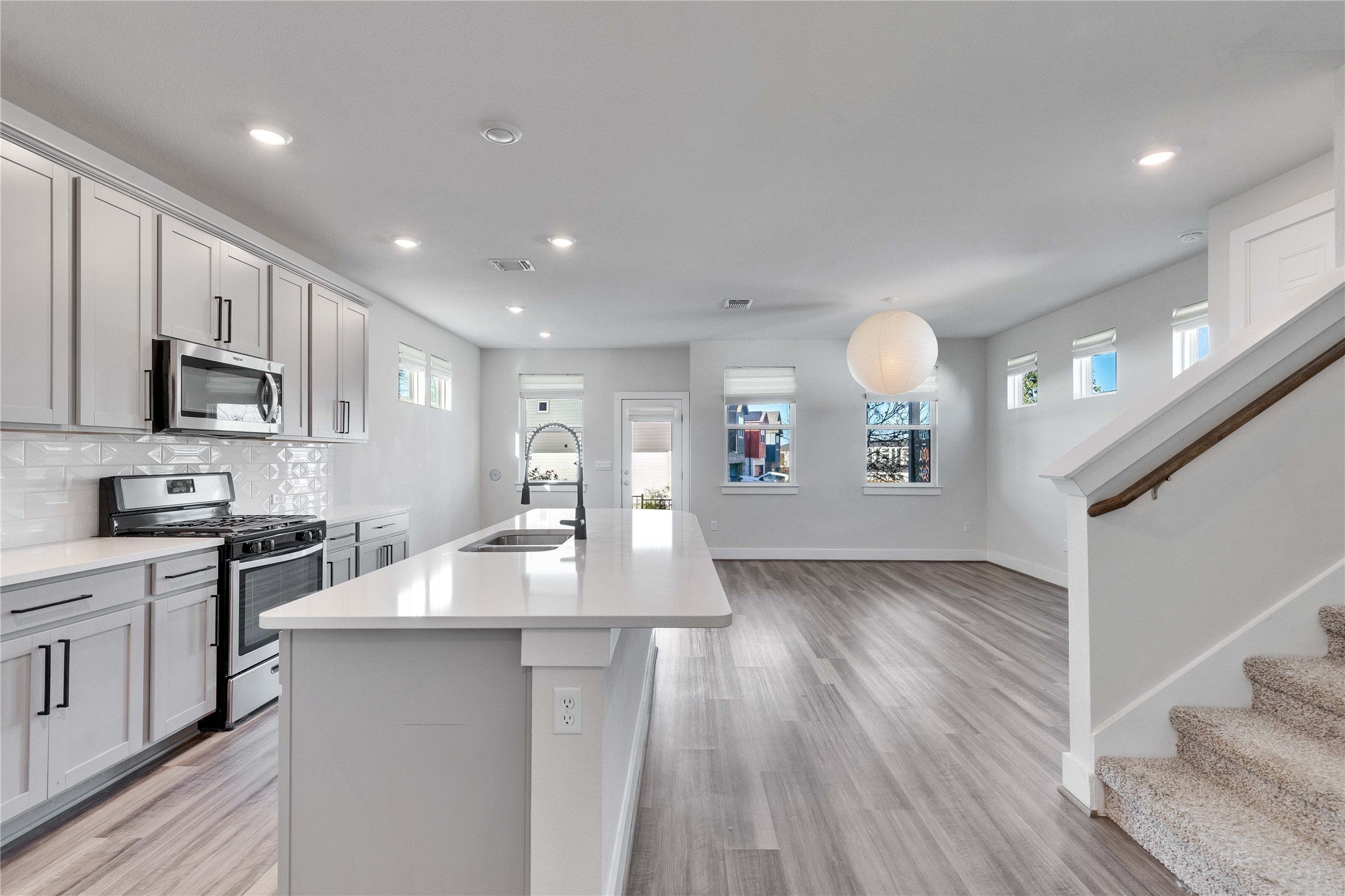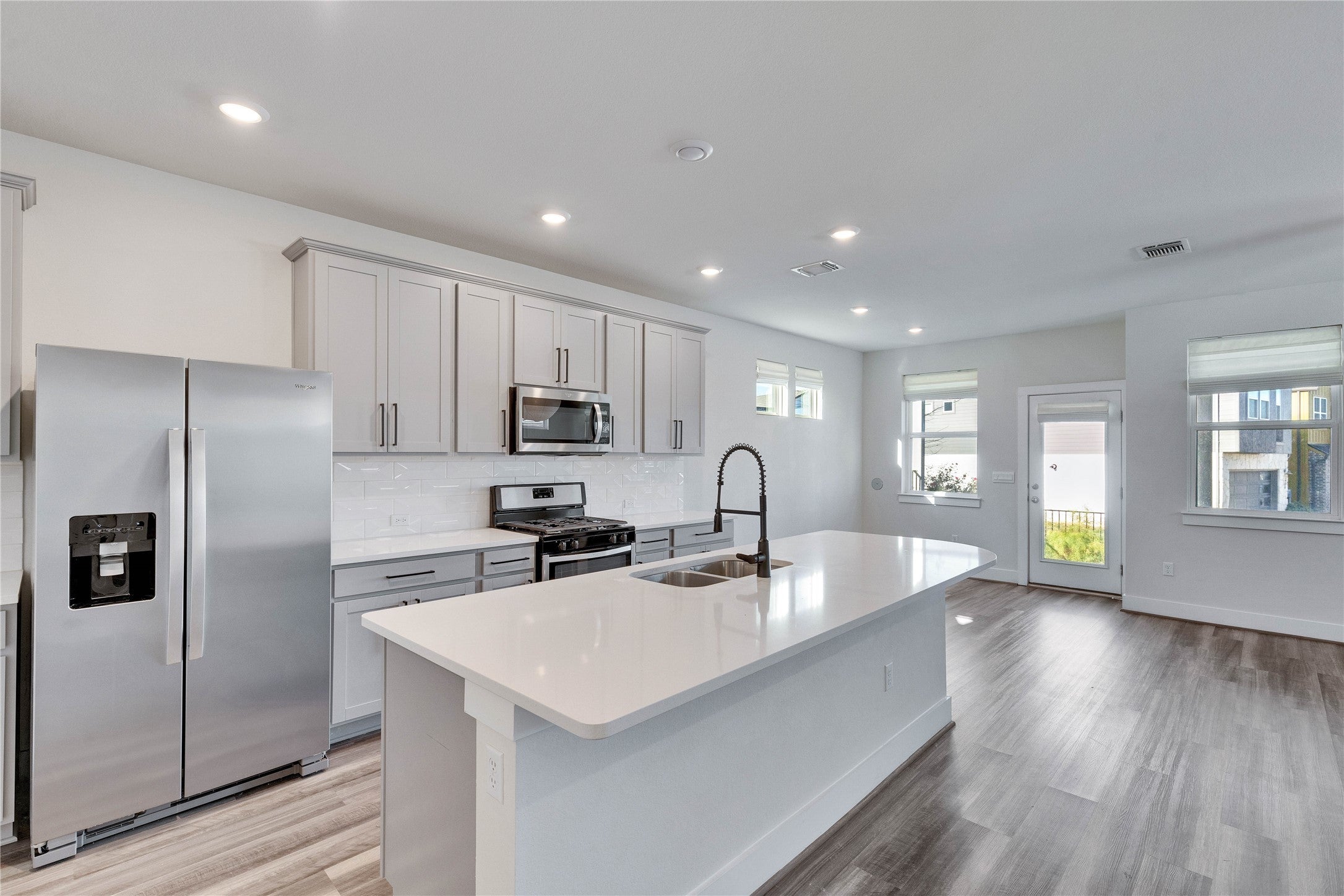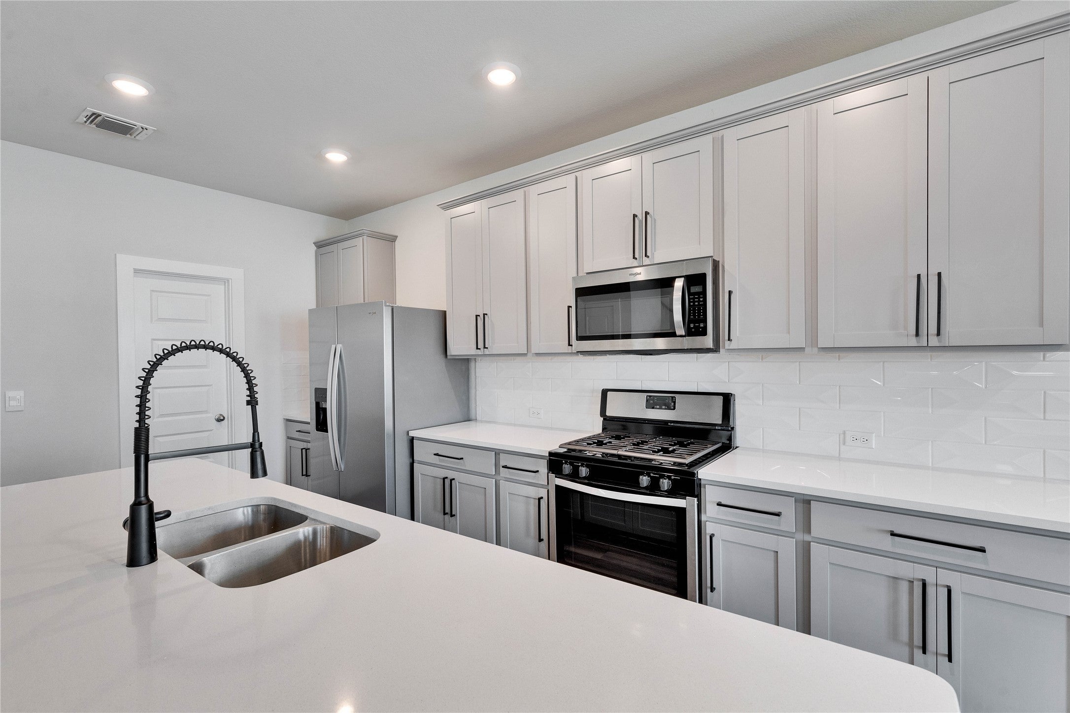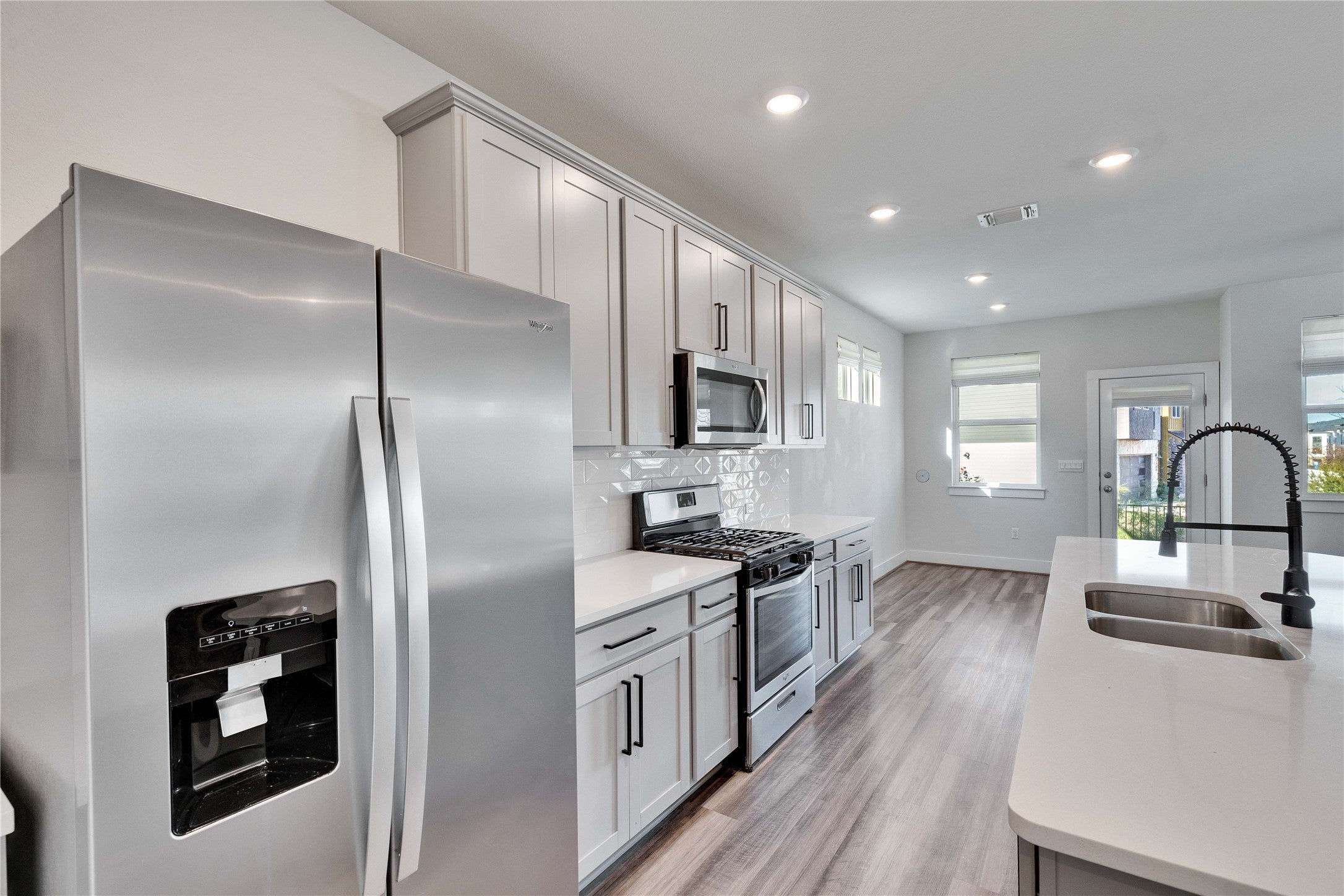 - Dryer, Dishwasher, Free-Standing Gas Oven, Free-Standing Gas Range, Free-Standing Range, Free-Standing Refrigerator, Disposal, Gas Oven, Gas Range, Gas Water Heater, Ice Maker, Microwave, Range, Refrigerator, Range Hood, Stainless Steel Appliance(s), Washer, Freezer, Oven