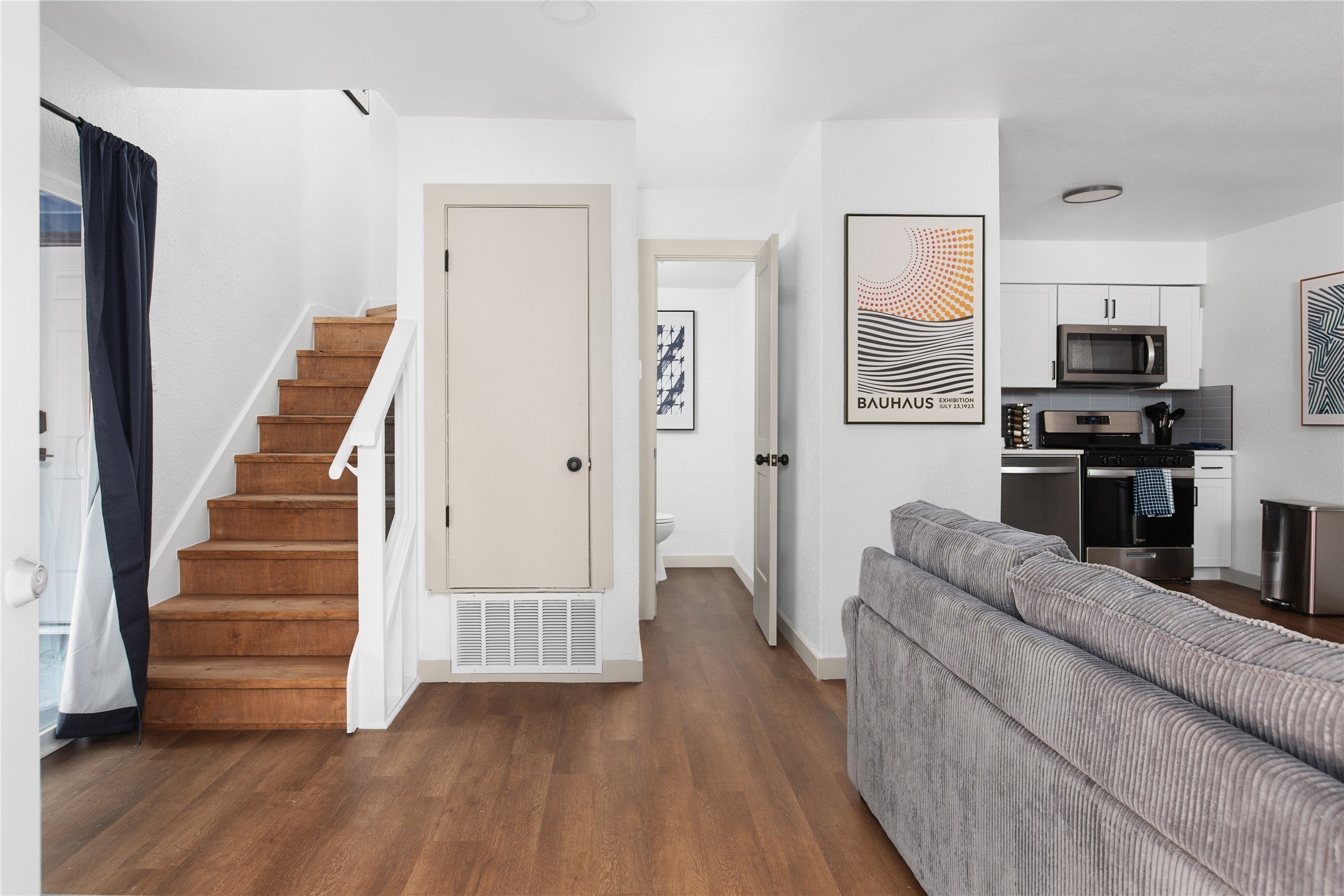 - Dryer, Dishwasher, Gas Oven, Microwave, Refrigerator, Stainless Steel Appliance(s), Washer