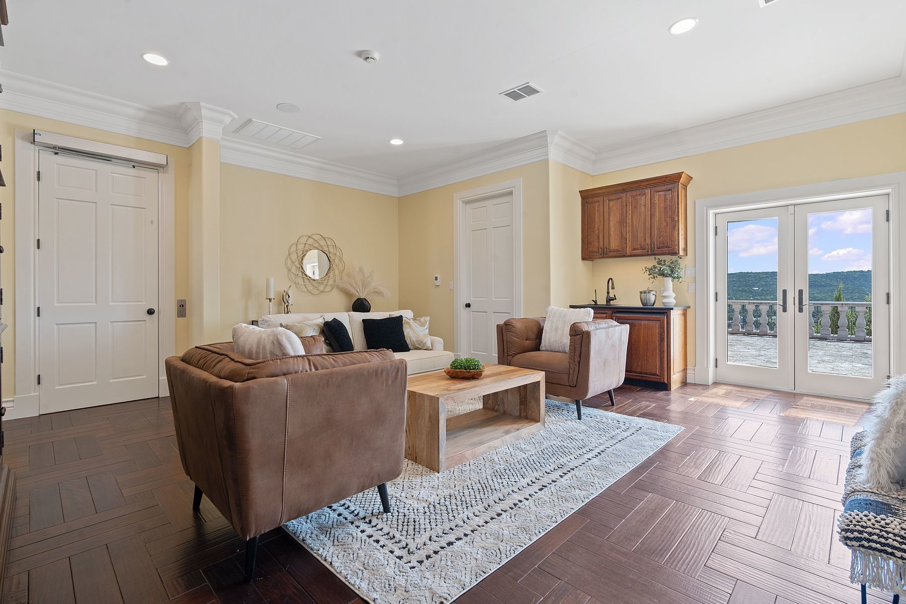 Rising from the shoreline of Lake Travis to a private hillside perch beside ~140 acres of protected preserve, this 4.4-acre waterfront estate offers a rare combination of sweeping views and direct lake access. Mornings begin with still water and wide-open vistas, while evenings unfold under expansive Hill Country skies—an experience that feels worlds away, yet remains within easy reach of Austin. Behind dual gated entrances, the 6,644 sf Mediterranean-inspired residence is positioned to capture panoramic Lake Travis views from nearly every room. Inside, exceptional craftsmanship is on display—from gothic-style arches to a grand staircase crowned with a hand-painted night-sky ceiling. Outdoor living is equally compelling. An expansive terrace with 180-degree lake views, custom spa and fountain finished with Turkish petrified coral, and inviting gathering areas set the stage for entertaining or quiet evenings under the stars. A private tram leads to your boat slip below, making it effortless to spend a day on the water—boating, swimming, or simply enjoying the lake. The kitchen features Wolf, Miele, and Sub-Zero appliances, with a butler’s pantry and theater room inspired by LA’s historic Egyptian Theatre. The primary suite is a light-filled retreat with patio access, a spa-like bath, Phylrich fixtures, and a custom closet with shoe carousel. Resort-style amenities include a heated indoor pool, sauna, gym, and elevator with step-free main-level living. Built with enduring quality—mahogany floors, fossilized stone granite, Andersen windows, and a Ludowici tile roof. A detached 1,760 sf carriage house, climate-controlled RV garage, solar array, 3-car garage with Tesla charging, and indoor/outdoor dog kennel further enhance the property. Located ~7 miles to shops and restaurants along Whitestone Blvd, this is a rare opportunity to experience Lake Travis living with both breathtaking views and true waterfront access—an offering few properties can match.