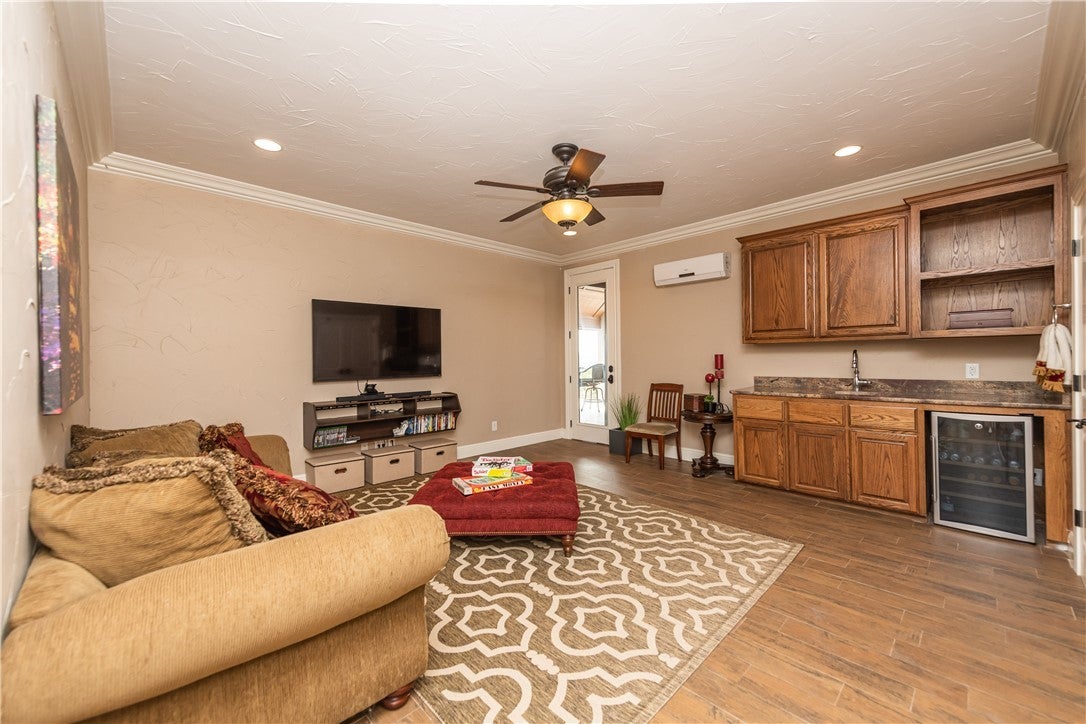 - Living Room, Masonry, Stone, Wood Burning, Outside, Propane, Raised Hearth