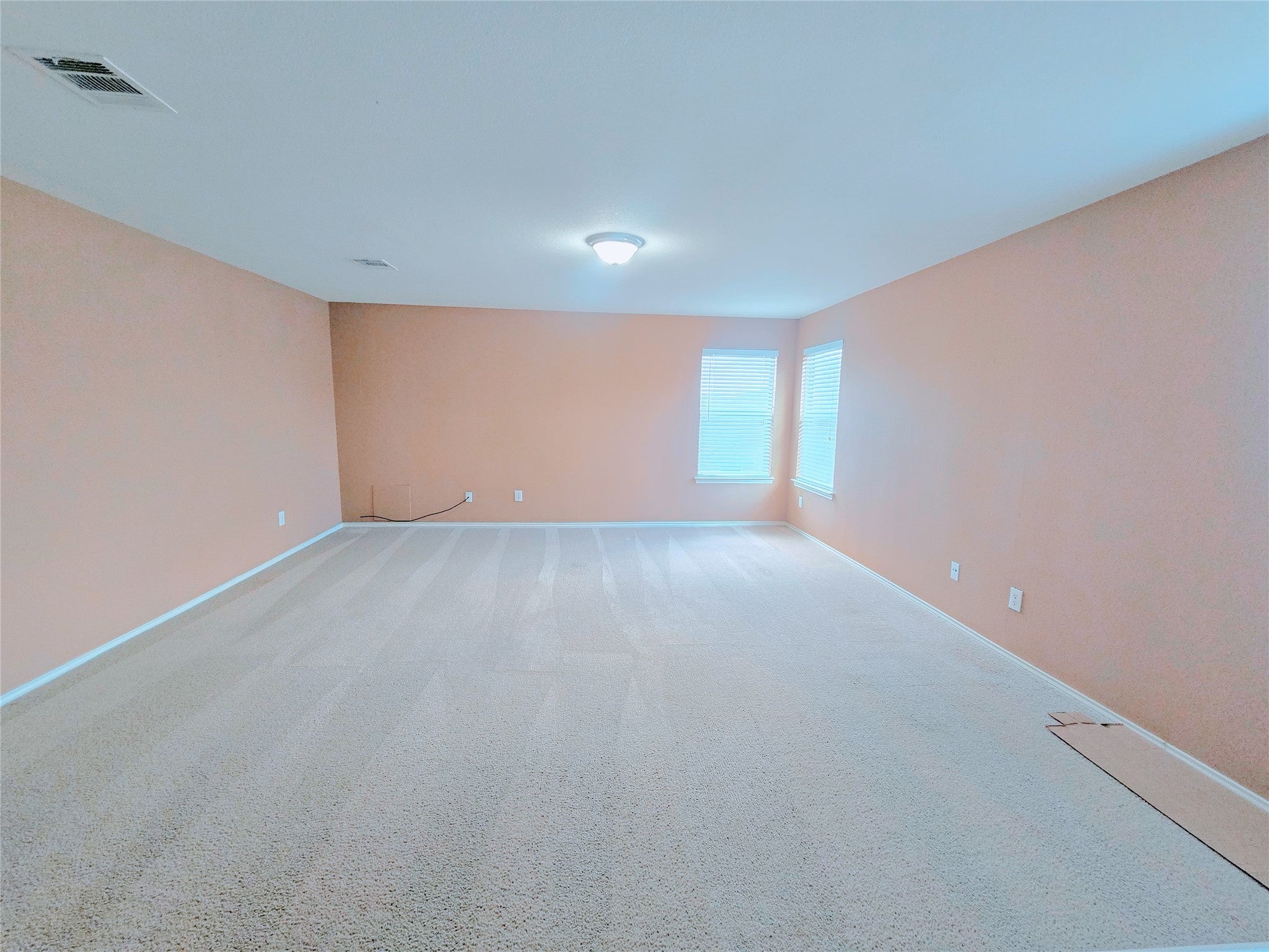 Large and spacious house with interior designer colors and ready for immediate move-in! Primary bedroom downstairs and open living area has beautiful laminate wood floors throughout. Kitchen with new stainless steel range and hood vent, opens to the living room dining area and has beautiful decorative crown moldings. Large Gameroom Upstairs with large secondary bedrooms. Outdoor storage unit and concrete patio ready for summer BBQs! This is a Beautiful neighborhood with community POOL!
