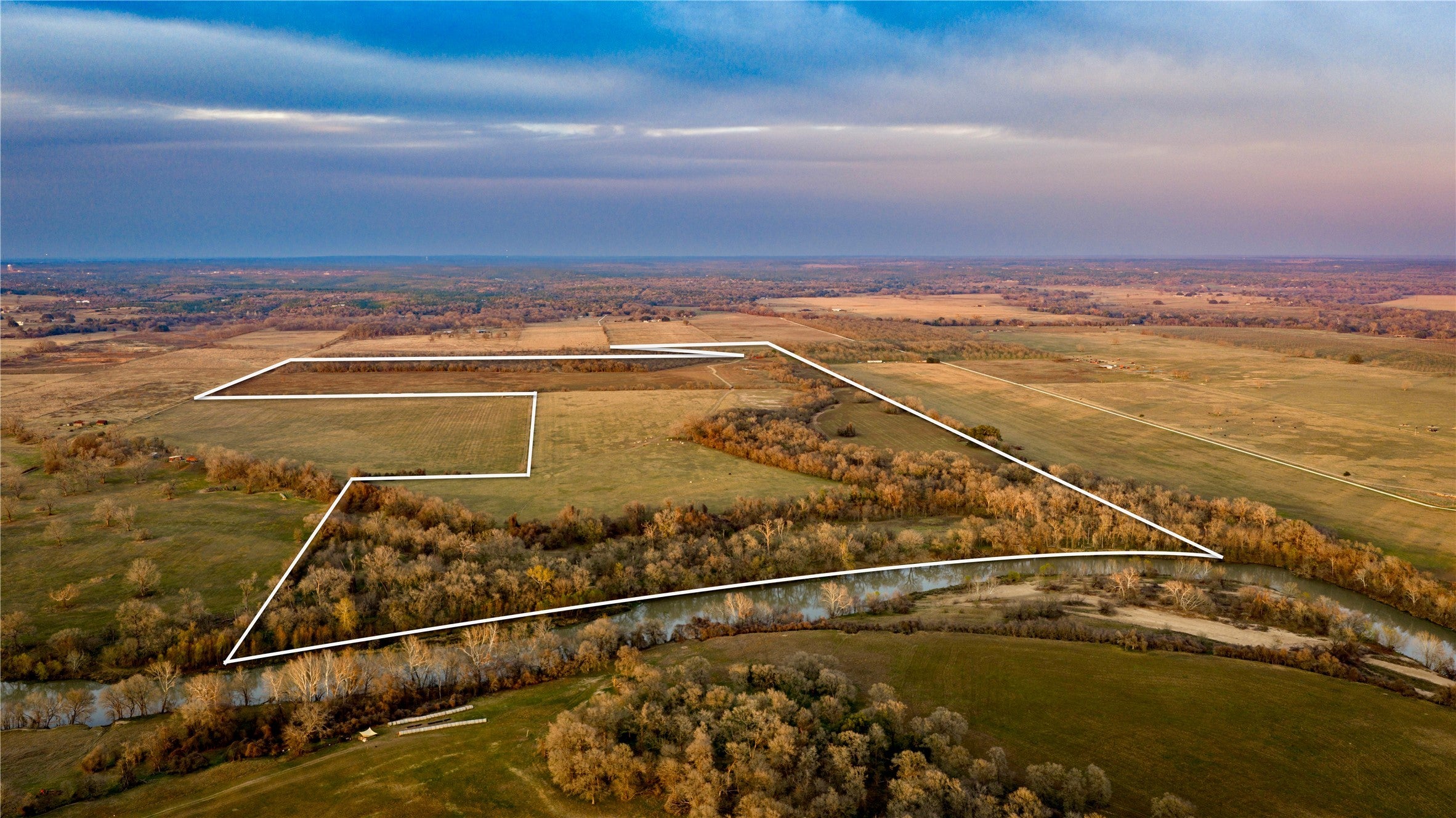 Overview: Welsch River Farms is a 231± acre riverfront ranch in Bastrop County offering a rare opportunity to shape a versatile cattle, hunting, or recreational property near Austin. With productive pastureland, hardwood cover, and excellent water features, it provides an ideal foundation for both agricultural use and weekend enjoyment. Water: The ranch includes 1,935± feet of Colorado River frontage for fishing, kayaking, and boating. A spring-fed wet-weather creek runs along the eastern boundary, adding natural appeal. Additional water sources include one pond and two non-operational water wells. Land: The north half is planted in oats, while the south half features native grasses—ideal for grazing and wildlife. Mature Live Oaks, Post Oaks, and Elms are scattered throughout the mostly flat terrain, with trails already in place. The ranch carries an ag exemption to keep operating costs low. Wildlife & Hunting: Whitetail Deer, Turkey, Dove, and Hogs are abundant. Two blinds and two feeders are already set up, offering immediate hunting capability. Improvements: Perimeter and cross fencing support livestock rotation. A small shed with electricity provides storage or workspace. With minimal vertical improvements, the property offers a blank slate for a custom homestead or hunting camp. Location: Conveniently located 8± miles from Bastrop, 9± miles from Smithville, 45± miles from Austin, and 120± miles from Houston—ideal for full-time living or weekend use. Remarks: With river frontage, productive land, hardwoods, and strong agricultural potential, Welsch River Farms offers exceptional versatility and development potential in a highly desirable corridor near Austin.