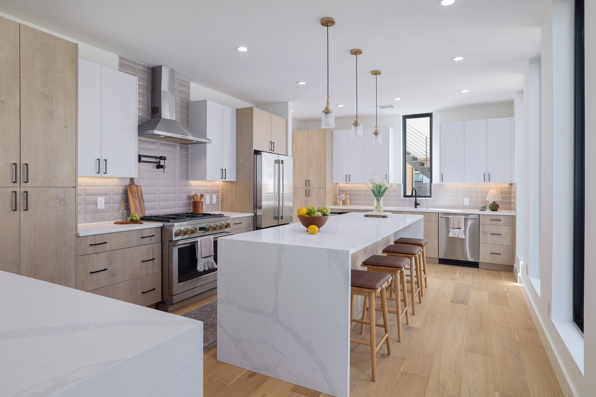 Welcome to the epitome of modern urban living in the coveted Holly neighborhood with income producing potential from the garage apartment! This luxurious Alchemy Builders new construction home has everything you could possibly want: 3614 total square feet, 4 beds/3.5 baths in the main home (3309 sf), corner lot with alley access, plus a double carport with a sleek 1 bed/1 bath garage apartment (305 sf) above it which is perfect for guests, an office or even to use as a STR. Step inside to view the stylish interior with high-end finishes and bright natural light that floods in through the huge windows, showcasing the wood and tile flooring. The open-concept layout seamlessly connects the living, dining, and kitchen areas, creating a perfect space for entertaining. The gorgeous modern kitchen features quartz countertops, tile backsplash, a center island, ample counter space, top-of-the-line appliances, and an abundance of contemporary cabinetry throughout. The home is situated on a large lot with spectacular trees that makes for beautiful views from the bedrooms. It is already plumbed to be “outdoor kitchen ready” so you can take full advantage of entertaining and relaxing in the front yard. This is truly an urban oasis in 78702, you'll have privacy and space but live blocks from Downtown, Town Lake and some of the best entertainment and restaurants in the city (Launderette, La Barbecue, and more). This is a truly special property with innovative elements woven throughout, must see this gem!