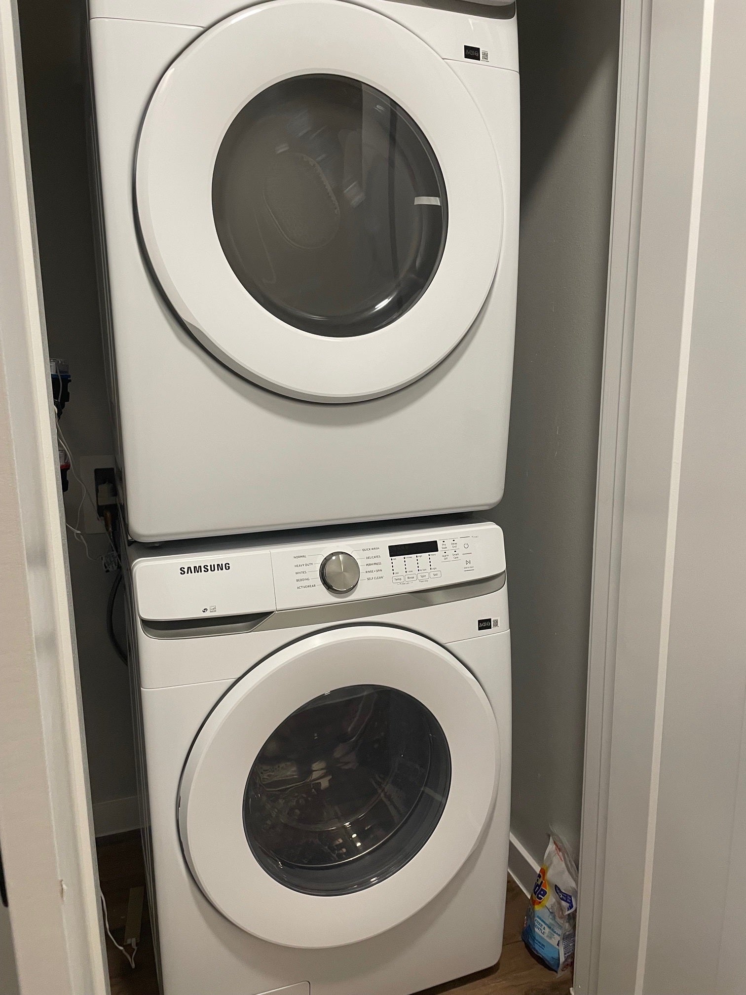 - Dishwasher, Exhaust Fan, Free-Standing Refrigerator, Gas Range, Microwave, Washer/Dryer Stacked