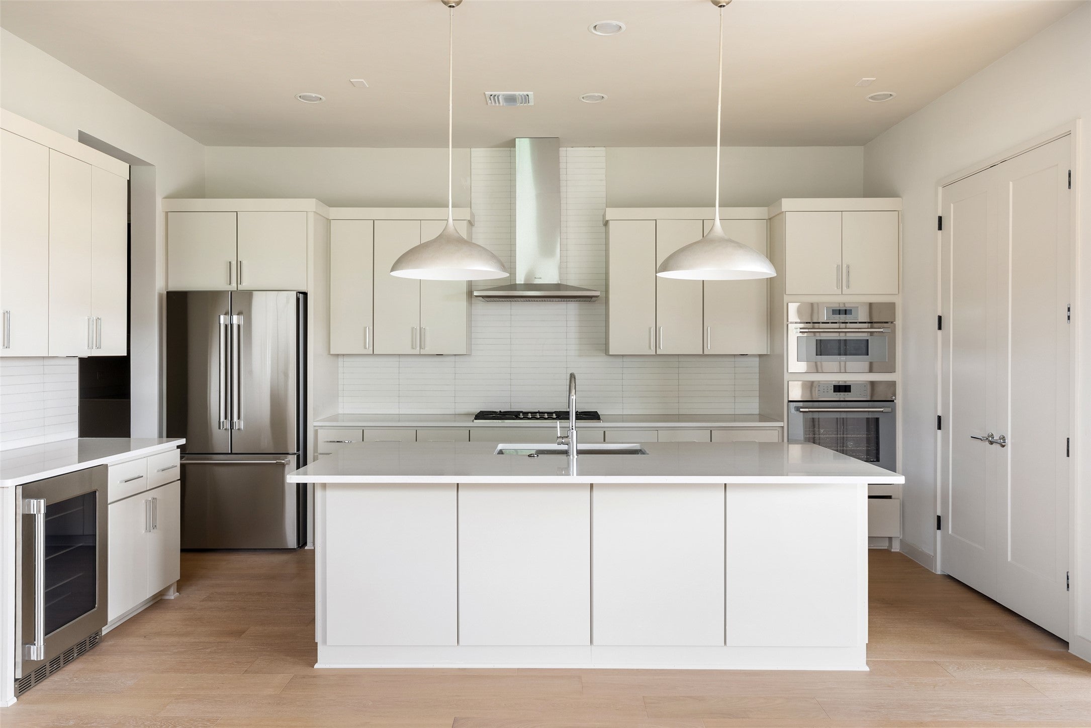 Set behind the gates of VUE 2222, a newly introduced Luxe lock-and-leave community, this exceptional residence offers a refined expression of modern Hill Country living with effortless access to Austin’s cultural, culinary, and outdoor amenities. Thoughtfully positioned to capture views of rolling hills and glimpses of the Austin skyline, VUE delivers a rare balance of privacy, design, and connectivity. The APEX Plan unfolds with intention and light, featuring four bedrooms and four-and-a-half baths within a spacious open-concept layout. Soaring ceilings and expansive windows fill the home with natural light, while designer-selected finishes create a polished, contemporary aesthetic throughout. The main level is anchored by a serene primary suite, offering a private retreat designed for comfort and ease. At the heart of the home, the kitchen blends form and function with Silestone countertops and a curated suite of Thermador appliances, seamlessly connecting to the living and dining areas—ideal for both entertaining and everyday living. The second floor expands the living experience with a bonus room and game room, along with three additional bedrooms, each offering ensuite baths and walk-in closets, providing comfort and privacy for family and guests. Designed with sustainability in mind, the home includes Pella Impervia fiberglass windows with dual Low-E SunDefense glass, a tankless water heater, and a 16 SEER Trane HVAC system with WiFi-enabled thermostat. A two-car garage, EV charger-ready with dedicated 30-amp outlets, adds modern convenience. Residents enjoy access to Tumbleweed Park, a private community amenity featuring a putting green, hammock garden, walking trail, community garden, outdoor kitchen, fire pit, cornhole courts, outdoor fitness areas, and gathering spaces anchored by the signature chandelier tree—an inviting extension of the VUE lifestyle.