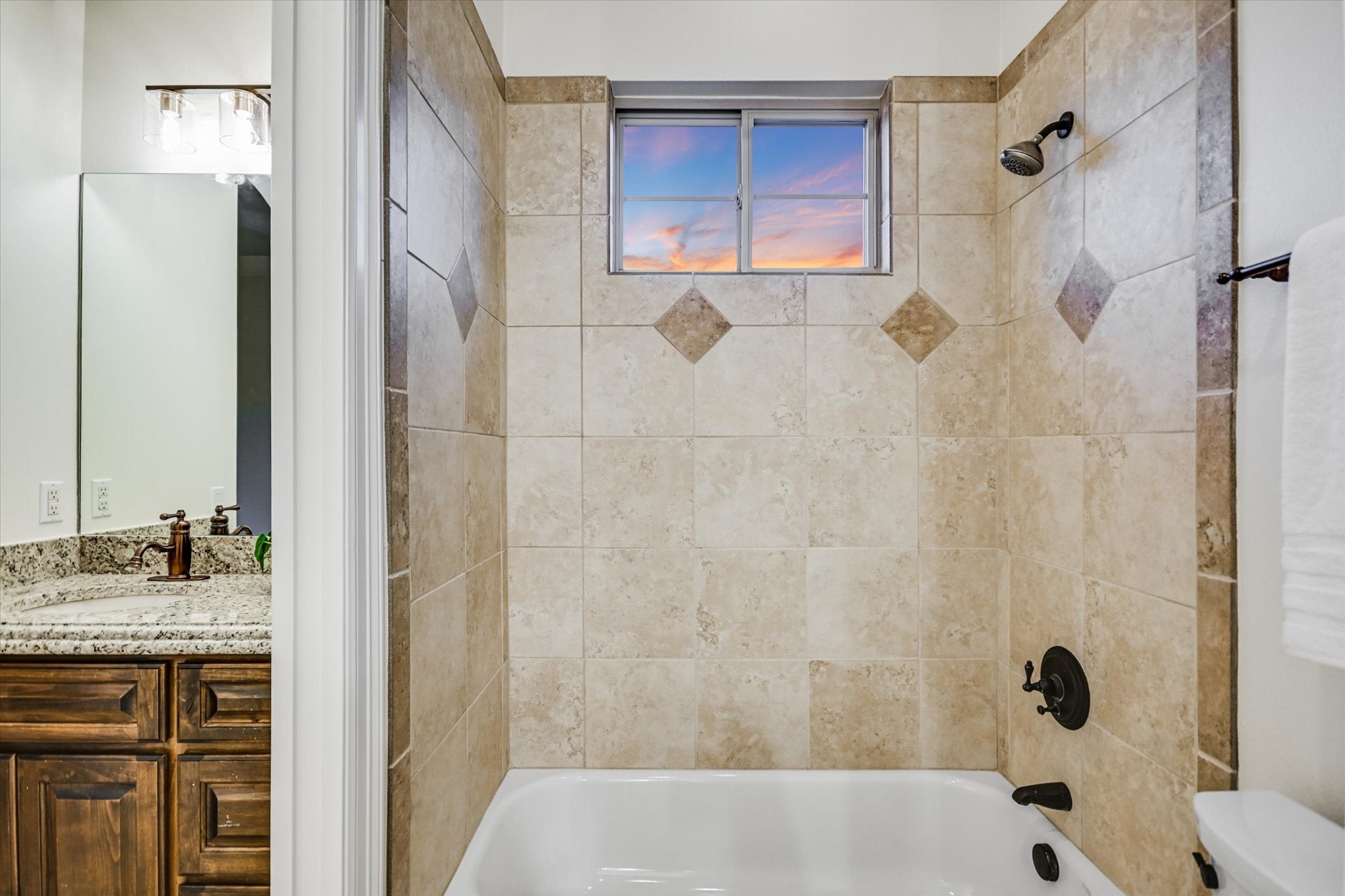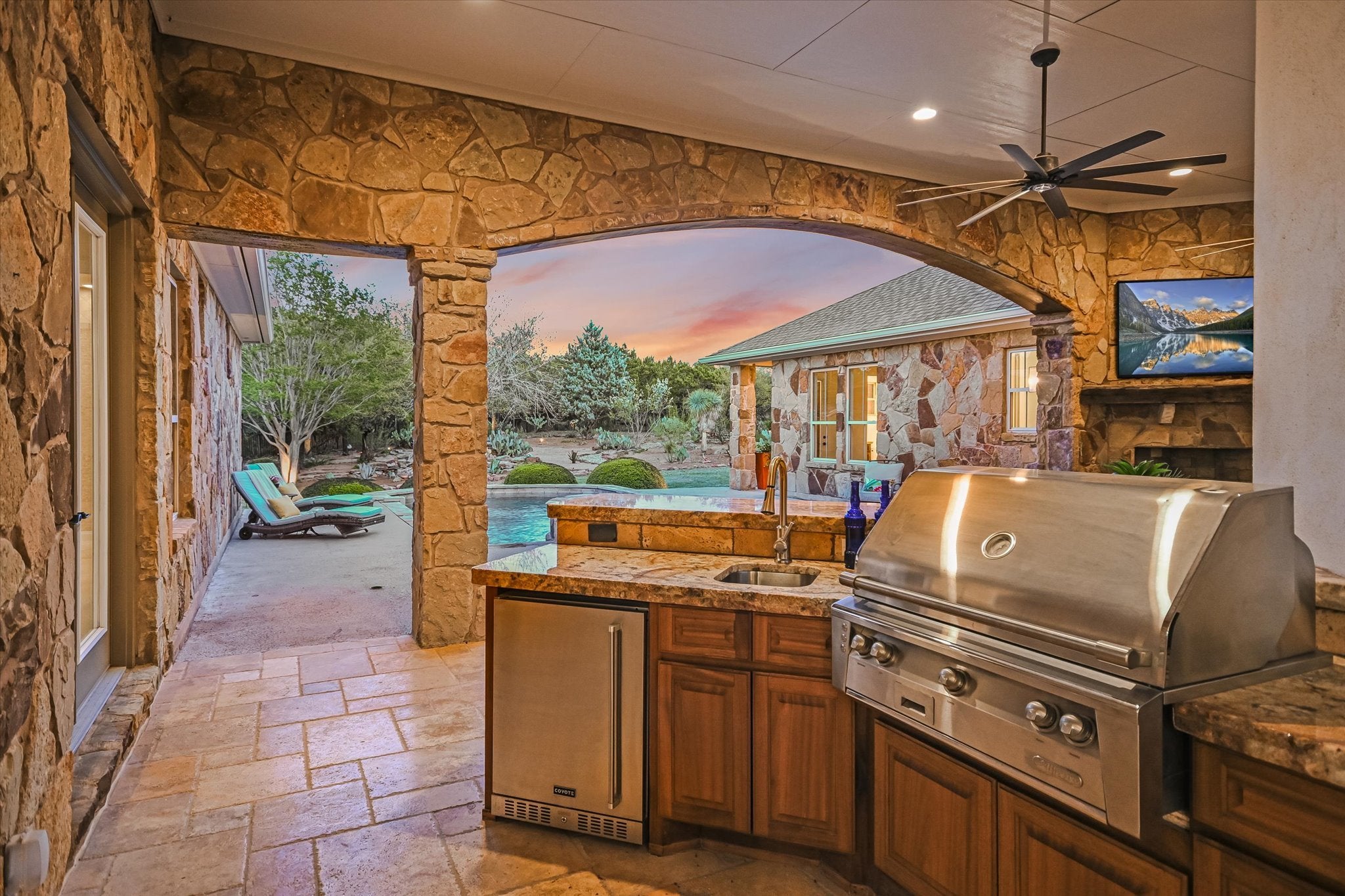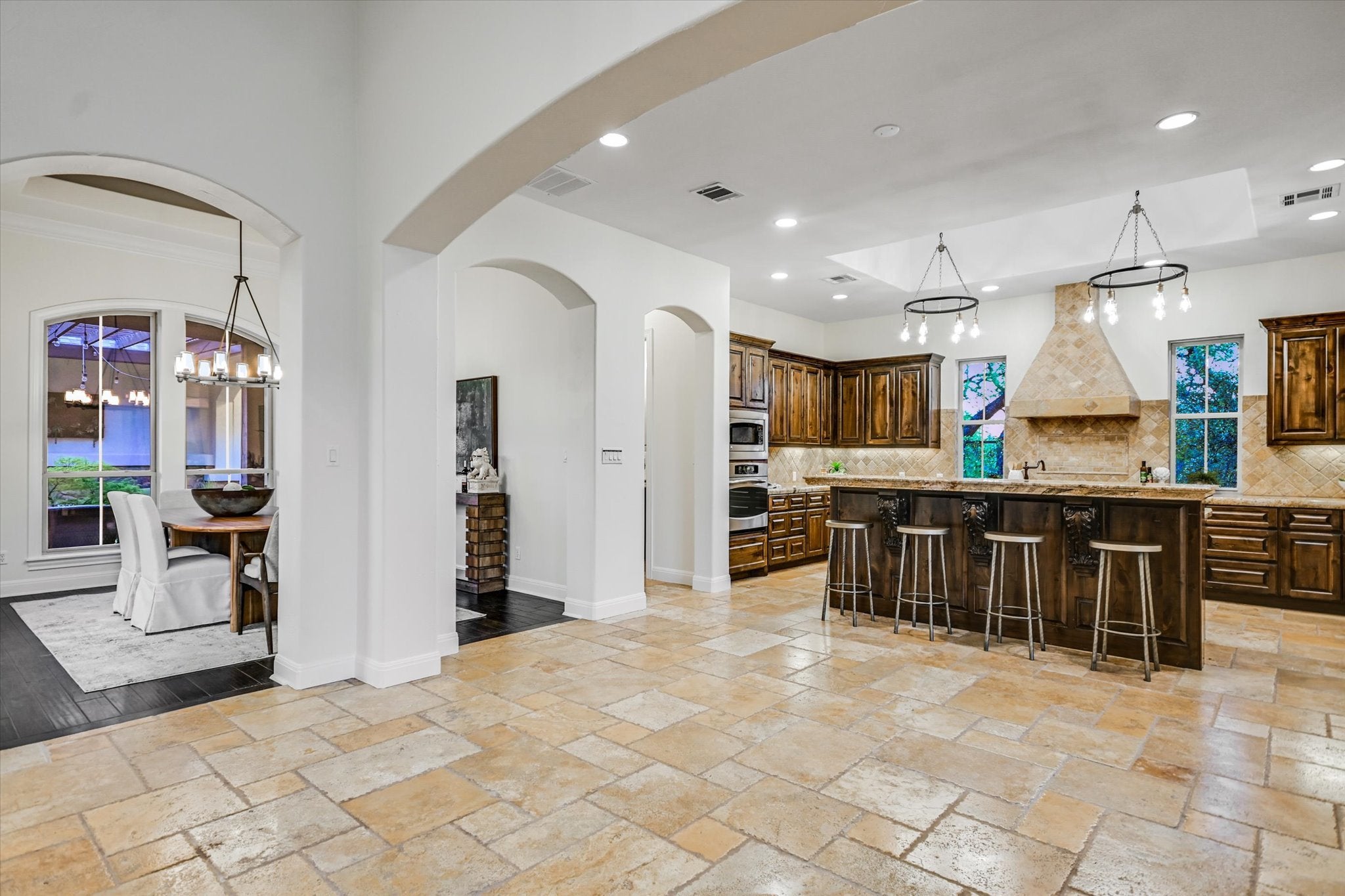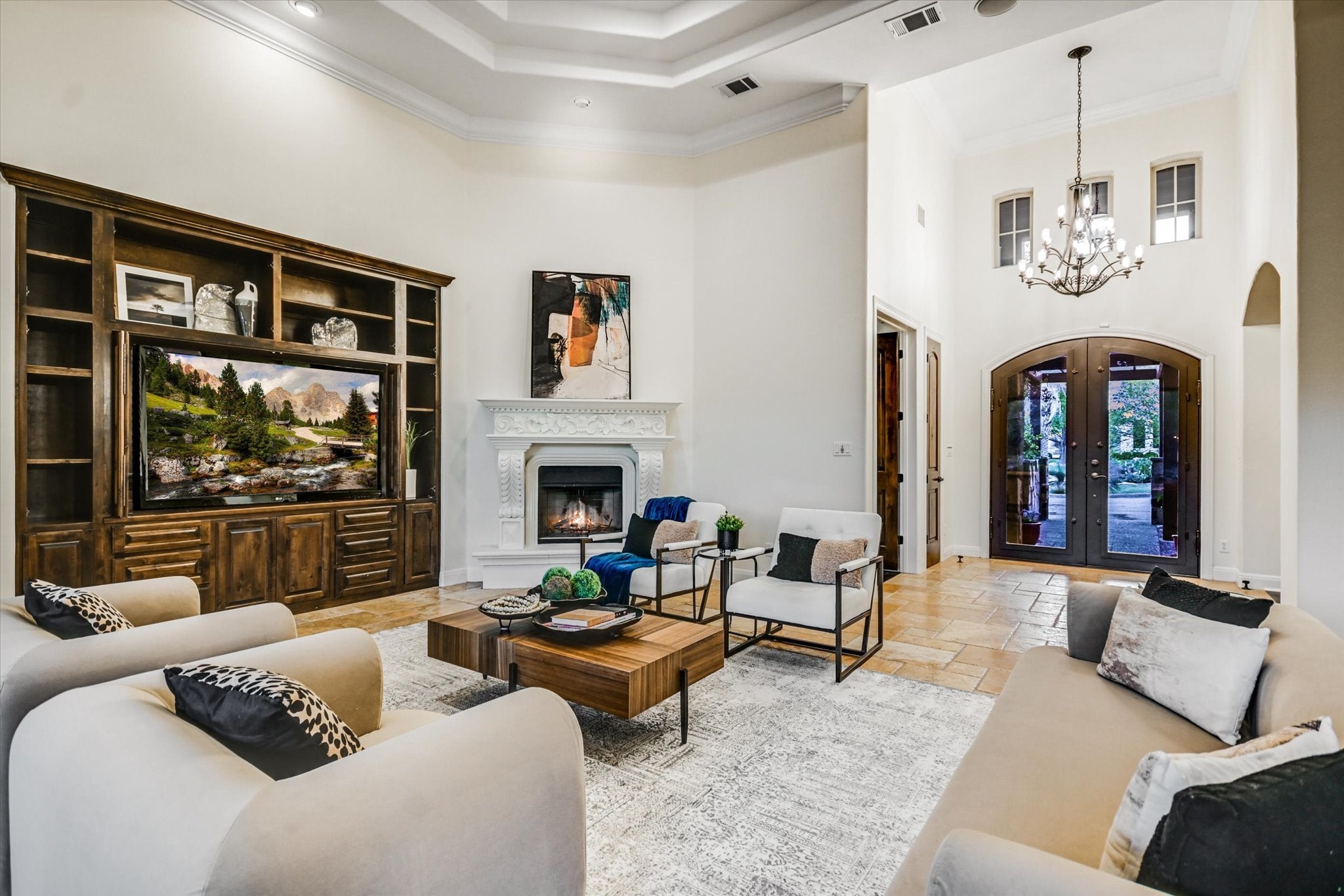 Rare opportunity in the heart of Lakeway—an exceptional flat 1.31-acre homesite, originally comprised of two lots, offering a separate ~0.7-acre portion ideal for a future residence or ADU, or a private sports court. This quality-built, estate-style single-story home spans over 4,000 square feet and features 4 bedrooms, soaring ceilings, expansive living spaces, and seamless indoor-outdoor flow. The chef’s kitchen opens to the main living area, while the spacious primary suite offers a true retreat with a spa-like bath and private patio access. A dedicated study provides the perfect work-from-home space, and a well-appointed dining area enhances everyday living. A charming courtyard entry enhances the home’s character, while the detached three-car garage is connected by a breezeway, offering both privacy and convenience. An ensuite guest quarters with private access to the pool and outdoor living area provides ideal accommodations for guests or multi-generational living. The property backs to a greenbelt, offering exceptional privacy, and is located on a quiet street with little traffic. Outdoor living is exceptional, featuring a resort-style pool and spa, multiple covered patios, and a separate pavilion with a fire pit—perfect for entertaining. The low-maintenance grounds offer both beauty and ease, all just minutes from Lakeway amenities, golf, and Lake Travis.