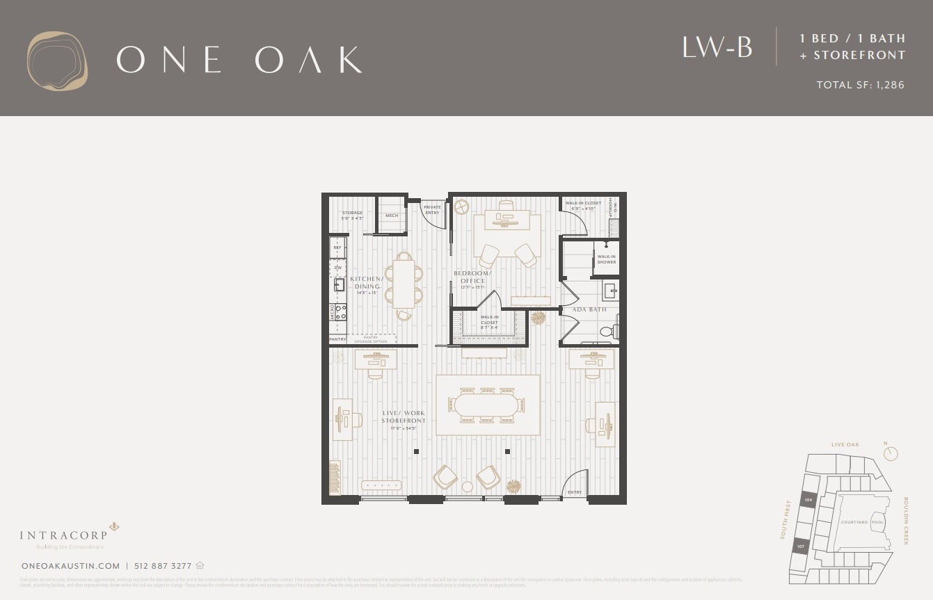 Set along the eastern edge of South First Street in the heart of Bouldin Creek, One Oak brings a vibrant energy to the street level with thoughtfully designed live/work storefronts. Future residents will have boutique shops, local markets, wellness studios, and a signature cafe concept just steps from their front door—offering the rare convenience of shopping, working, and living in one dynamic location. The live/work residences at One Oak are designed for today’s entrepreneurial spirit, blending modern living quarters with dedicated professional space. These versatile layouts respond directly to Austin’s growing demand for flexible, self-owned business environments—ideal for creatives, consultants, makers, and small business owners alike. Rather than separating home and work, One Oak integrates them, creating an environment that fosters connection, productivity, and community. The ground-floor storefronts offer visibility and accessibility while giving residents control over their real estate—a compelling alternative to traditional commercial leasing and unpredictable rent increases. Located in the highly desirable 78704 zip code, this South First corridor is known for its mix of locally owned shops and walkable charm. One Oak complements this setting with a design that supports small business vitality and strengthens the fabric of the Bouldin Creek neighborhood. These live/work spaces not only reflect the character of the area—they enhance it, offering entrepreneurs and professionals the chance to put down roots and thrive in one of Austin’s most beloved communities. Schedule a showing today!