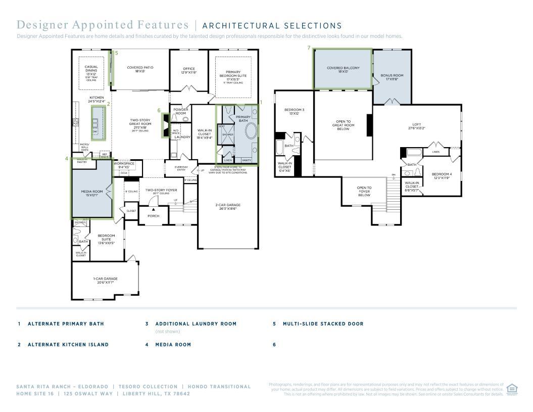 MLS# 4434087 - Built By Toll Brothers - June 2026 Completion! ~ The Hondo home design delivers elegant and comfortable living. A grand two-story foyer leads into the open-concept main living area, featuring a stunning two-story great room with a fireplace and multi-slide stacked doors leading to a covered patio, perfect for indoor-outdoor living. Adjacent to a bright casual dining area with a tray ceiling, the kitchen features a large island with breakfast bar and a walk-in pantry. The secluded primary bedroom is a true retreat enhanced by a tray ceiling, a spacious walk-in closet, and a luxurious bath featuring dual vanities, a soaking tub, a luxe shower with seat, linen storage, and a private water closet. Located down the hall from a versatile flex room, a first-floor bedroom suite with a walk-in closet is ideal for multigenerational living or guests. Upstairs is an airy loft and two secondary bedrooms one with a private bath and the other with access to a full hall bath. Additional desirable features include an office, first-floor laundry, a workspace, and plentiful storage. Disclaimer: Photos are images only and should not be relied upon to confirm applicable features.
