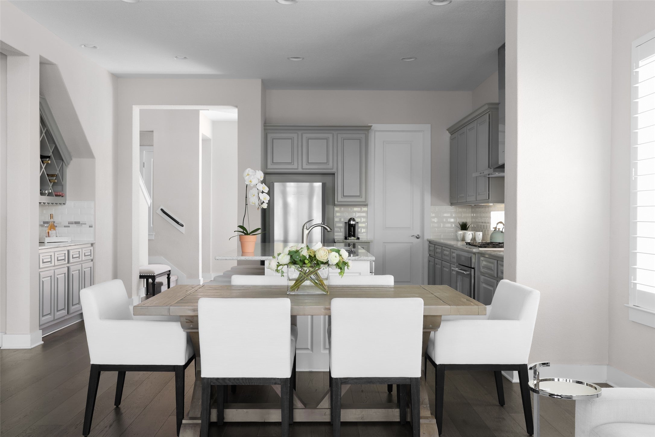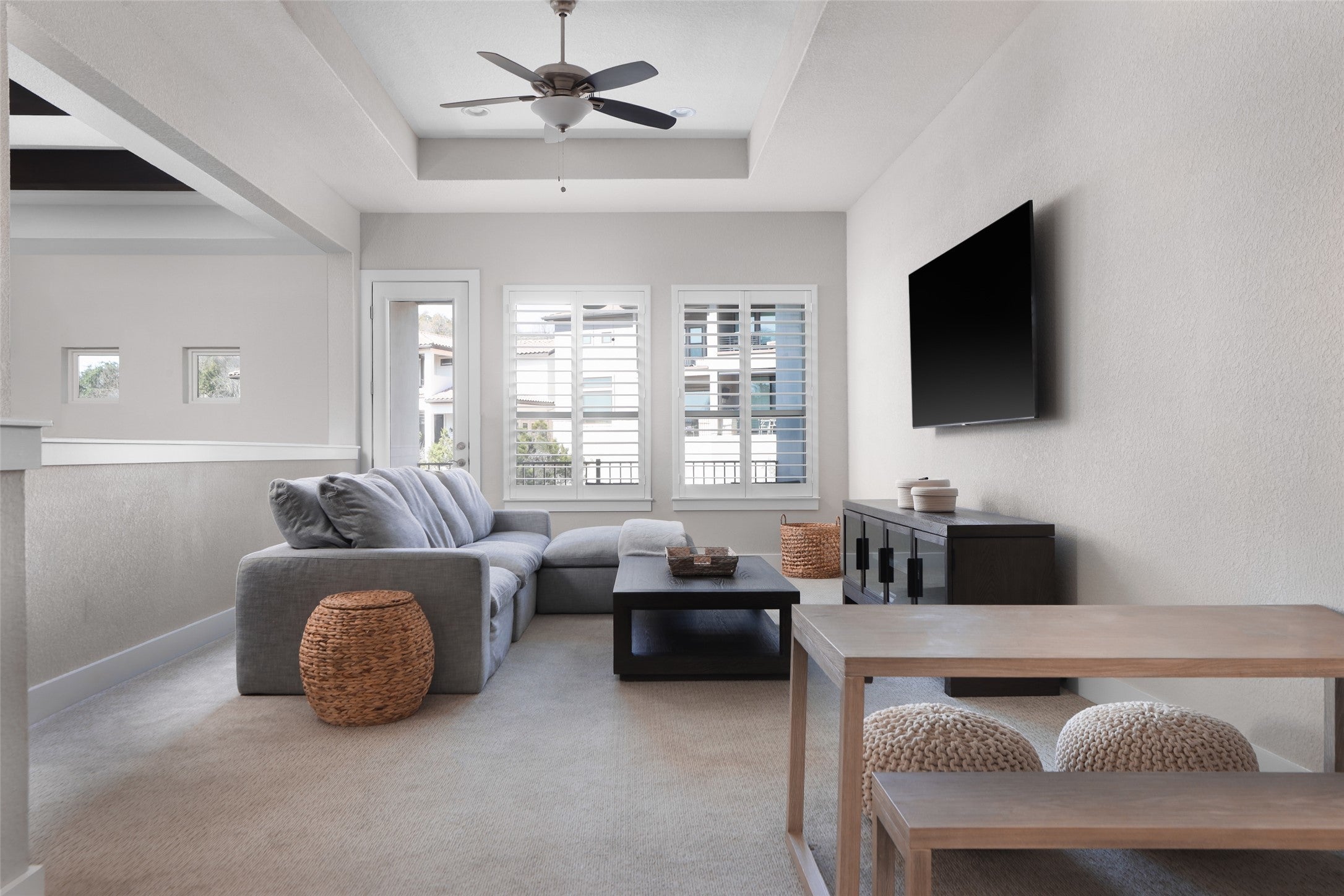 Lake Travis water level is up! Purchase turn-key for summer 2026! ALL RESTORATION HARDWARE FURNITURE NEGOTIABLE. Luxury meets effortless lakeside living in this meticulously upgraded 3 or 4-bedroom, 2.5-bathroom home in the prestigious Lake Ridge at Rough Hollow community on Lake Travis. Designed for those who appreciate high-end finishes and a low-maintenance, lock-and-leave lifestyle, this 2,591 sq. ft. residence is nestled in a gated enclave just moments from Lake Travis, the Rough Hollow Yacht Club and Marina, and offers resort-style amenities. Step inside to an elegant open-concept floor plan featuring soaring ceilings with wood beams, designer wood flooring, and custom crown molding. The great room is an inviting space, while the chef’s kitchen provides outstanding functional efficiency—boasting granite countertops, premium Thermador appliances, soft-close cabinetry, and a stylish dry bar and wine cabinet. The primary suite on the main level offers a spa-inspired retreat with a custom closet system, a luxury walk-in shower with designer tile for a warm ambiance. Upstairs, a spacious family room, game room, and study/tech center provide flexibility for work, play, or entertainment, two bedrooms, and a large bathroom with dual vanities. Outdoor living is elevated with two covered patios, a built-in stainless steel grill, and views over a serene wet-weather creek. Additional features include a two-car garage, upgraded security system pre-wiring, and premium window coverings. Residents enjoy unparalleled access to Rough Hollow’s world-class amenities, including the private marina, a state-of-the-art fitness center, infinity pools, waterfront dining, and miles of scenic trails.