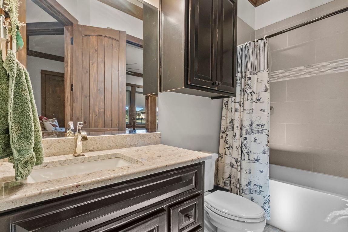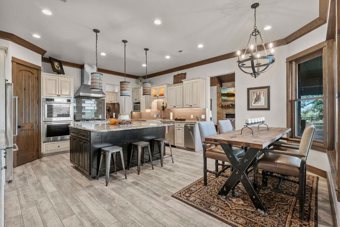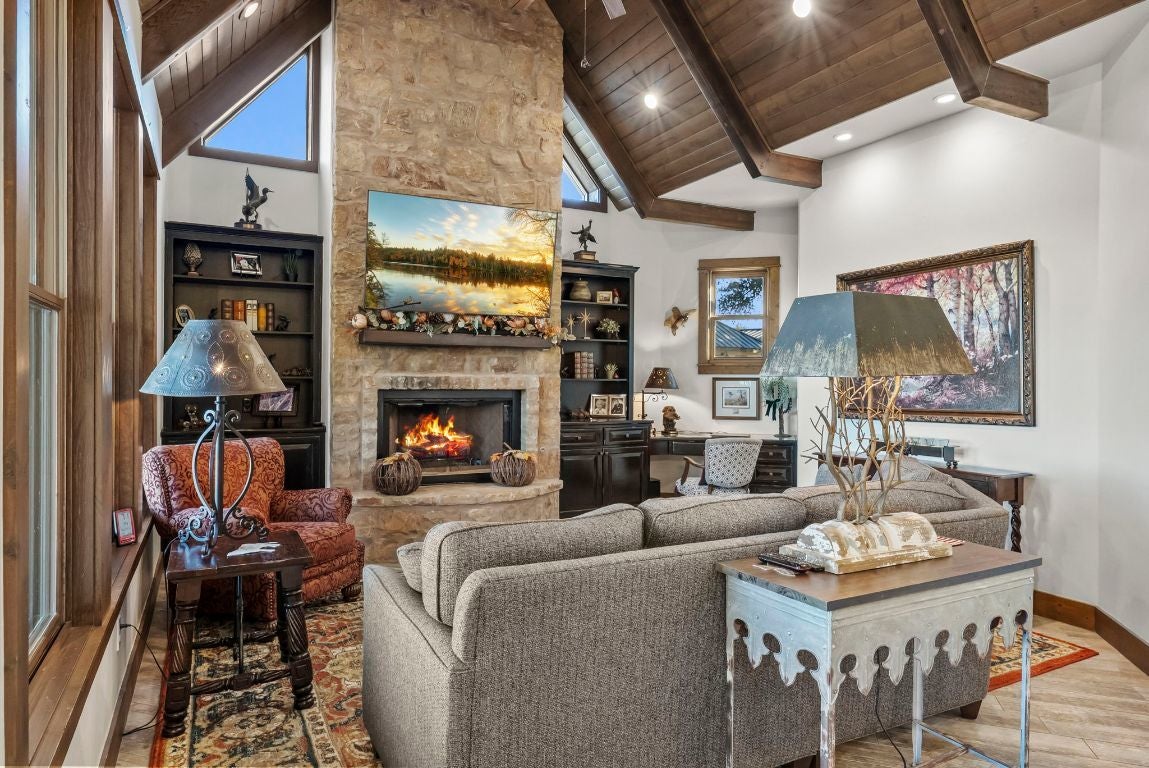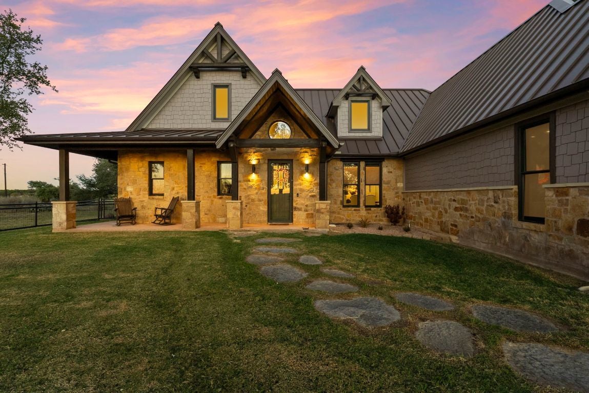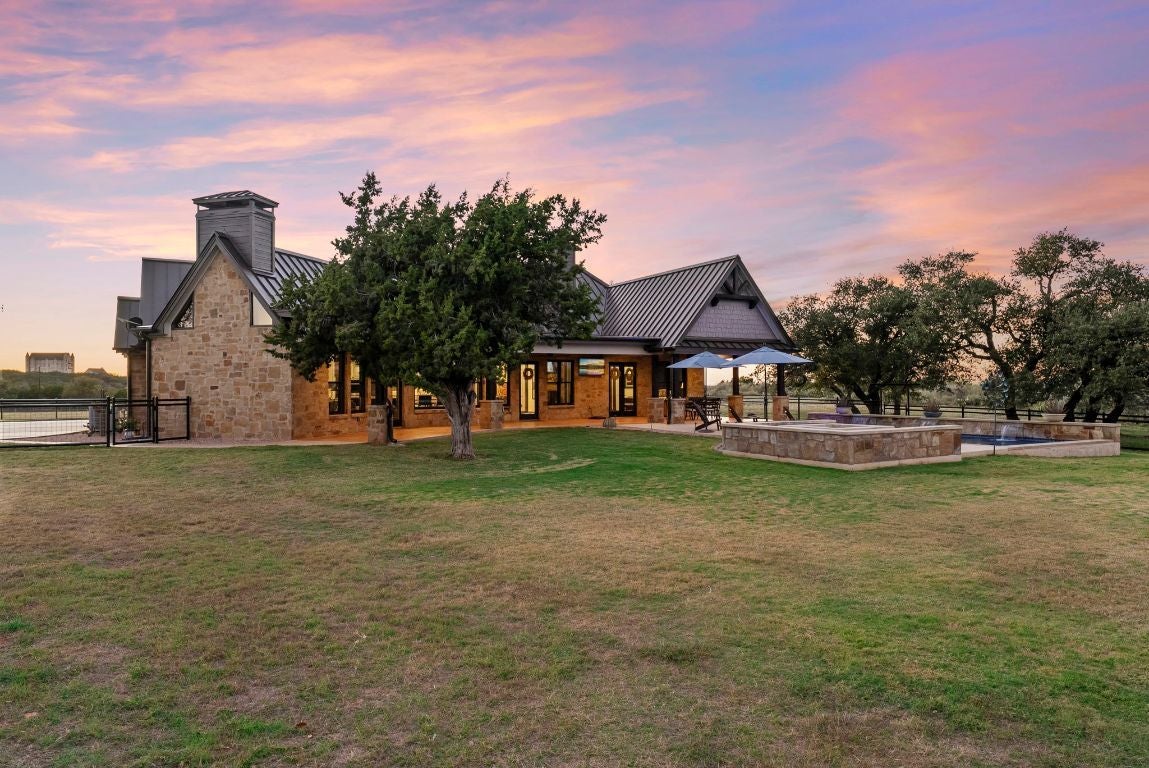 Absolutely CHOICE Hill Country 15 Acre estate with many unique features! Want a view of a castle outside your front door? Hobby areas? Separate heated/cooled man cave? Additional garage? Room for all the toys and equipment? Fully fenced yard for pets and kids? Desire double-gated security? Need a barn with a bathroom and stables? Low carrying costs? - 1.2088 tax rate, well, septic, wildlife exemption. Gorgeous one story flowing home with premier features and finishes. Huge covered back porch, faces East and overlooks pool area and fire pit seating area. Multiple living and dining areas give potential floorplan flexibility. Separate and private primary suite. Potential for additional living square footage with large, conditioned attic space. Separate detached equipment garage, additional heated and cooled garage currently set up as hobby/man cave. Plus, additional barn set up with 4 stables, bathroom, tack room area, storage loft, and covered equipment storage out back. Separate fenced areas provide setup for pets, horses and cattle. Plenty of flat space for vehicle and trailer storage. Ideal setup for family, entertaining, while also being private. Views for miles, see views of Lake Buchanan, sunsets, stars and wildlife. Neighborhood features 15+ acre tracts. This one features 500+ acre ranch behind the property, and 195 acre ranch across from it. Yet, all of this is located within easy access to Burnet, Marble Falls, and Kingsland.