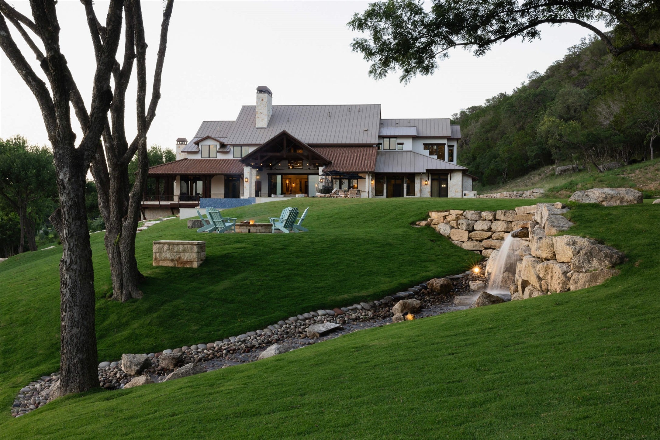 BELLAGIO FALLS ON LAKE AUSTIN Bellagio Falls is a preserve-backed Lake Austin estate spanning over six acres with approximately 600 feet of waterfront. Completed in 2018, the nearly 10,000-square-foot residence offers six bedrooms and 6.5 bathrooms, blending Texas ranch character with refined Santa Barbara architectural influence. A defining feature of the property is the series of cascading waterfalls integrated into the landscape, creating a natural soundscape and visual focal point that frames long lake views. Combined with its extensive frontage, the estate provides meaningful separation and privacy rarely found on Lake Austin. The residence includes expansive living areas, inlaid Texas mesquite flooring, a media room, billiards room, and a game room with an official-size shuffleboard. A newly constructed resort-style pool and two-story boat dock extend the estate to the water. A four-car garage, private orchard, and ample room for future additions such as a casita or sport court provide flexibility without compromising scale. The property is surrounded by greenbelt secured through recorded deed restrictions filed with the county, ensuring long-term protection from future development. Across the water lies the Balcones Canyonlands Preserve, federally recognized conservation habitat managed by the City of Austin. The result is open shoreline, reduced congestion, and enduring privacy. Mature oak trees, a century-old heritage pecan, bald cypress, sycamore, mulberry, and fruit trees anchor the grounds, reinforcing the estate’s established and intentional landscape. Bellagio Falls represents a rare combination of scale, protected surroundings, and architectural presence in one of Lake Austin’s most desirable stretches.