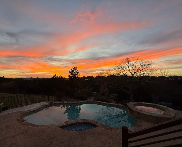 Experience the pinnacle of Hill Country elegance in this stunning stone-and-stucco residence, perfectly positioned on a premium lot backing to serene, unobstructed green space. From the grand stone-accented entrance to the professional landscaping, this home exudes sophisticated curb appeal. Inside, the expansive open-concept floor plan is bathed in natural light, featuring high coffered ceilings, designer lighting, and oversized windows that frame the picturesque surroundings. The heart of the home is a chef-inspired kitchen boasting a massive central island, premium stainless steel appliances, sleek cabinetry, and a bright dining area—ideal for both daily living and grand-scale entertaining. The spacious Great Room, anchored by a floor-to-ceiling stone fireplace, seamlessly transitions to your private outdoor sanctuary through large glass doors. Step outside to a backyard oasis designed for the ultimate Texas lifestyle. Relax by the sparkling in-ground pool and spa, host summer gatherings on the covered patio, or enjoy the lush lawn, all while taking in breathtaking panoramic views. This home offers the perfect balance of luxury and tranquility in one of Leander’s most sought-after enclaves. With unmatched privacy and timeless style, this is more than a home—it’s a retreat.