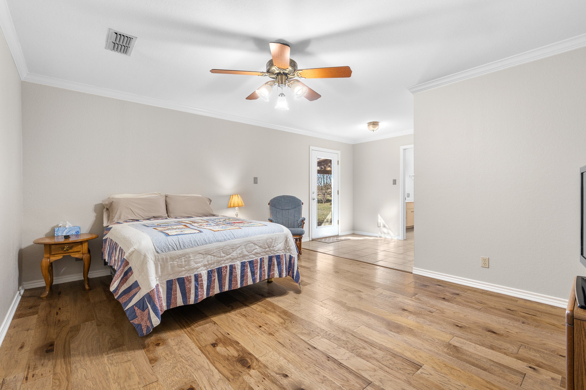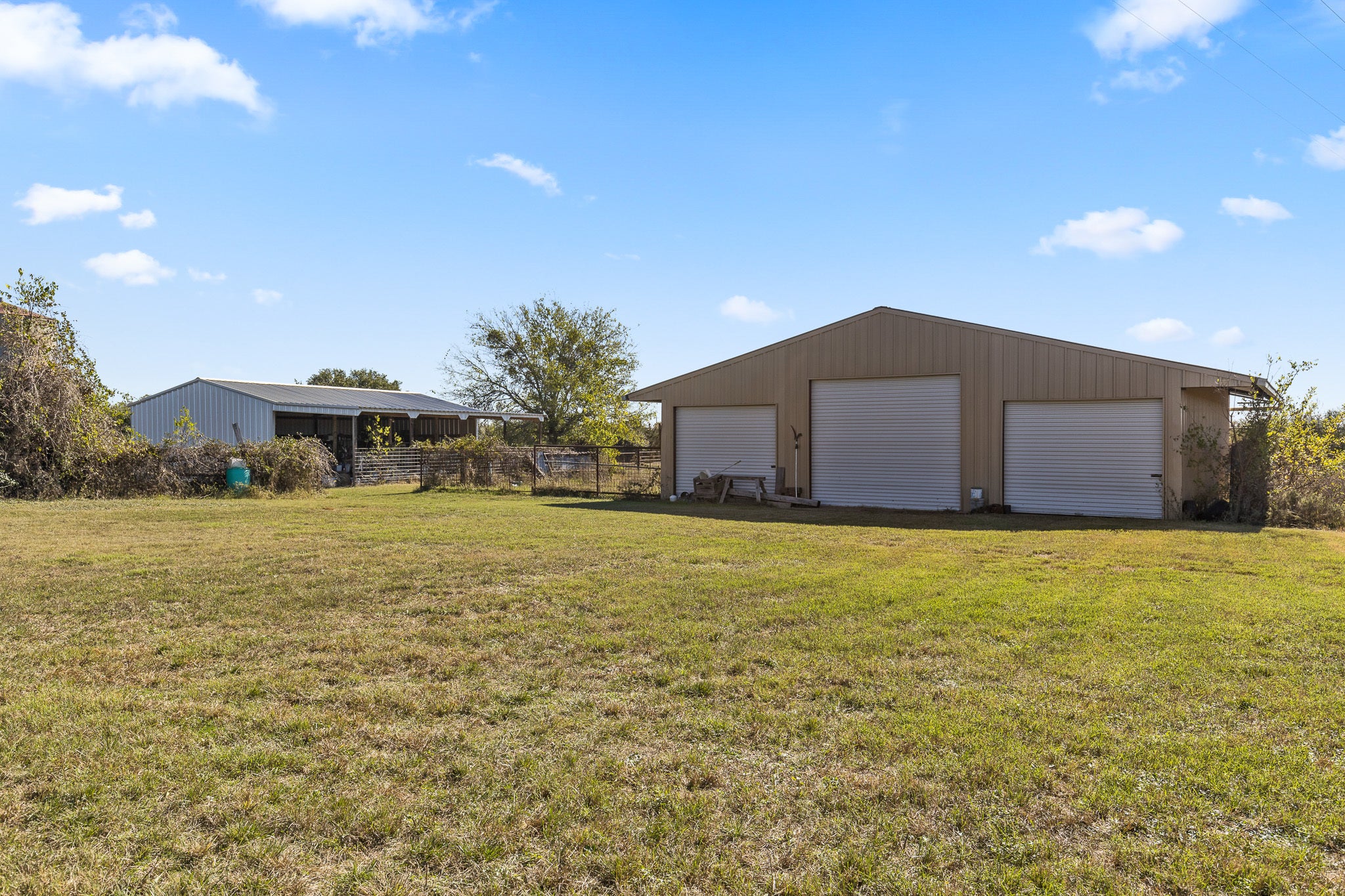 22.53 Acres with UPDATED HOME*3 bedrooms 2 baths 2 living areas*TEXAS SIZE FRONT PORCH across the whole front of the home*2 car garage with RV height Carport Plus 2 additional OUTBUILDINGS*All hard surface flooring in the house-NO CARPET*Kitchen with granite counters, pull out drawers in lower cabinets, Island with storage, dining bar and 2nd sink, coffee nook, lots of counter space and storage*Washer, Dryer and Refrigerator to convey with acceptable offer*Master bath has dual vanity and 2 showers!*Each secondary bedroom with built-in desk/study area*Yard around the house is completely fenced with blackberry vines growing on the fence- perfect for summer*Spa on the back yard patio*One of the outbuildings is a concrete slab, 3 stall POLE BARN*Other building is a 3 DOOR GARAGE with one door to accommodate an RV, also has an enclosed workshop inside*SEASONAL POND that does hold water*Delightful area that is cleared and has a fire pit adjacent to the dry creek bed*Property is bounded by a tree line on all sides*Roof approx 2018,Spa can remain with acceptable offer. See Documents for list of home details. Check out the "FLY OVER" video in links below.