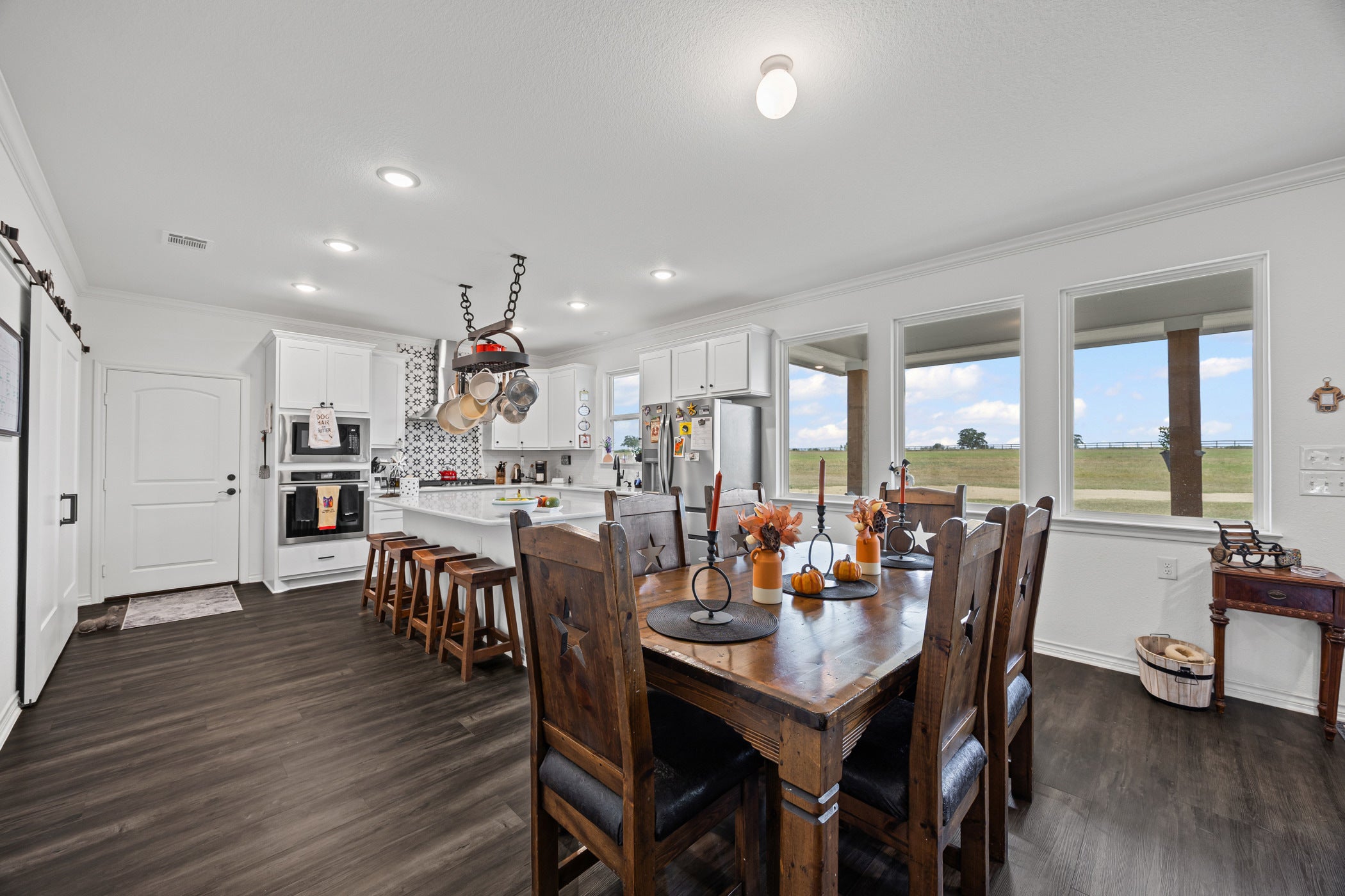 Drastic Price Improvement! One of a kind gentleman's ranch with 34 acres +/-. Nice, custom Tilson home features 3 large bedrooms, 2.5 baths, 2 car garage. Open floor plan with center island, amazing pantry, gas stove. Home features large open floor plan with windows galore to view your beautiful ranch around you. If you like privacy, you have found the right property. Large covered porches for your viewing and relaxing pleasure. This property has road frontage on 2 sides for easy subdivision possibilities. Owner says no deed restrictions. Has a well, 2 electric poles, 2 septics. Land is fully fenced and has a seasonal pond. Barn needs some work from the weather. Motivated seller. Bring all good offers!