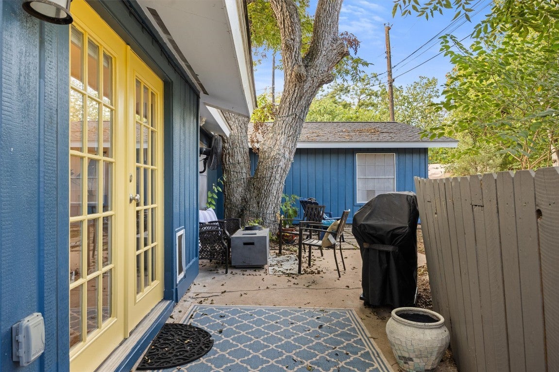 Introducing the Texas Blue Duplex — a rare opportunity to own a beautifully crafted, income-producing duplex in one of South Austin’s most desirable and tightly held neighborhoods. Duplexes simply do not come to market often in this hip, centrally located pocket of 78704. Set on an expansive 0.23-acre lot at the end of a quiet cul-de-sac, this property delivers exceptional flexibility for investors, multi-generational living, or buyers wanting to offset their mortgage by renting the other side. Originally built by Barbara Owens, a respected South Austin builder known for her vaulted ceilings and Mediterranean-inspired details, both residences (Side A & Side B) offer thoughtful layouts with 2 bedrooms, 1 bath, and private laundry rooms with washers & dryers. Equipped with Google Fiber. Proven rental income makes this a turn-key, high-performing investment. Inside, both units offer vaulted ceilings, abundant natural light, LED recessed lighting, modern fans, and warm Saltillo tile floors. Updated kitchens feature open shelving, wood or quartz accents, statement vent hoods and generous workspaces. Bathrooms include modern vanities, upgraded fixtures, clean tile surrounds, and fresh finishes. Side A’s whitewashed stone fireplace and Side B’s walnut live-edge bar add striking architectural focal points. Outdoor living shines with private patios shaded by mature trees and surrounded by generous yard space — a luxury on a lot this size. The backyard offers endless possibilities: gardening, play areas, expanded outdoor living, or future enhancements. Located minutes from South Lamar favorites — Loro, Matt’s El Rancho, Black Sheep Lodge, Odd Duck, Torchy's Tacos, plus Zilker Park and Barton Springs — the Texas Blue Duplex blends lifestyle, location, and long-term value. Versatile, income-ready, and architecturally unique — a truly rare offering in one of Austin’s most sought-after neighborhoods.