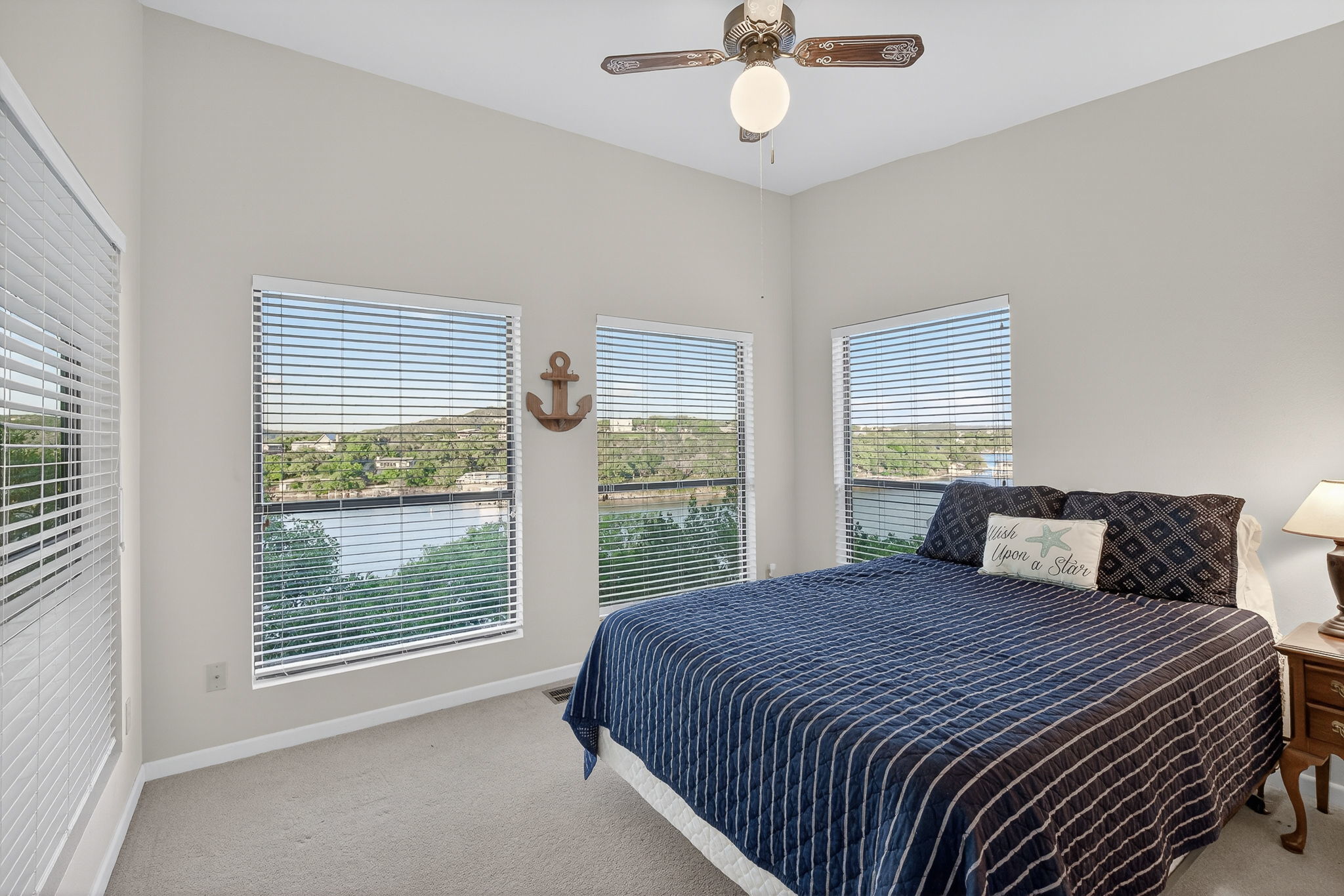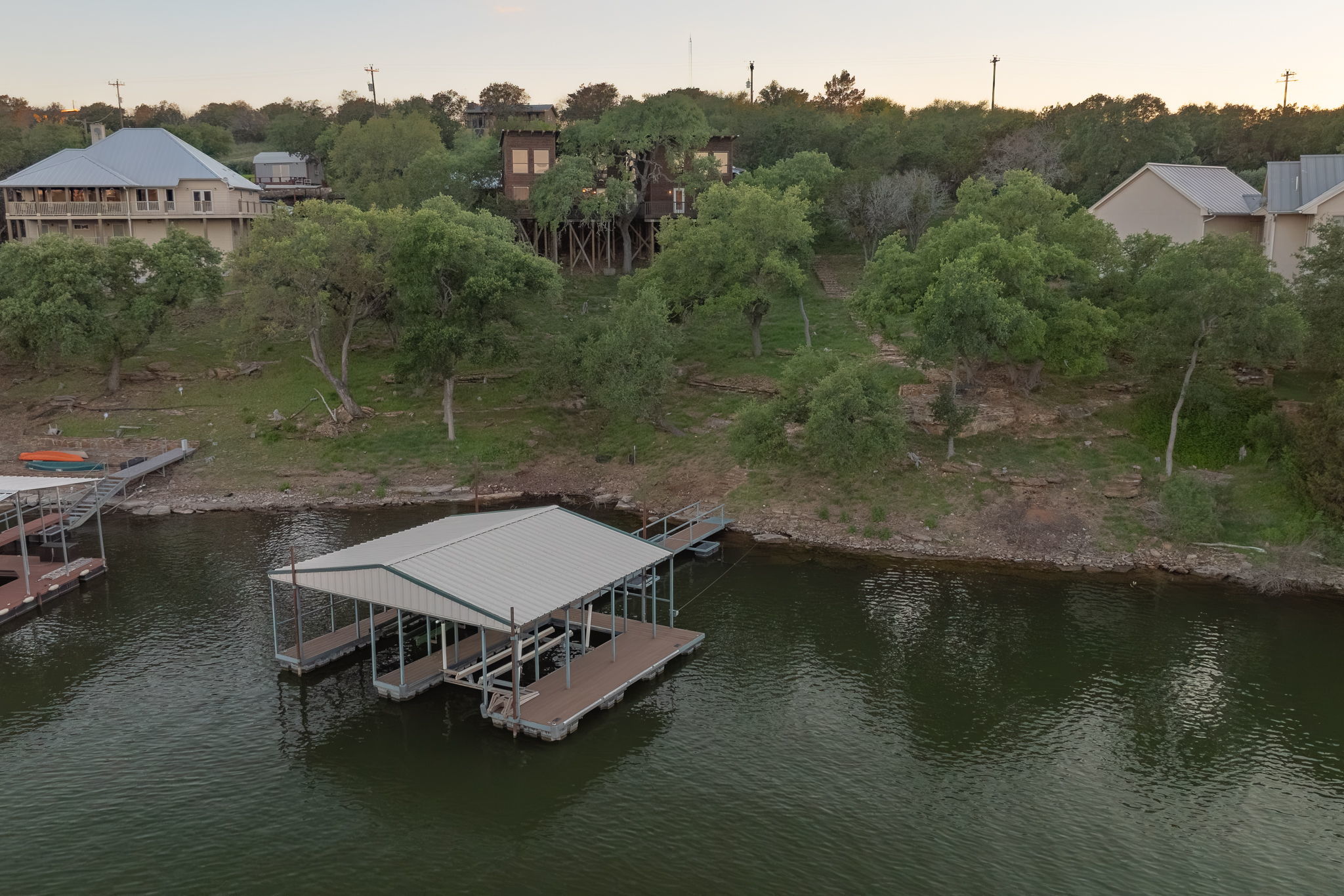 Located in the desirable Council Creek South community on Lake Buchanan, this south-east facing waterfront home is positioned to take full advantage of lake living. 2512 CR 137 is set on a DEEP part of the lake, with a boat dock that can accommodate a high lift capacity, and two personal watercraft lifts. Inside, the home has been well cherished and maintained. Standout features include an open concept design, abundant natural lighting, a main-level primary suite, a separate dining room (which could be a sitting room, or office), and a unique catwalk that adds character and architectural interest to the home. The metal roof on both the home and garage are less than one year old, recently added outdoor light fixtures, freshly stained porch, and a new dishwasher was installed April 2026. The back porch offers incredible lake views and three separate access points from the primary bedroom, living room and formal dining area. Lake Buchanan is known for its expansive open water, excellent fishing, boating, and some of the most beautiful sunsets in the Texas Hill Country. Whether its casting a line, cruising the shoreline, or simply relaxing by the water, the lake life out here is one of a kind.
