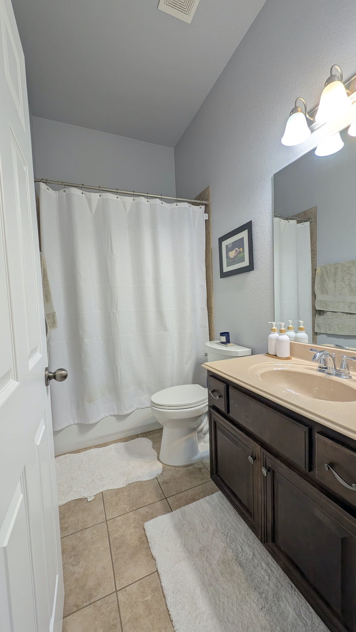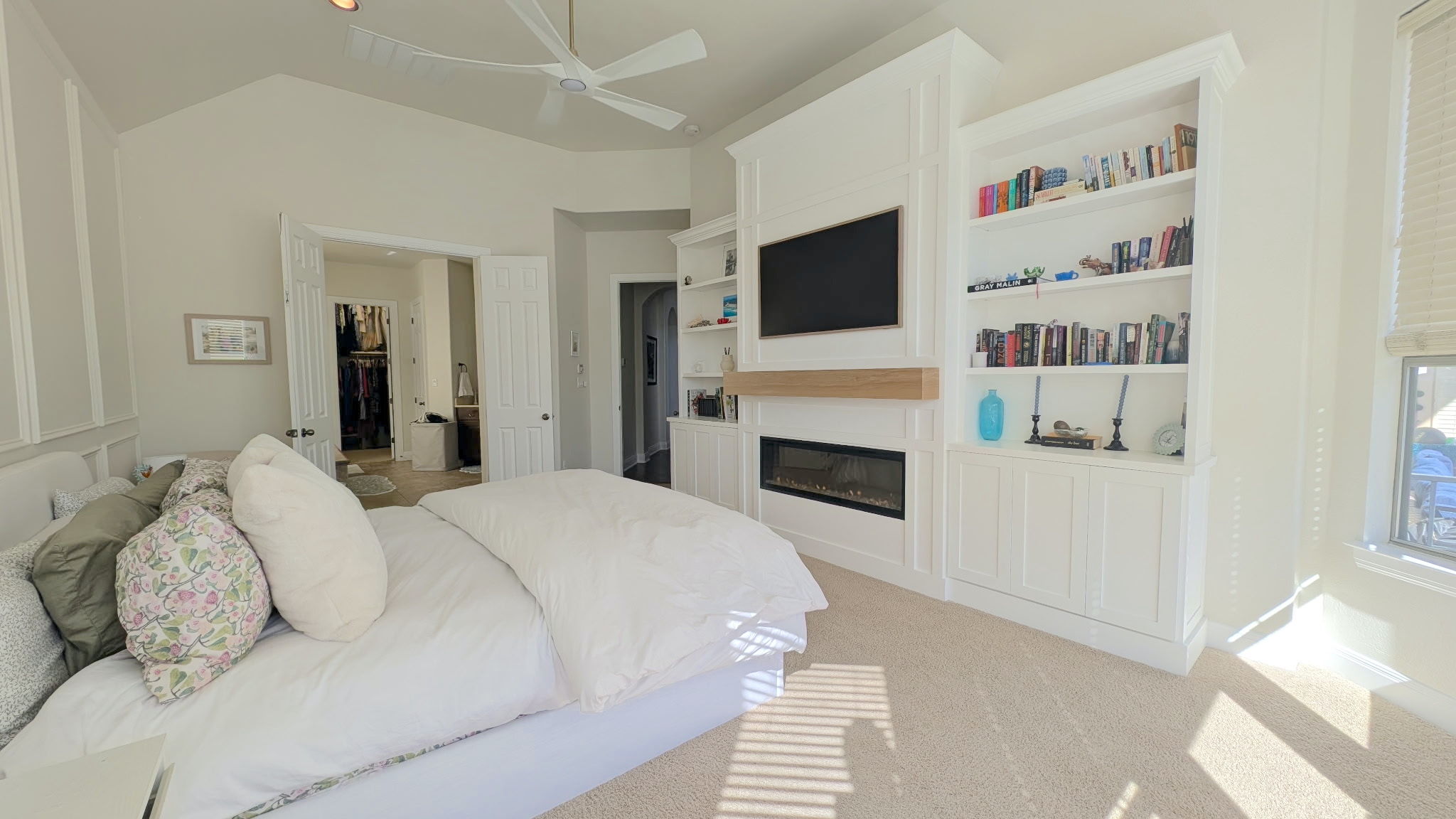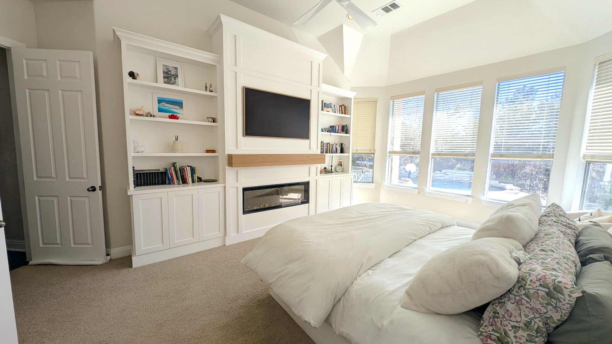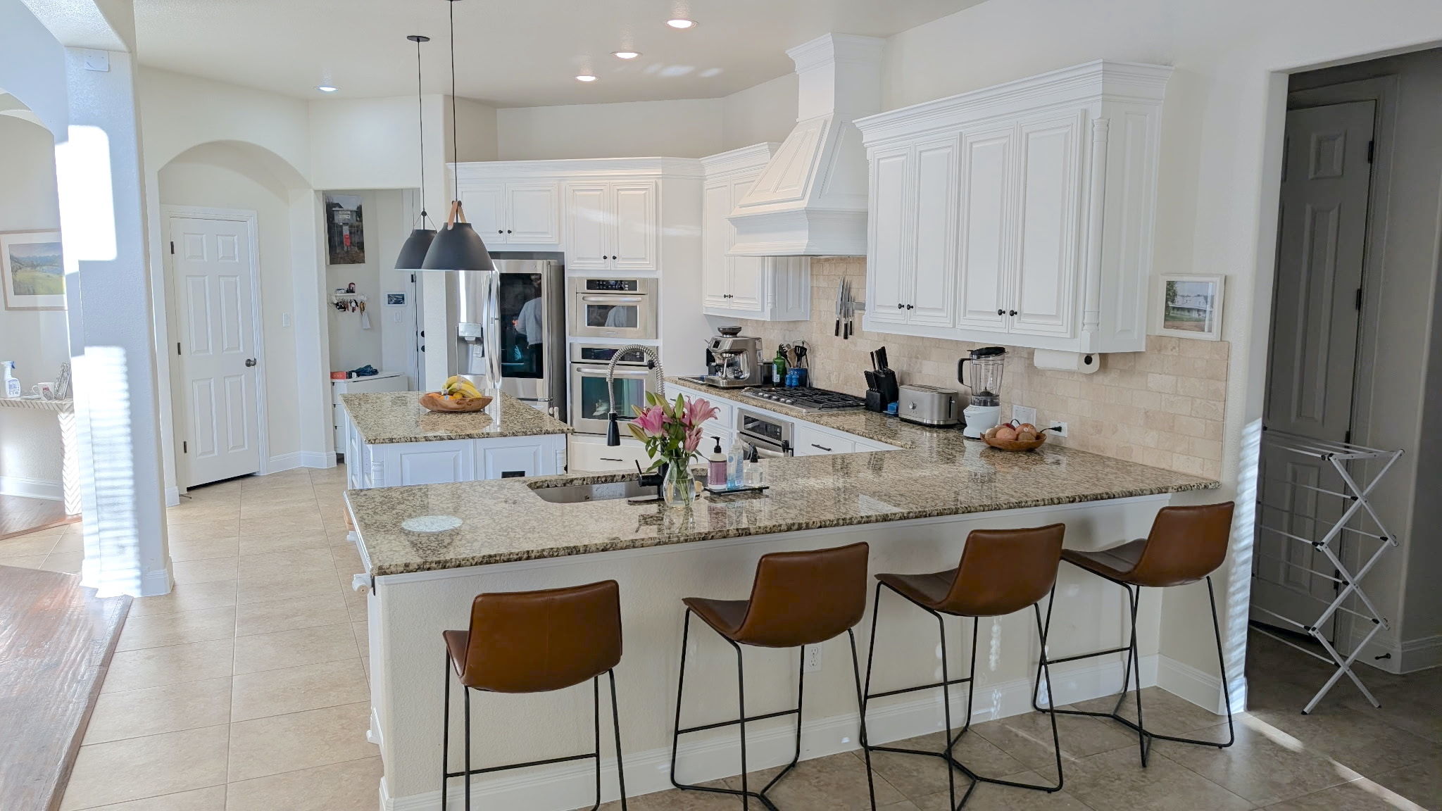 Step into luxury with this impressive 5-bedroom, 4-bathroom home designed to captivate from the moment you enter. A striking staircase greets you at the entrance, setting the tone for the elegance found throughout. The main living room features a soaring two-story ceiling, a dramatic floor-to-ceiling stone fireplace, and a stylish dry bar—all perfectly positioned to overlook the backyard oasis with a sparkling pool and relaxing spa jacuzzi. The house comes with a child-proof removable pool fence and gate. The heart of the home is a beautifully updated, fully equipped gourmet kitchen, complete with a large island, breakfast bar, and ample space for gathering. Enjoy both a full-sized breakfast area and a formal dining room, offering flexibility for everyday living and special occasions. The thoughtfully designed first floor includes a versatile flex room ideal for a home office, gym, or hobby space, along with a spacious media room perfect for movie nights or entertaining. The primary suite is conveniently located on the ground floor and serves as a private retreat, featuring its own fireplace, built-in bookshelves, and space for a TV above the mantel. From the comfort of your bed, take in serene views of the pool. The en-suite bathroom and walk-in closet complete this luxurious space. Upstairs, you’ll find a second living area along with additional bedrooms and bathrooms, providing plenty of room for family and guests. Additional highlights include a utility room with a sink and a 3-car garage with generous overhead storage and equipped with a Charge Point EV charger, 3 Tesla power walls, and a 12kw solar array for sustainable back-up ready living. Designed for both relaxation and entertaining, the covered back patio, pool, and spa create a private outdoor retreat that backs to a peaceful greenspace. If you’re seeking quality, comfort, style, functionality, this is the one. This exceptional home won’t be available for long! Available in June.