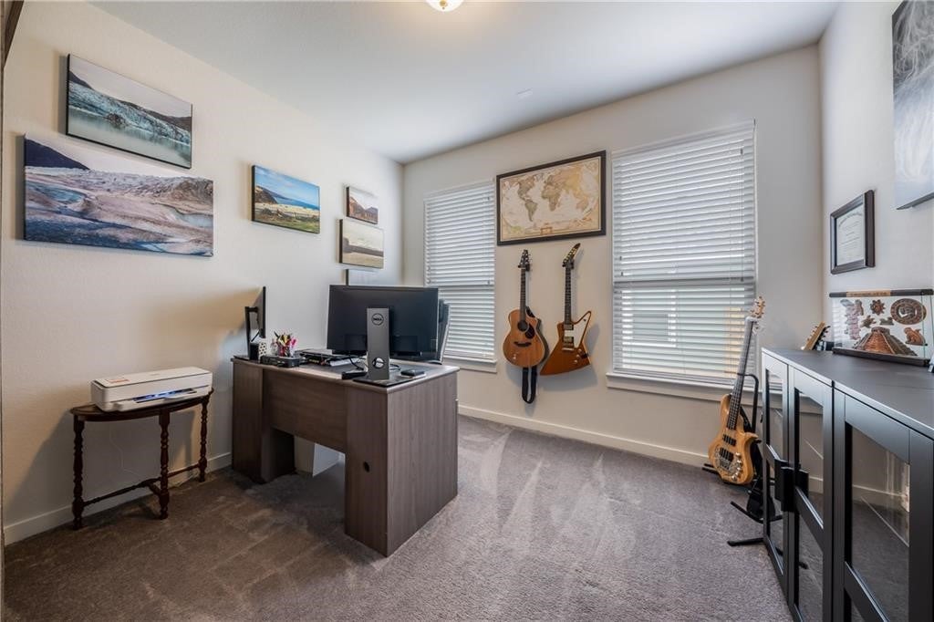Beautiful single story home in the desirable Grayson neighborhood. Technically in booming Liberty Hill but with a Leander address. This new neighborhood of 100 homes offers a resort style community pool with outdoor kitchen, as well as a fully stocked fishing pond. Excellent location off Hwy 183 is close to parks and walking trails. Warm open floorplan full of natural light. Modern Kitchen with Espresso cabinetry & granite center island, open to the Family Room, Stainless Appliances and Subway backsplash. Refrigerator and Washer/Dryer included. A flex room with French doors could be an office, playroom, or a 4th bedroom (without a closet). Spacious Master suite with separate shower, garden tub, and his & her vanity. Mud room nook near the laundry room and many great details/touches. Covered back patio, storage shed built to match the home and a recently built playscape.