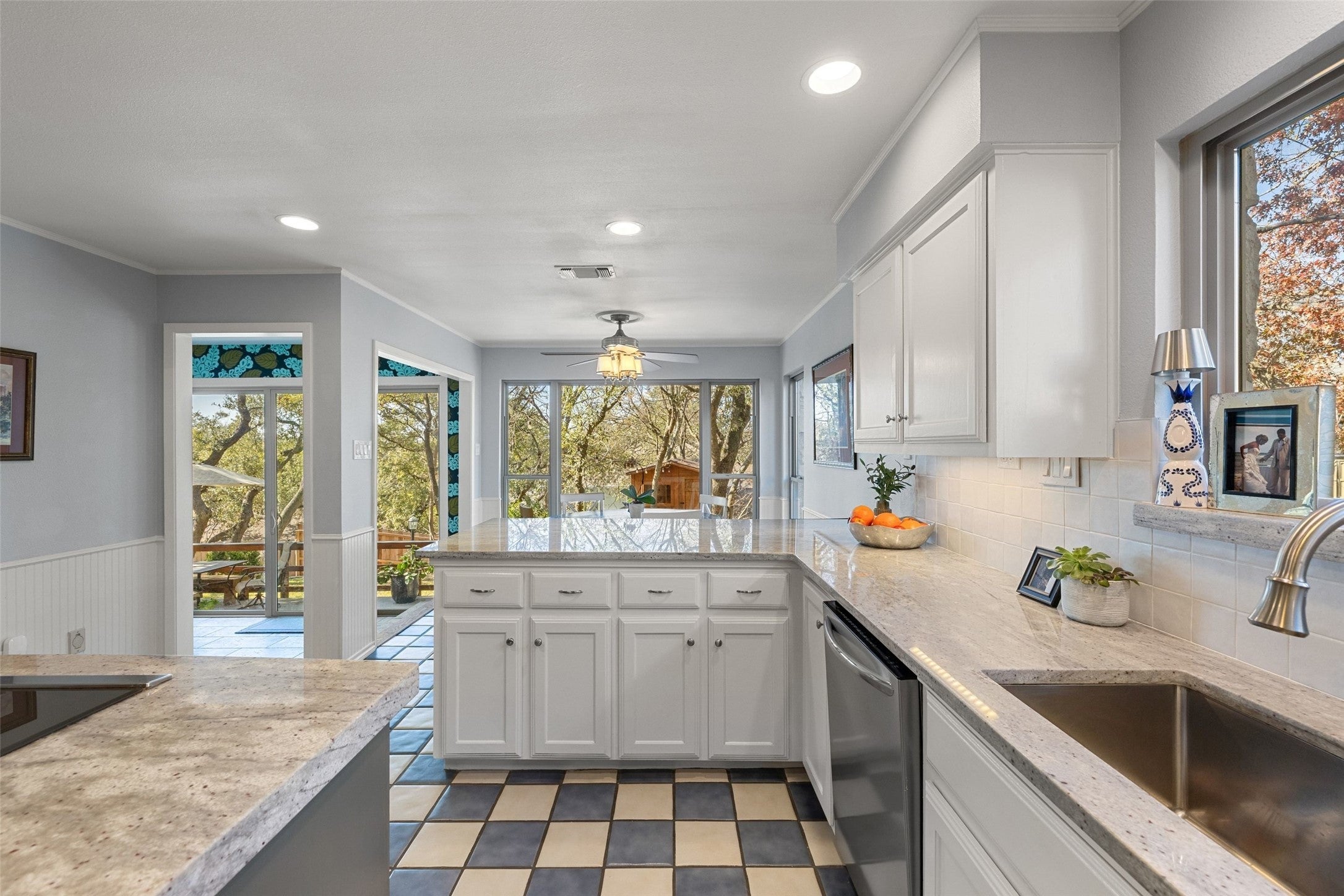 A True Family Paradise Where Luxury Meets Comfort! Nestled among a canopy of mature oaks in the coveted Spicewood Estates neighborhood, this extensively renovated home seamlessly blends sophisticated updates with the natural beauty of the Texas Hill Country. Originally built in 1984 and thoughtfully expanded with a second-story addition in 2018, this residence has been transformed into a modern sanctuary that celebrates both indoor elegance and outdoor living. The main floor features a spacious living room with a wood-burning fireplace and newer double-paned windows. The modern kitchen boasts an eat-in breakfast nook, large island, stainless steel appliances, and serene views of mature oak trees. A dedicated dining room, separate laundry room, two children's bedrooms, and a full bath complete the main level. Upstairs is the newly added wing of the house, completed in 2018 and featuring a serene master suite with a sitting area overlooking the treetops, en-suite bath, walk-in closet, and private balcony with canyon views. An expansive hallway leads to a private office, fourth bedroom with soaring ceilings, and a fantastic media room perfect for family movie nights! Another balcony off the media room offers stunning canyon views—ideal for taking in the Texas Hill Country sunset. The outdoor space is an entertainer's dream, featuring a large pool and outdoor kitchen completed in 2022, an expansive patio, and flat grassy yard space perfect for kicking a soccer ball—all shaded by a canopy of majestic oak trees. Zoned to top-rated Round Rock Schools and featuring convenient updates such as newer HVAC and a roof replaced less than one year ago, all you need to bring is your toothbrush!
