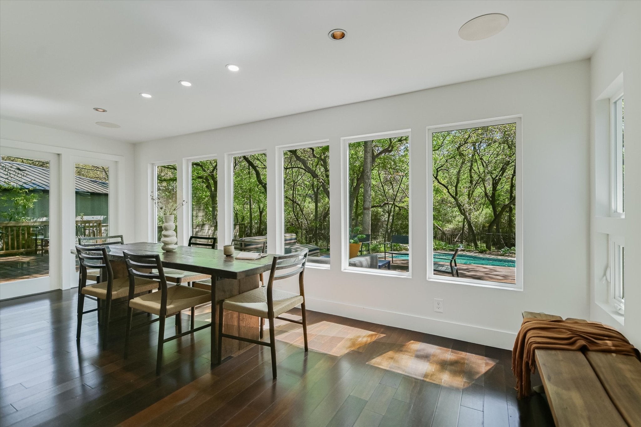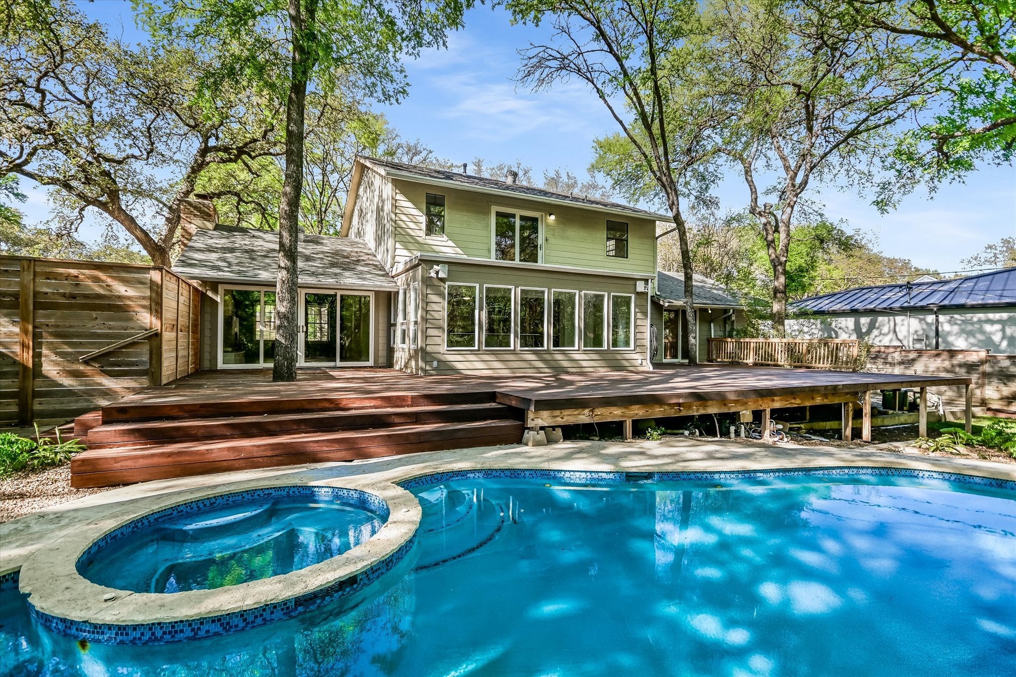 Set on a scenic ~0.3-acre lot backing to Eanes Creek, this property offers a rare combination of privacy and convenience in one of Westlake’s most desirable pockets. Beecave Woods neighborhood is renowned for its walkability to EANES ISD schools, proximity to ample shopping and dining options plus a quick jaunt to Bee Cave Rd, Mopac and Hwy 360 for easy access to all the things to love about Austin. The home blends a highly functional floor plan with a serene, natural backdrop. Appreciate the scenic views from the light-filled interior or take to the huge Ipe deck overlooking a sparkling pool and spa. This is a park-like setting you have to experience to believe. Five bedrooms, three and one half bathrooms plus a dedicated office create a dynamic mix of uses. The Primary Suite is on the main level with a second en-suite option upstairs. A modern, functional kitchen anchors the open concept. Located just minutes from downtown Austin, with access to top-rated Eanes schools, this is a property that balances convenience with a sense of retreat- an increasingly rare find.