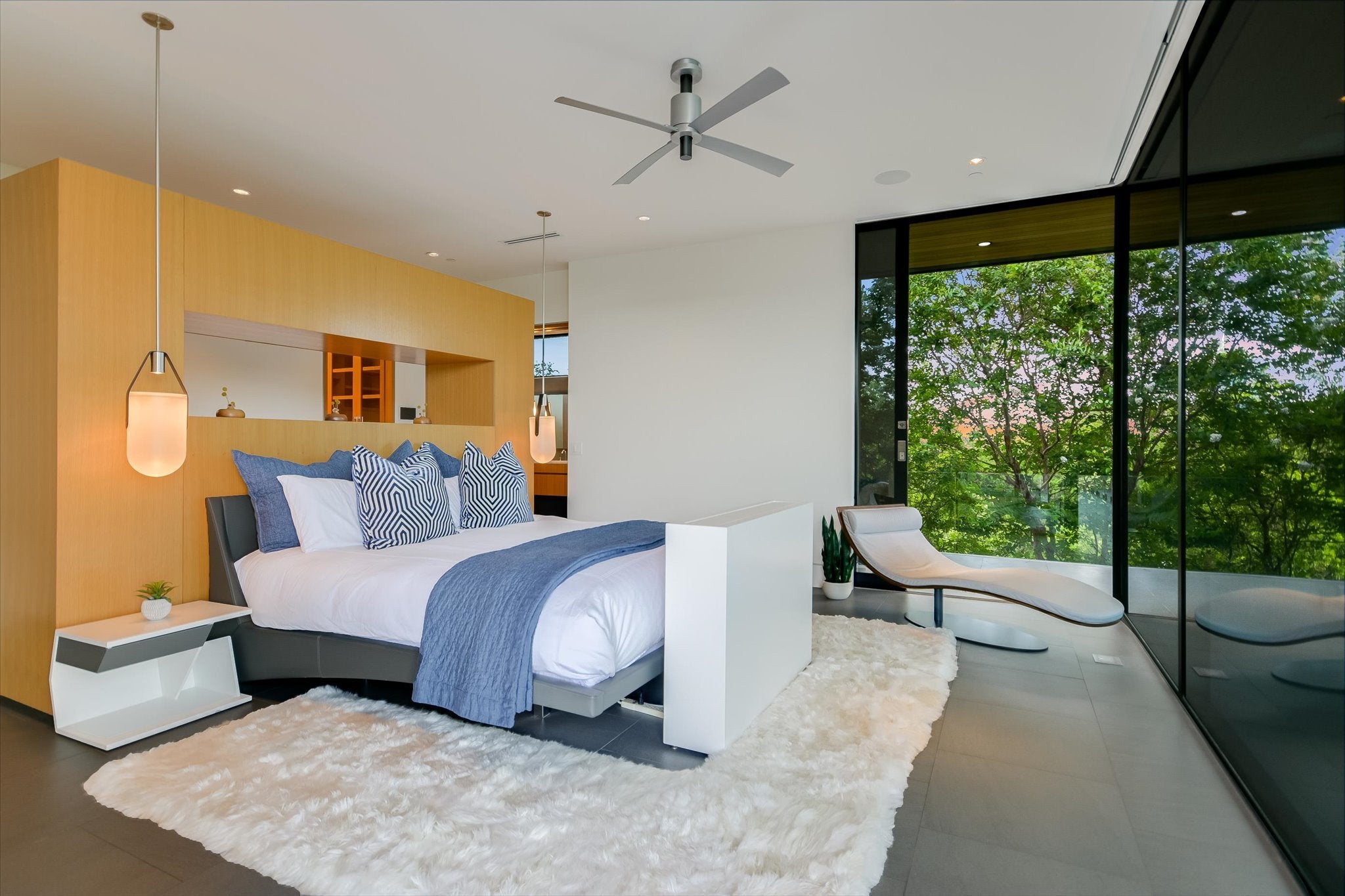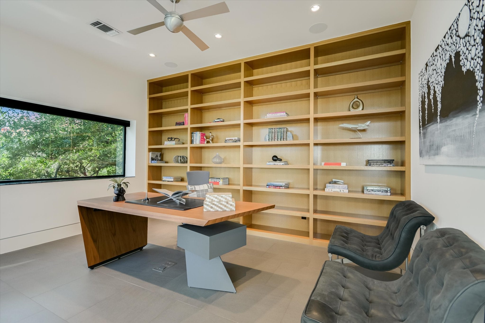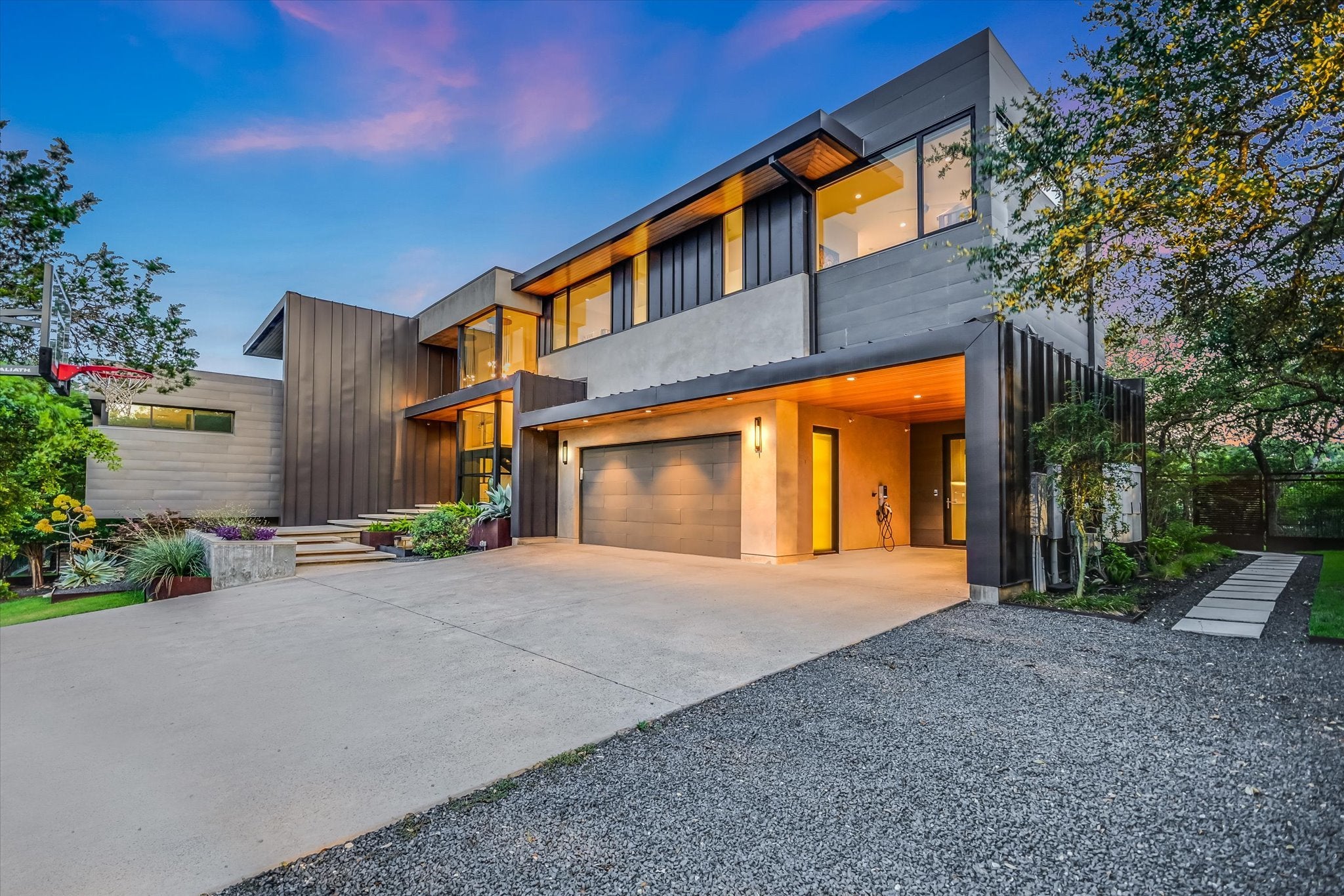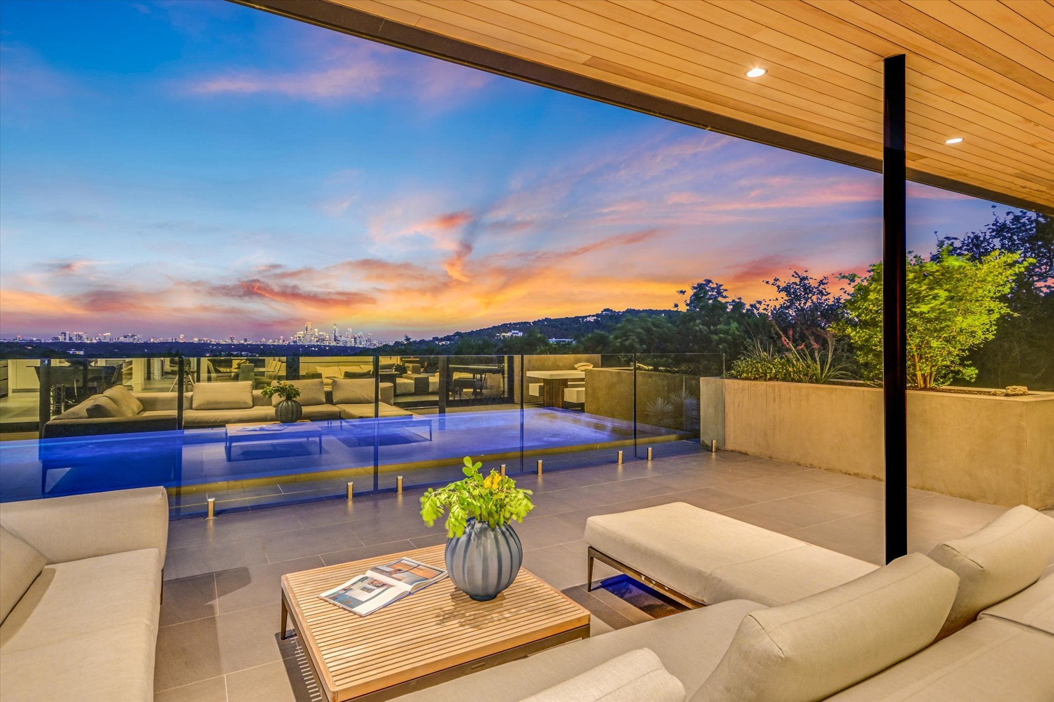 A Modern Masterpiece in Westlake Hills Perched atop one of Westlake Hills’ highest points, minutes from downtown, the Waterfall House embodies the pinnacle of modern luxury. This fully gated estate, designed by the acclaimed Dick Clark Architects, offers an immersive living experience w/sweeping skyline views & a seamless connection between nature, design, and technology. Set on over an acre of landscaped grounds & shaded by heritage oaks, the residence blends clean architectural lines w/soft organic elements. Steel-and-glass Fleetwood doors open the home to more than 1,000 sqft of covered terraces, where downtown Austin becomes part of the visual canvas. Built in 2013 by John Luce with additions made in 2019 The main living features raised ceilings, plaster walls, fireplace, custom Bocci chandelier, Hemlock-paneled ceilings, & Italian porcelain tile floors (that continue outdoors) to heighten the sense of fluidity between interior & exterior. At the heart of the home lies a state-of-the-art kitchen outfitted w/Leicht cabinetry, Miele appliances, wine fridges, galaxy-quartz counters, & Blanco sinks. The home offers a total of six bedrooms (all ensuite), including 2 guest suites on the main level one w/Murphy bed, kitchenette, & private entry, ideal for an office, long-term visitors or home gym. Upstairs, a media room and game room anchor the four additional bedrooms. The primary suite is a private retreat made for slowing down, complete with a Victoria + Albert soaking tub, Kohler rain shower, custom closets, & direct access to the pool terrace. Floor-to-ceiling windows offer cinematic downtown views, while motorized blackout shades ensure restful nights. Outdoors swim beneath the stars, gather on the expansive terrace, or simply listen to the breeze drift through the oaks. Cutting-edge systems ensure comfort & peace of mind, including a full perimeter security system and a 60W Generac generator powered by a 1,000-gallon propane tank.