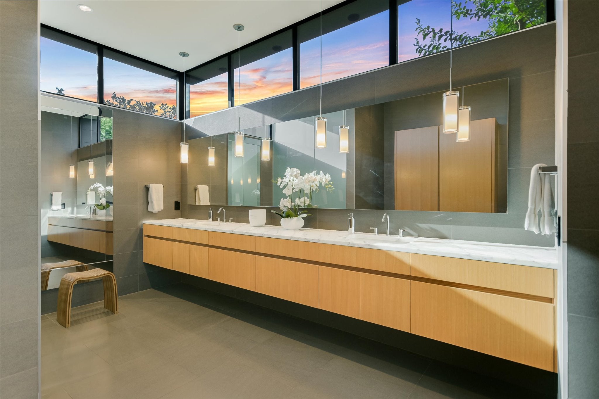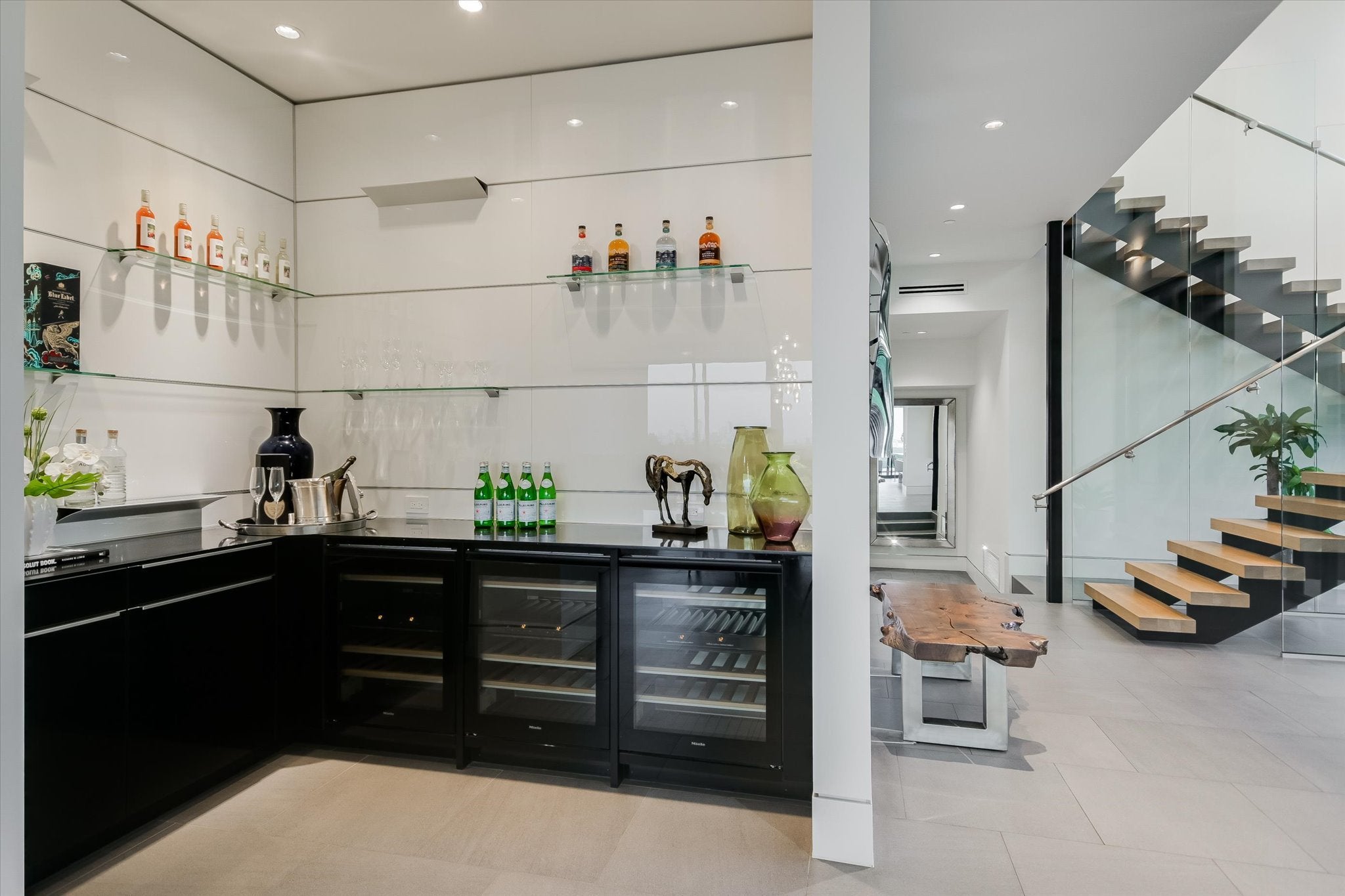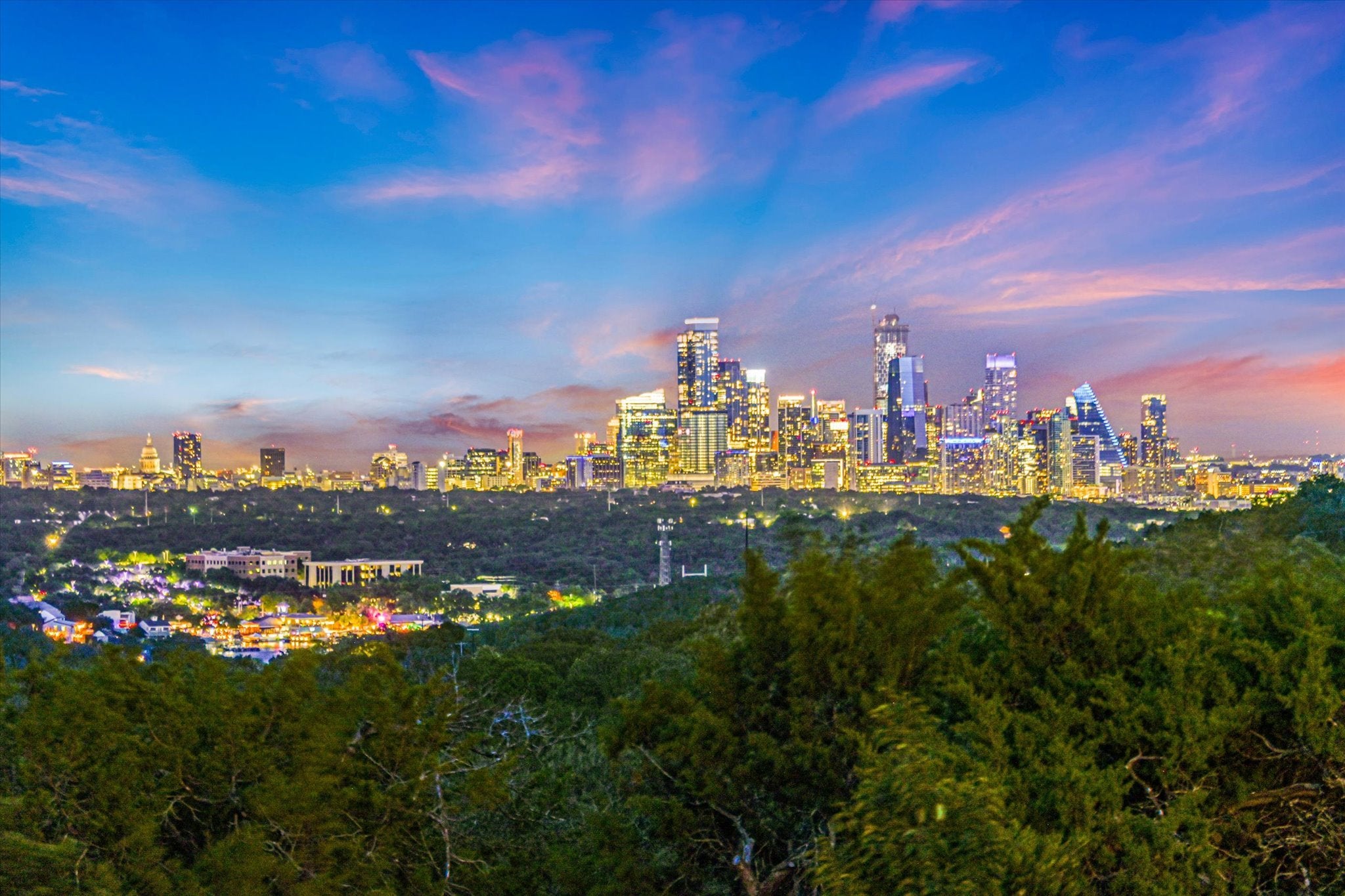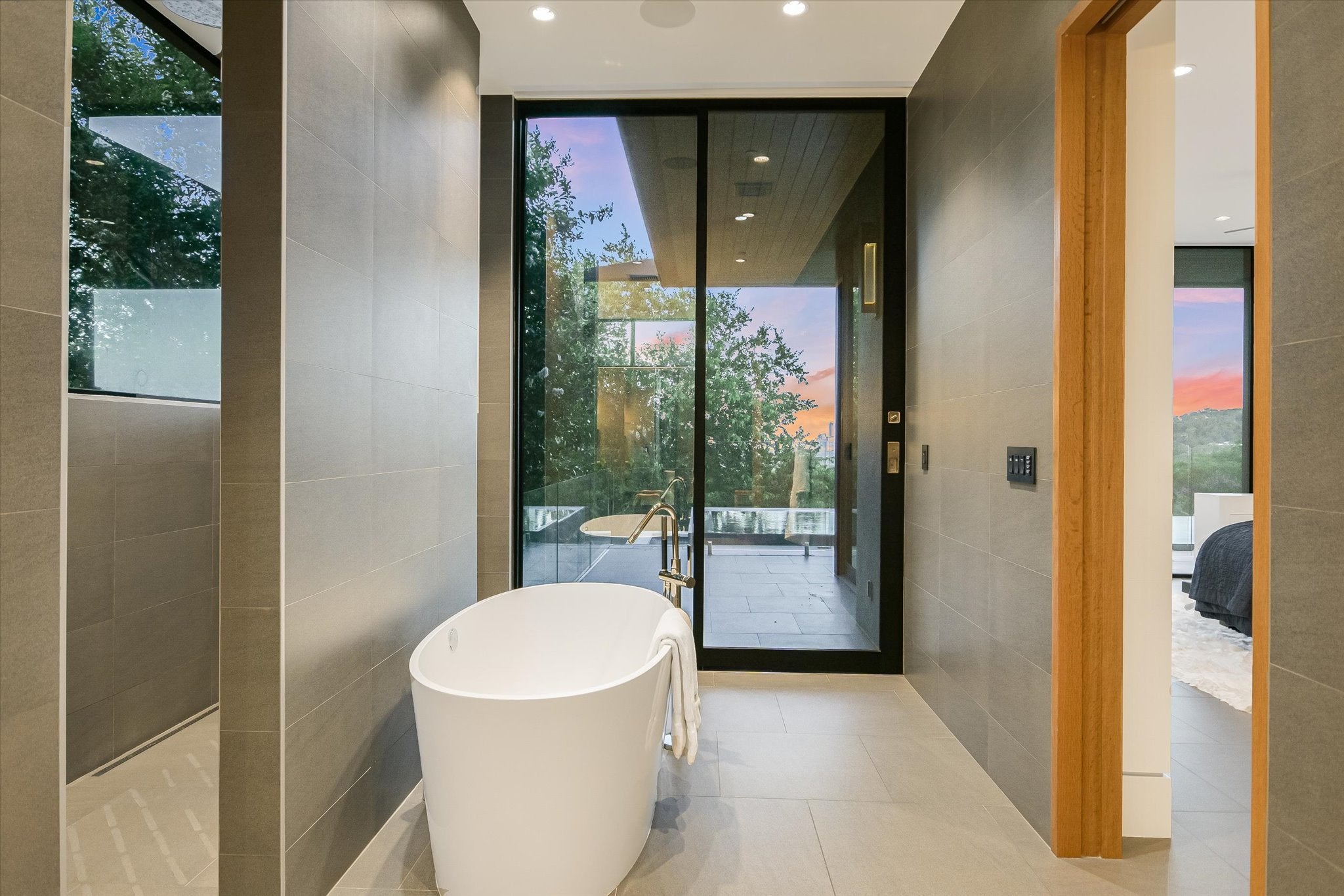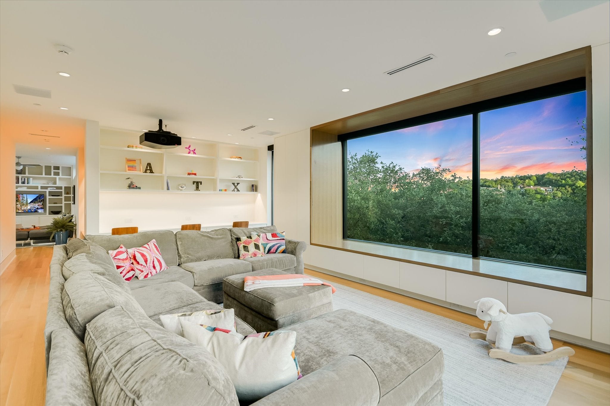 A Modern Masterpiece in Westlake Hills Perched atop one of Westlake Hills’ highest points, minutes from downtown, the Waterfall House embodies the pinnacle of modern luxury. This fully gated estate, designed by the acclaimed Dick Clark Architects, offers an immersive living experience w/sweeping skyline views & a seamless connection between nature, design, and technology. Set on over an acre of landscaped grounds & shaded by heritage oaks, the residence blends clean architectural lines w/soft organic elements. Steel-and-glass Fleetwood doors open the home to more than 1,000 sqft of covered terraces, where downtown Austin becomes part of the visual canvas. Built in 2013 by John Luce with additions made in 2019 The main living features raised ceilings, plaster walls, fireplace, custom Bocci chandelier, Hemlock-paneled ceilings, & Italian porcelain tile floors (that continue outdoors) to heighten the sense of fluidity between interior & exterior. At the heart of the home lies a state-of-the-art kitchen outfitted w/Leicht cabinetry, Miele appliances, wine fridges, galaxy-quartz counters, & Blanco sinks. The home offers a total of six bedrooms (all ensuite), including 2 guest suites on the main level one w/Murphy bed, kitchenette, & private entry, ideal for an office, long-term visitors or home gym. Upstairs, a media room and game room anchor the four additional bedrooms. The primary suite is a private retreat made for slowing down, complete with a Victoria + Albert soaking tub, Kohler rain shower, custom closets, & direct access to the pool terrace. Floor-to-ceiling windows offer cinematic downtown views, while motorized blackout shades ensure restful nights. Outdoors swim beneath the stars, gather on the expansive terrace, or simply listen to the breeze drift through the oaks. Cutting-edge systems ensure comfort & peace of mind, including a full perimeter security system and a 60W Generac generator powered by a 1,000-gallon propane tank.