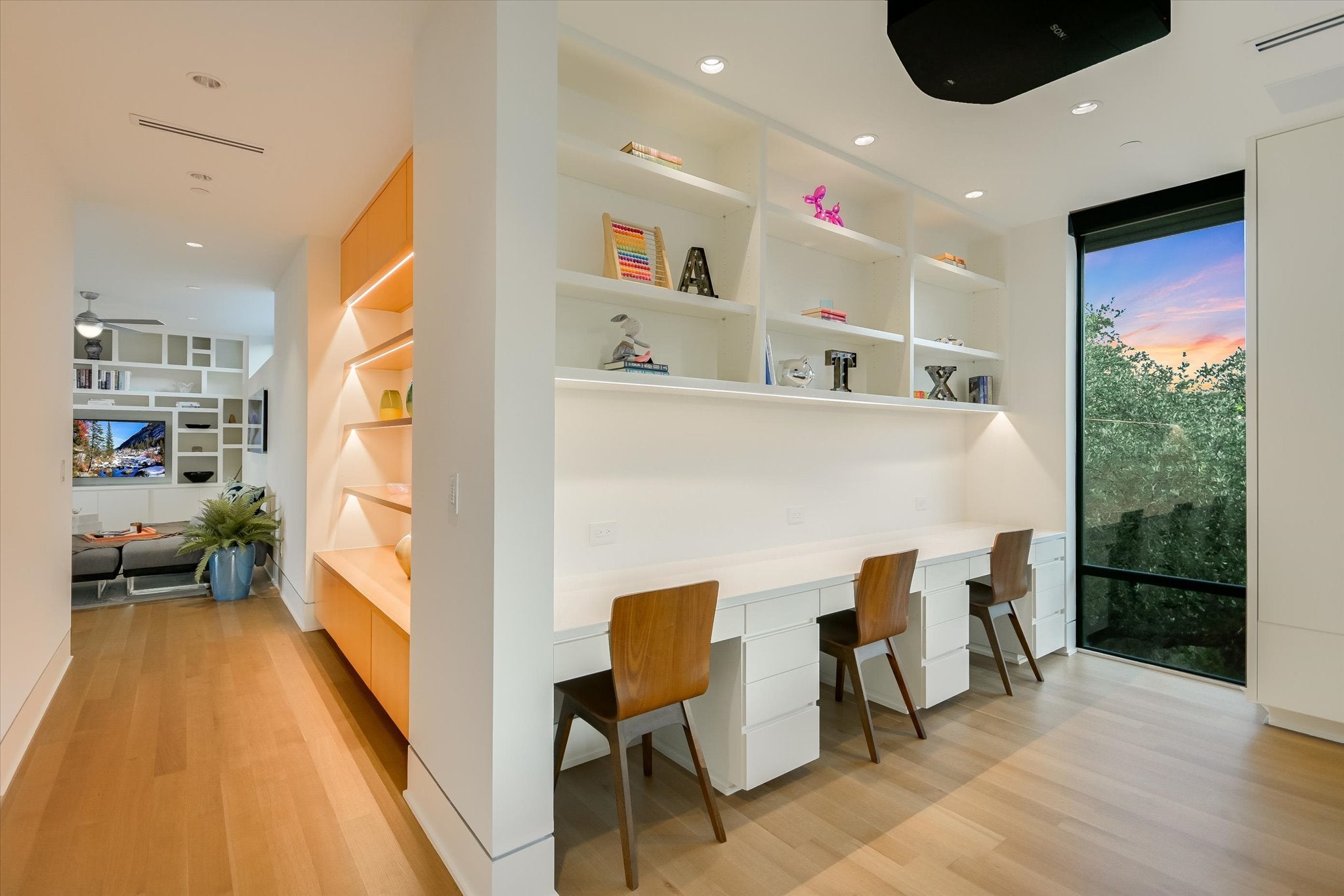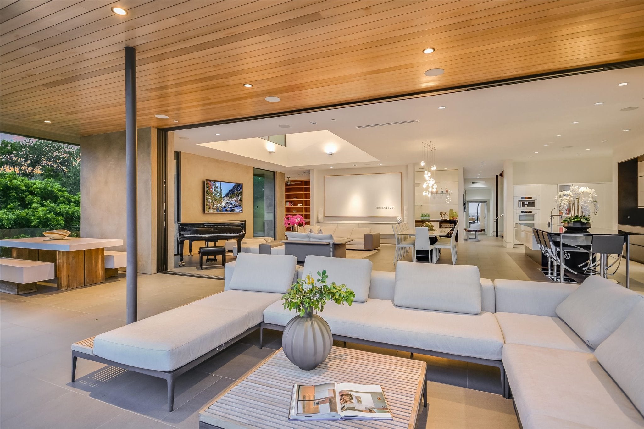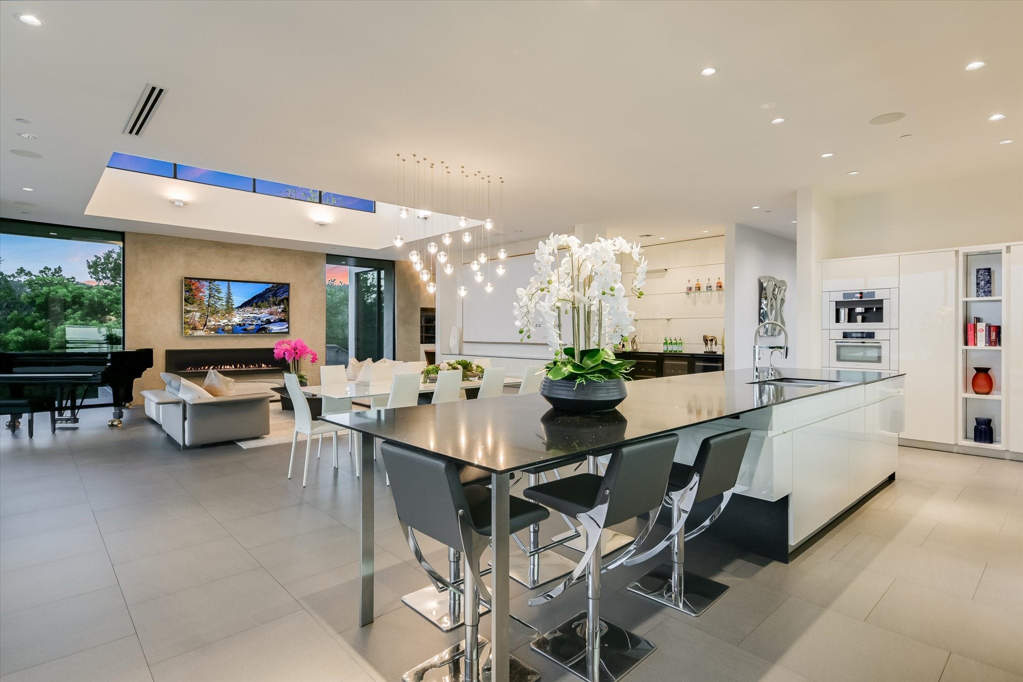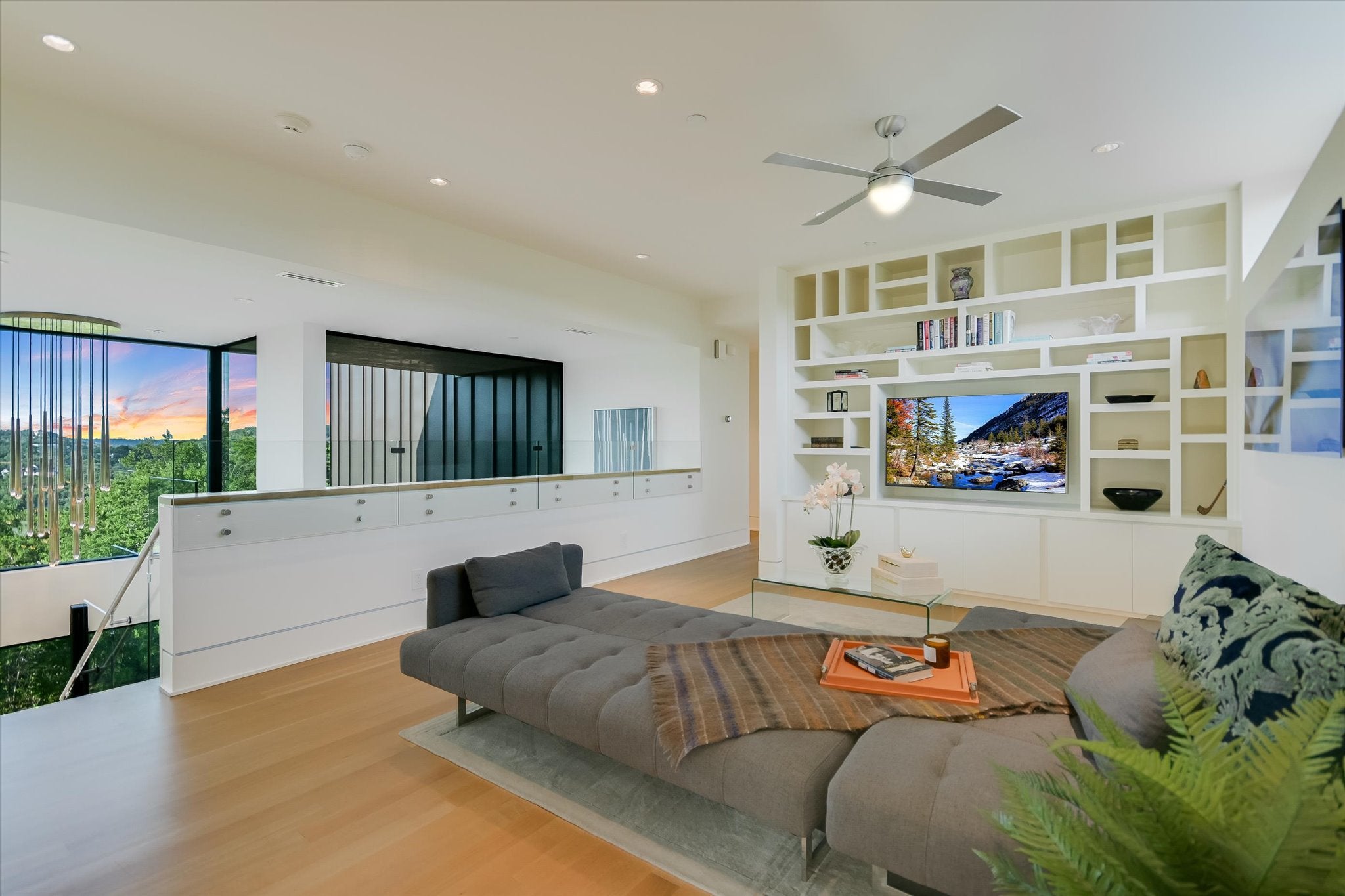 A Modern Masterpiece in Westlake Hills Perched atop one of Westlake Hills’ highest points, minutes from downtown, the Waterfall House embodies the pinnacle of modern luxury. This fully gated estate, designed by the acclaimed Dick Clark Architects, offers an immersive living experience w/sweeping skyline views & a seamless connection between nature, design, and technology. Set on over an acre of landscaped grounds & shaded by heritage oaks, the residence blends clean architectural lines w/soft organic elements. Steel-and-glass Fleetwood doors open the home to more than 1,000 sqft of covered terraces, where downtown Austin becomes part of the visual canvas. Built in 2013 by John Luce with additions made in 2019 The main living features raised ceilings, plaster walls, fireplace, custom Bocci chandelier, Hemlock-paneled ceilings, & Italian porcelain tile floors (that continue outdoors) to heighten the sense of fluidity between interior & exterior. At the heart of the home lies a state-of-the-art kitchen outfitted w/Leicht cabinetry, Miele appliances, wine fridges, galaxy-quartz counters, & Blanco sinks. The home offers a total of six bedrooms (all ensuite), including 2 guest suites on the main level one w/Murphy bed, kitchenette, & private entry, ideal for an office, long-term visitors or home gym. Upstairs, a media room and game room anchor the four additional bedrooms. The primary suite is a private retreat made for slowing down, complete with a Victoria + Albert soaking tub, Kohler rain shower, custom closets, & direct access to the pool terrace. Floor-to-ceiling windows offer cinematic downtown views, while motorized blackout shades ensure restful nights. Outdoors swim beneath the stars, gather on the expansive terrace, or simply listen to the breeze drift through the oaks. Cutting-edge systems ensure comfort & peace of mind, including a full perimeter security system and a 60W Generac generator powered by a 1,000-gallon propane tank.