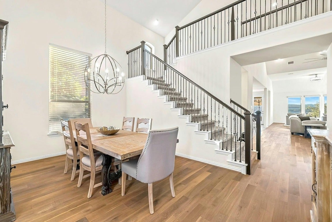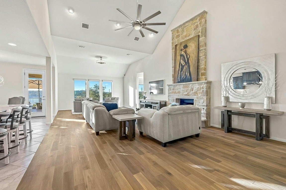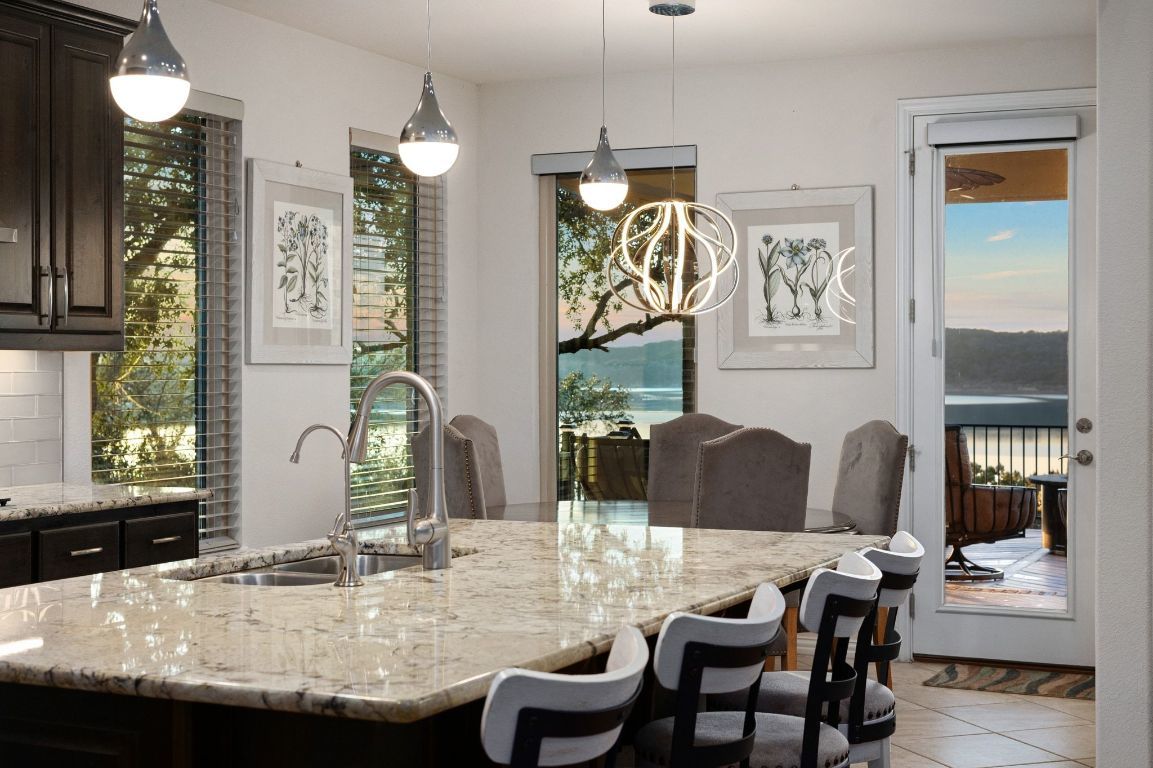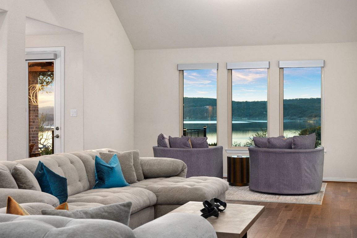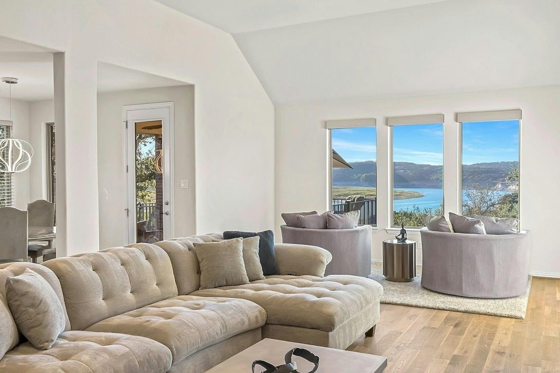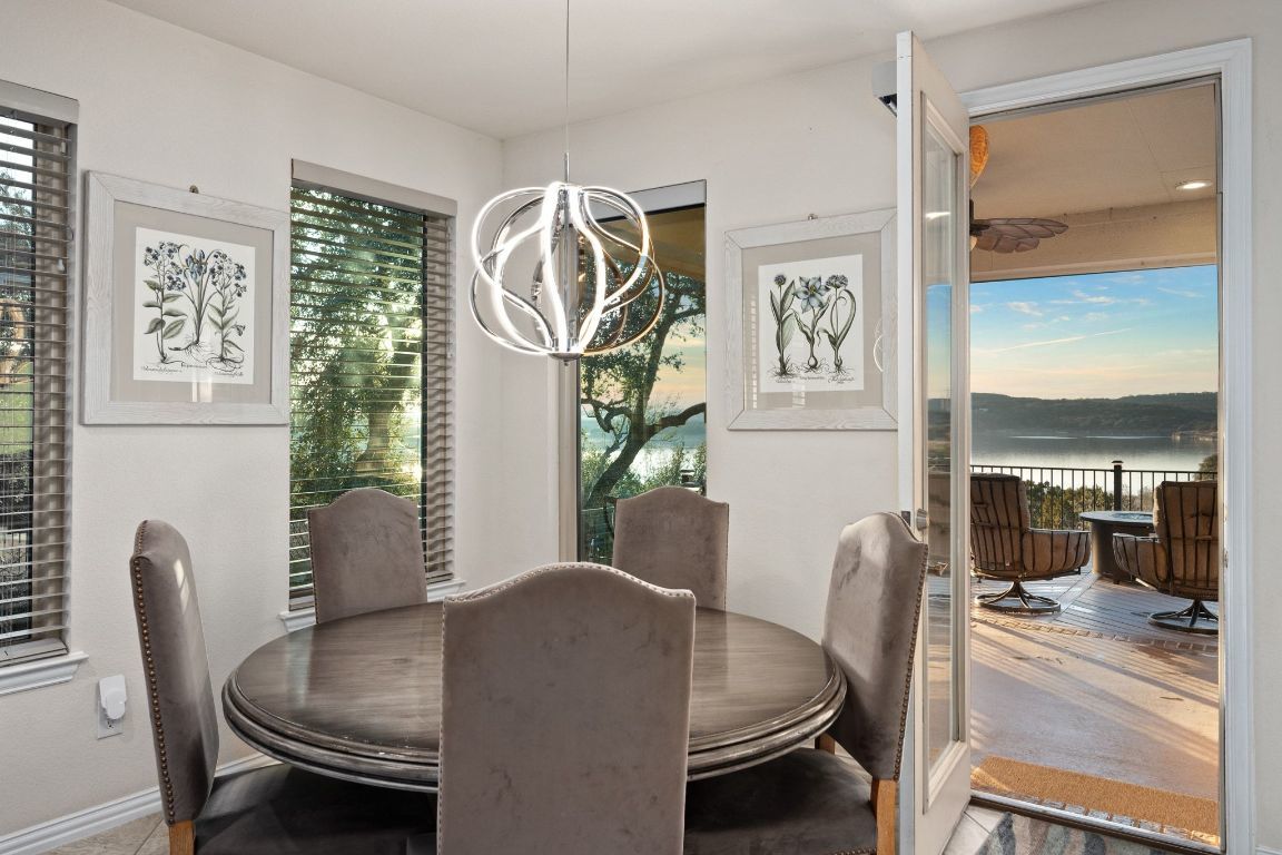 Welcome to 7312 Pace Ravine overlooking Lake Travis sunsets and the Texas hill country. You will find this one-of-a-kind property located in the award-winning Lakeside at Tessera development. Discover breathtaking views overlooking the lake and hill country from almost every corner of the property. See the lake from the kitchen, dining, family room, owner’s suite, and even the owner’s retreat shower. Check out the wrought-iron gate conveniently located along the backyard fence line to access developer green space. This green space directly behind the property leads right to Lake Travis. Enjoy the stunning pool, equipped with waterfall, light, and self-cleaning features, by the reputable Cody Pools. This Highland home still has builder warranties, a functional floor plan designed to show off views, soaring ceilings, and upgrades galore. Structural upgrades include an extended owner’s suite, powder bath, new 25-year platinum roof with warranties, extended outdoor living areas, and a media room. Design upgrades include new triple pane, Krypton filled, DaBella windows with a lifetime warranty, wood flooring throughout main living areas, automatic blinds, a Tesla charger, fruit trees, reverse osmosis system, upgraded garage flooring/storage, and more. Please request the full features sheet to review the extensive list of upgrades. Find the community private boat ramp steps away from the house. The Lakeside pool, boat marina, playground, pavilion, trailheads, picnic area, and grills are located on the same street as 7312 Pace Ravine- just 4 houses down! A rare opportunity + a must see!