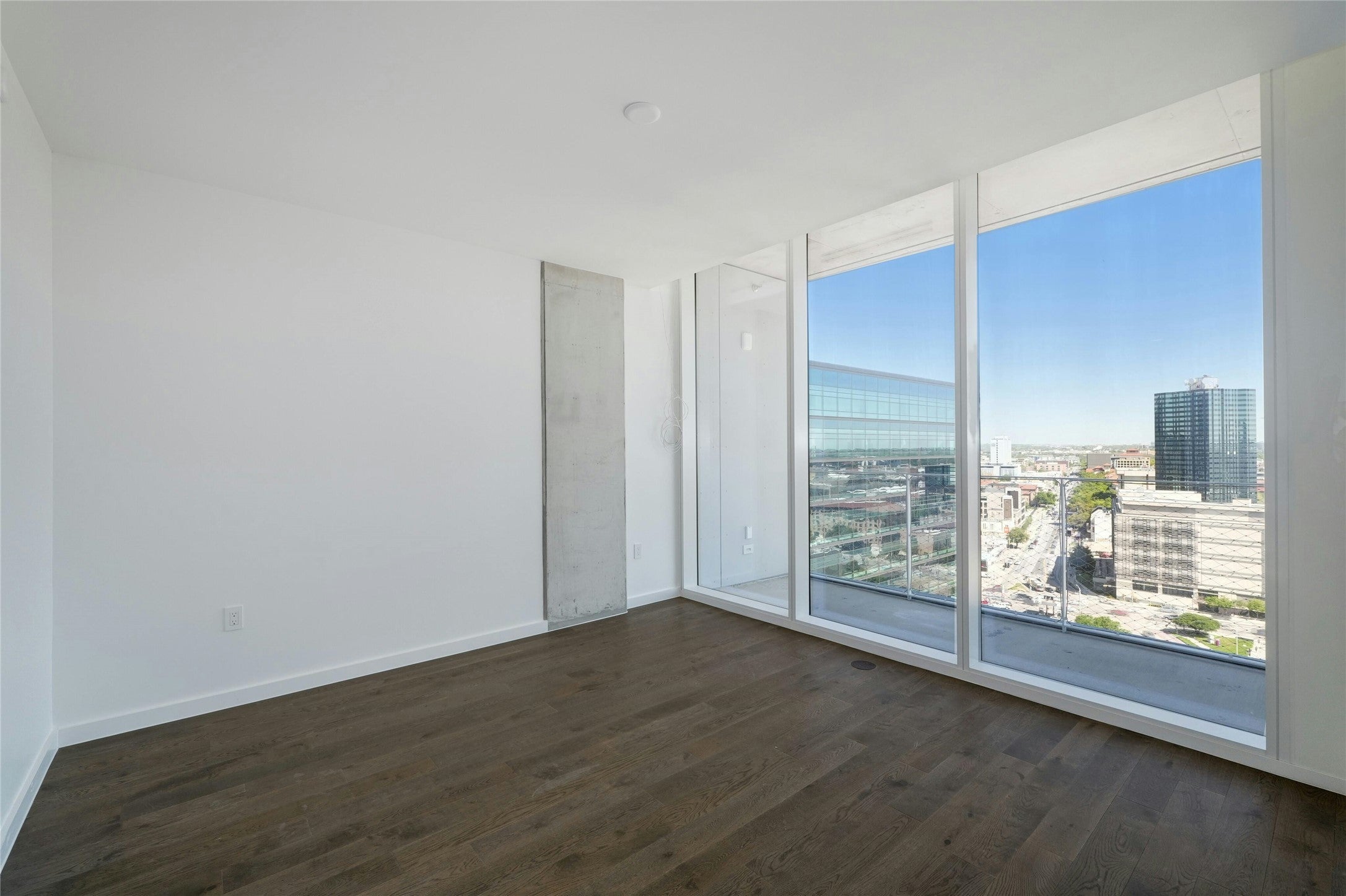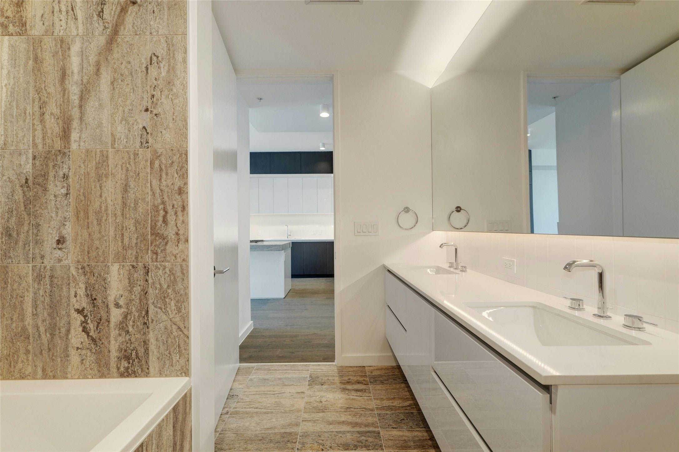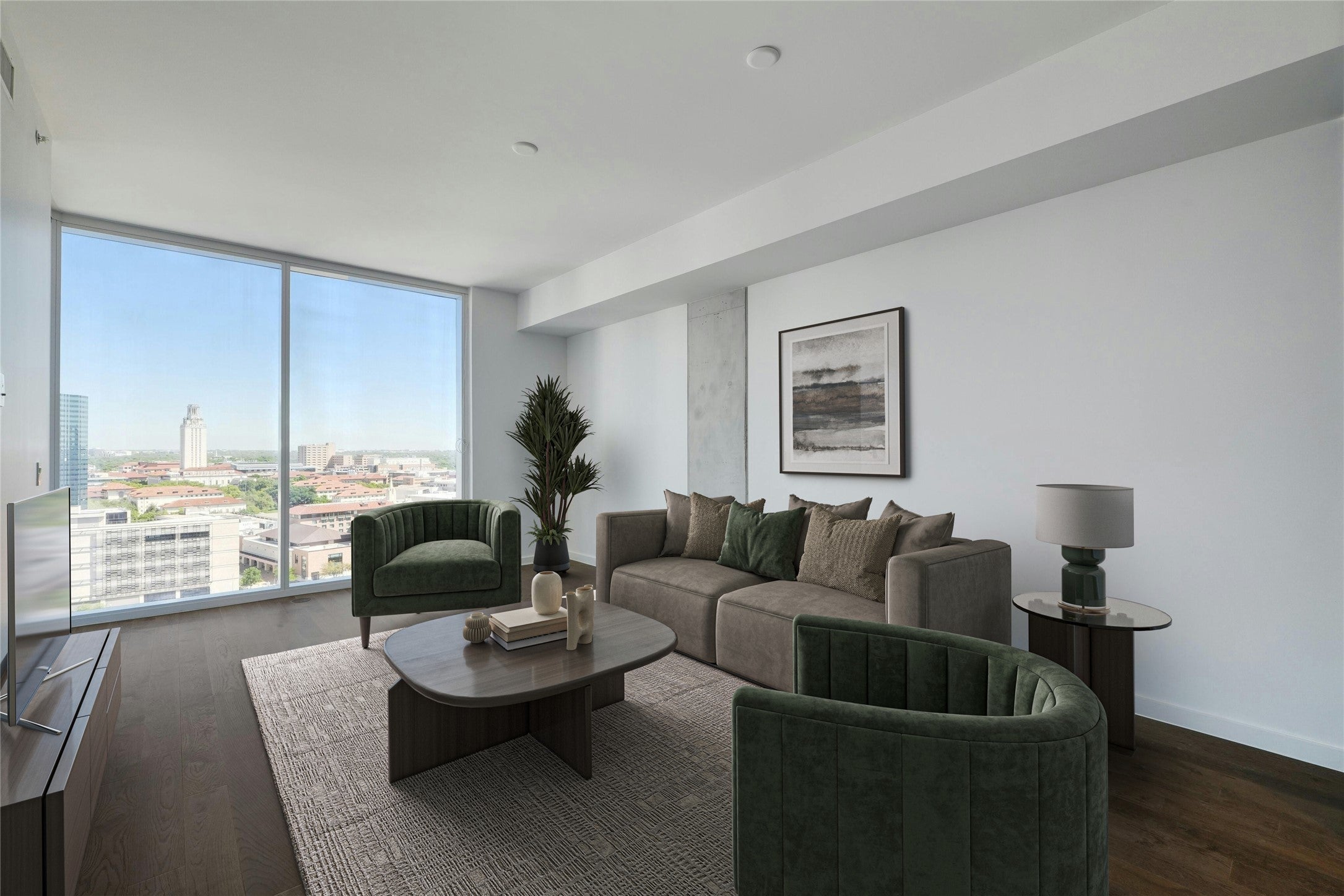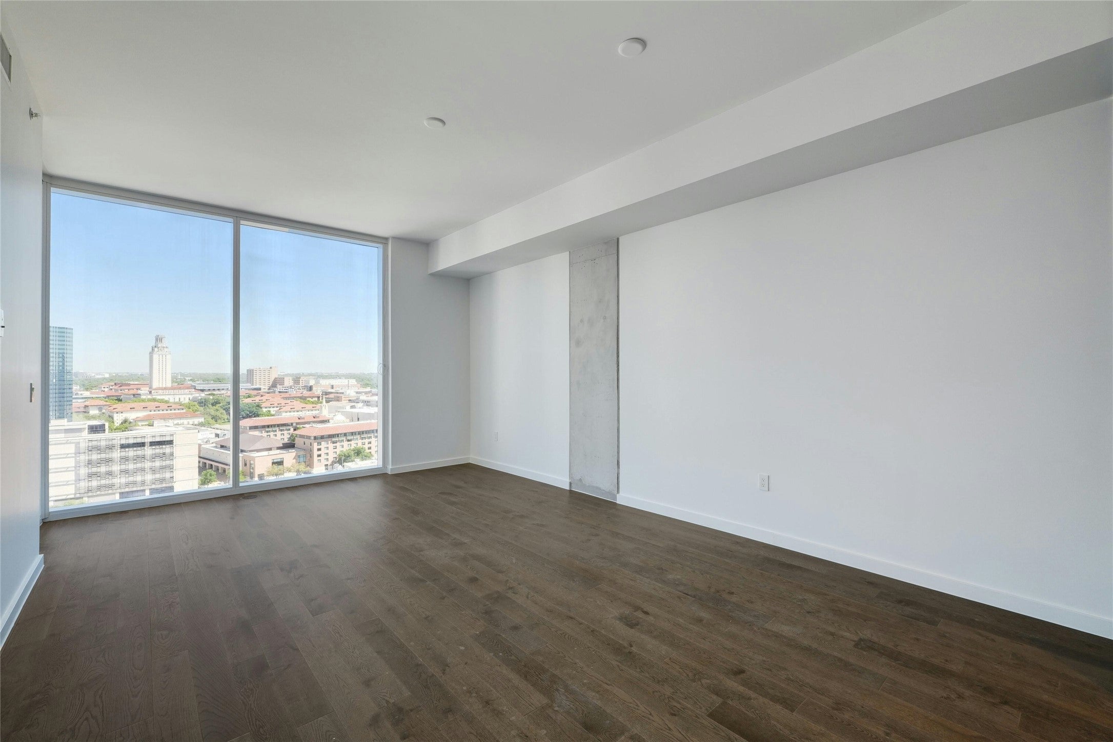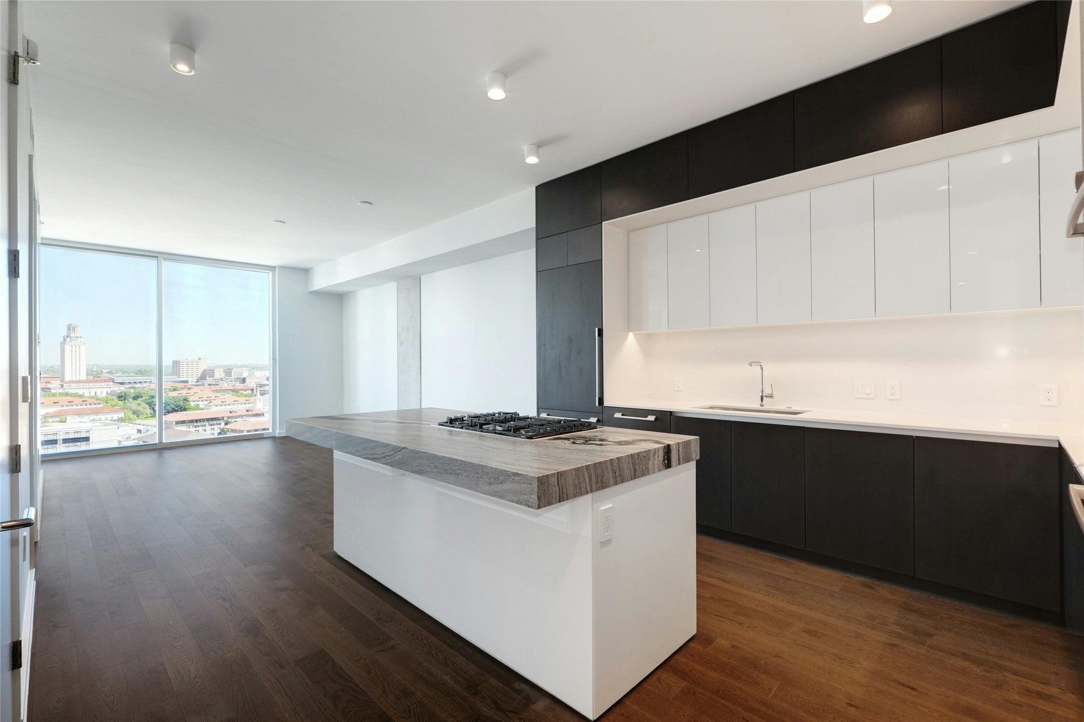 Priced to sell and below market value! There is a lease in place until end of May and investor lease permit conveys with sale! Condo comes with a storage unit of 72 sqft and one parking spot and is the largest 1 bedroom 1 bathroom plan at Linden. Fans and modern light fixtures installed with motorized shades throughout the condo. Experience upscale urban living in this beautifully designed 1-bedroom condo perched high above the city in a sleek, modern high-rise located in the historic heart of downtown Austin. Floor-to-ceiling windows flood the space with natural light and frame stunning, unobstructed views of the iconic UT Tower and surrounding skyline. Step into the open-concept kitchen with custom cabinetry, built-in refrigerator, island with built-in gas cooktop. The spacious bedroom features panoramic views through full-height glass walls, offering a serene and light-filled retreat. Enjoy your morning coffee or evening wine on the expansive private balcony, perfect for soaking in views of the Capitol, Texas Mall, and the buzz of downtown life. A separate coat closet, Bosch washer and dryer, and spa-inspired bathroom add everyday convenience. Unbeatable location—just steps away from the Texas State Capitol, Texas Mall, University of Texas, and the Medical District, this condo places you at the heart of Austin's cultural, educational, and professional hubs. Additional features include state of the art amenities, and 24 hr. concierge