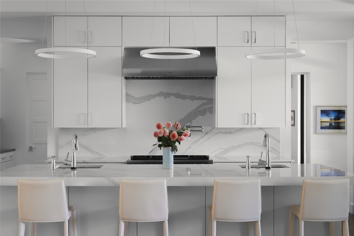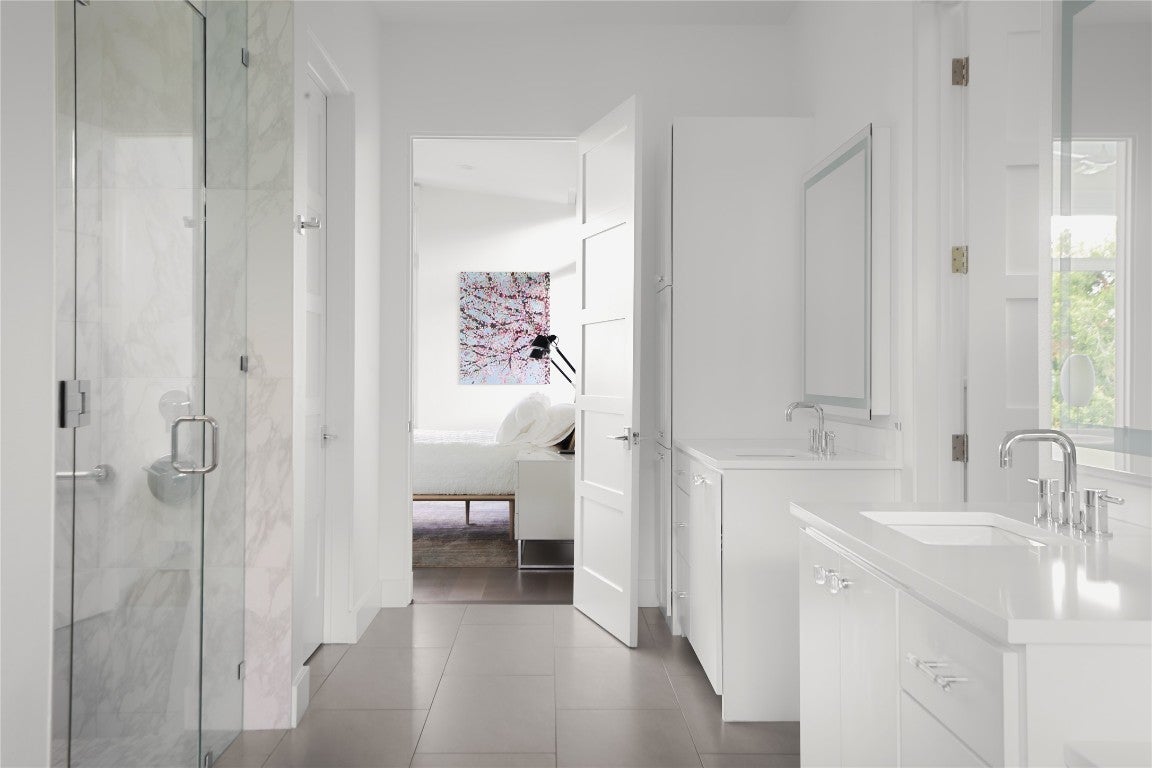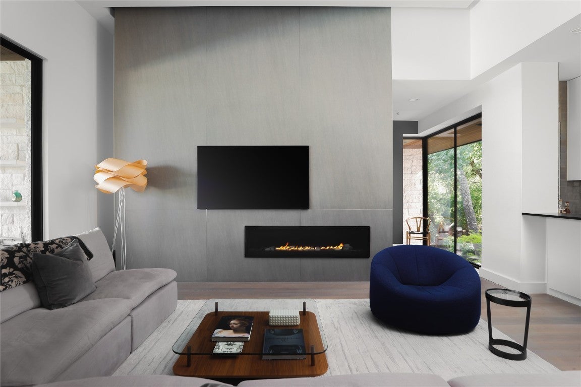 Discover an extraordinary fusion of contemporary sophistication and Hill Country charm within the prestigious gates of Spanish Oaks—Austin's premier golf course community. This singular architectural achievement by renowned Kai Geschke Architects presents a striking study in modern minimalism, where crisp white walls and refined neutral palettes create an exquisite canvas for discerning art collectors. Expansive floor-to-ceiling windows frame breathtaking landscape vistas while flooding every room with glorious natural light. This meticulously crafted single-story residence flows effortlessly throughout, featuring a seamless great room design and an open-concept living, kitchen, and dining area complemented by an elegant formal dining space. Beyond the main living areas, a thoughtfully designed upper level offers an additional 591 square feet of finished, climate-controlled space—bonus square footage that enhances the home's versatility without being included in the primary floor plan, perfect for a private office, studio, or flexible living area. Built for generations with premium, enduring materials, this home seamlessly integrates cutting-edge technology with environmental consciousness. Energy-efficient systems, comprehensive LED lighting, intelligent mirrors, and sophisticated automation create an unexpectedly low-maintenance luxury lifestyle. The outdoor sanctuary centers around a magnificent 60-foot lap pool and spa, perfectly positioned alongside a chef-caliber outdoor kitchen equipped with integrated heating and cooling systems. Wellness enthusiasts will appreciate the private gym with adjoining steam room for the ultimate experience. Nestled on an exclusive enclave overlooking the first hole of Spanish Oaks' championship golf course—masterfully designed by former PGA architect Bobby Weed—this retreat offers complete serenity within one of Austin's most coveted gated communities.