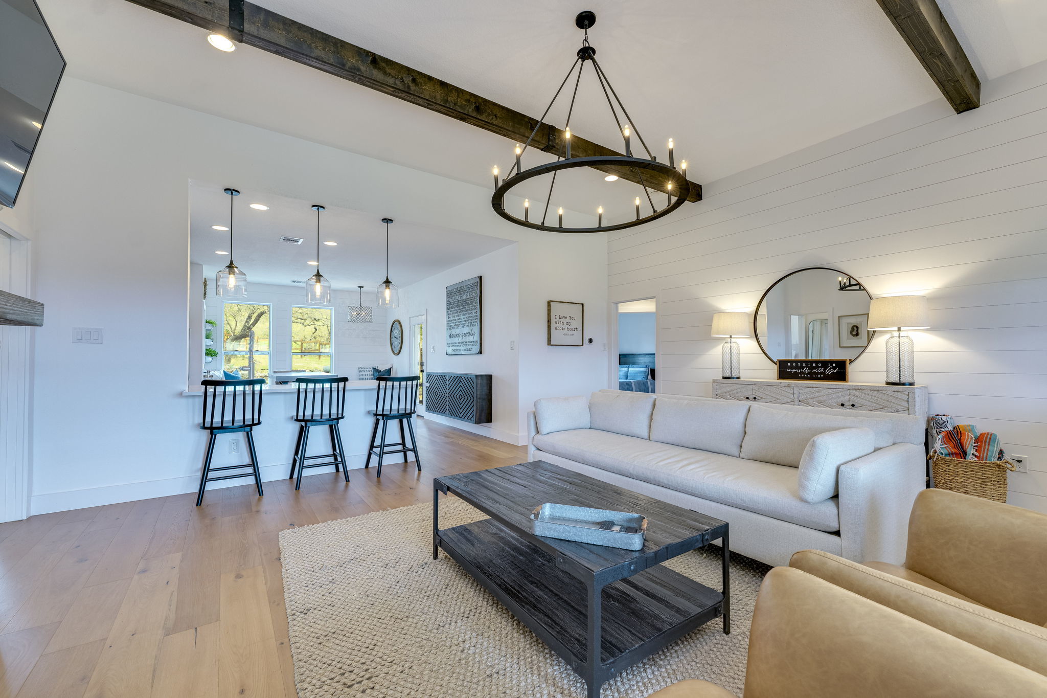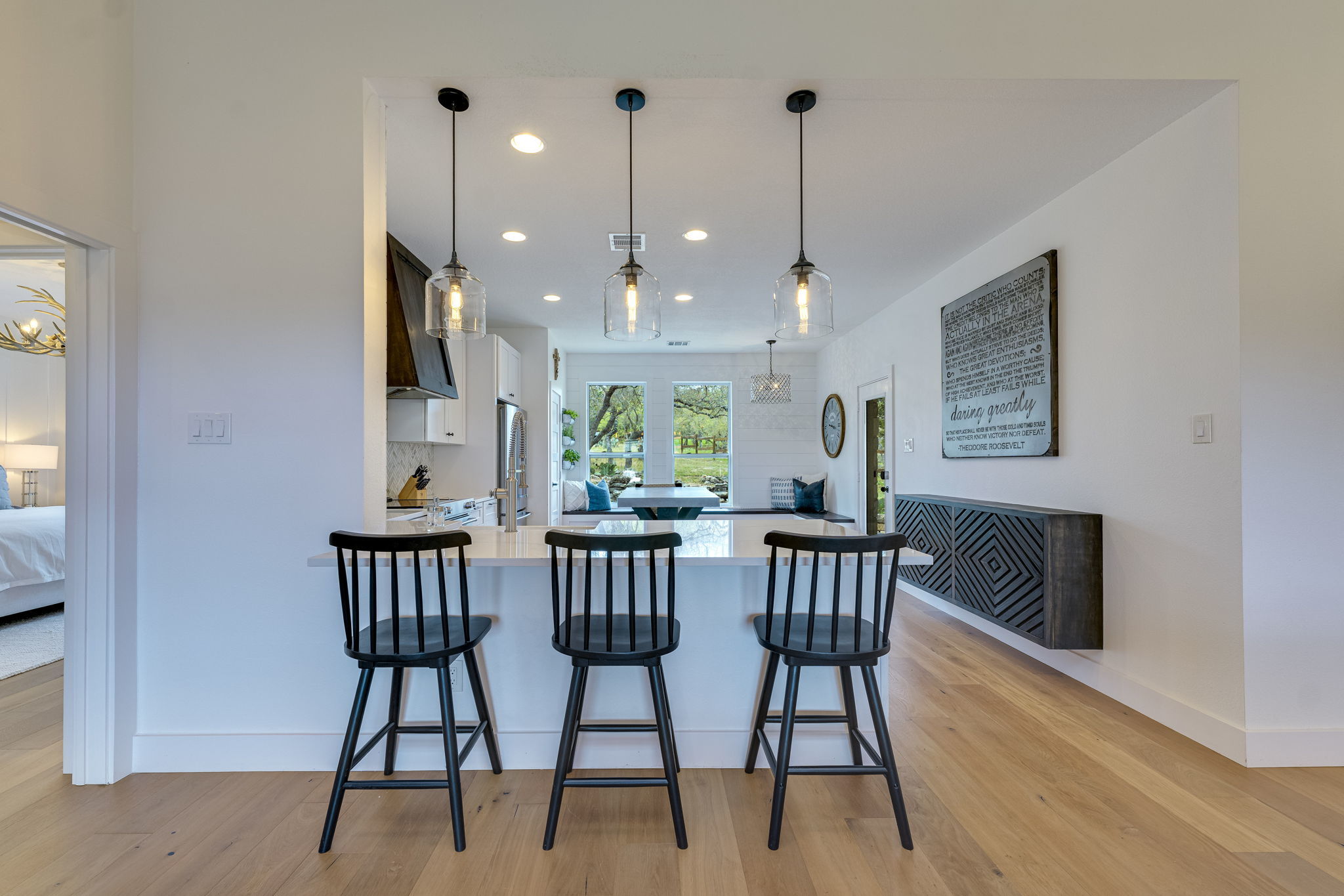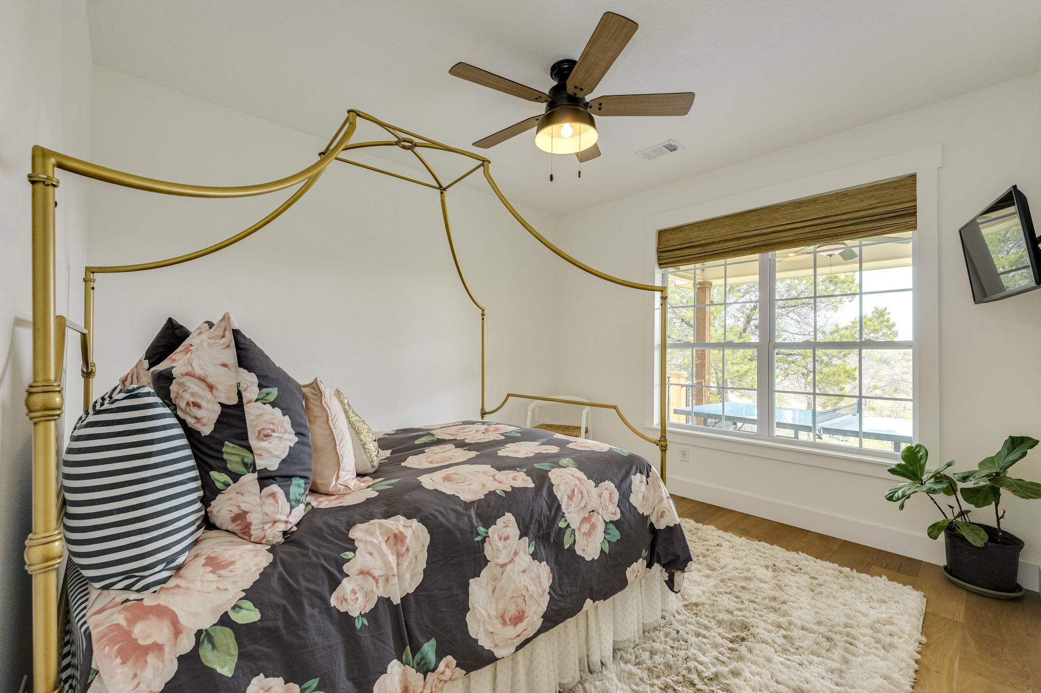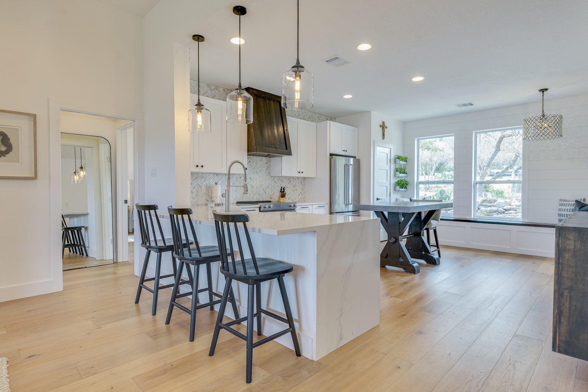 Live the Hill Country lifestyle along the picturesque Pedernales River in Spicewood. This fully furnished luxury lease in the scenic Lick Creek Ranch community offers a peaceful retreat on more than 1.5 acres along a quiet gravel road. Positioned above the river, the property gently slopes to a private staircase leading down to your own dock - perfect for kayaking, paddleboarding, or simply relaxing by the water. Pure hill country serenity! Outdoor living is a highlight with a covered back porch, an extended deck on one side, and a al fresco patio on the other. The patio includes high-end outdoor seating, a gas fire pit, grill, ping pong table, and space to gather under the stars. A charming garden shed sits along the path to the river. Inside, the 1,642-sq-ft home features soaring vaulted ceilings with exposed beams and a bright open layout anchored by a striking fireplace. Over $100K in recent upgrades throughout! Modern finishes blend with subtle rustic touches for a relaxed Hill Country feel. The kitchen overlooks the living area and offers waterfall granite countertops, updated SS KitchenAid appliances, and classic Shaker-style cabinetry. A spacious dining area with built-in wraparound bench seating creates an inviting place to gather. The home includes three bedrooms and two stylish full baths. The primary suite features a spa-inspired walk-in shower, dual vanity, and walk-in closet. Lick Creek Ranch residents have access to two optional volunteer HOAs with scenic neighborhood parks, including one with a boat ramp, picnic area, and fire pit. Top rated schools include West Cypress Hills Elementary and Lake Travis Middle & High. Convenient to Hwy 71, 11 miles to the Spicewood General Store, 14 miles to the Hill Country Galleria, and 30 miles to Downtown Austin, with wineries, distilleries, golf, Lake Travis access, hiking trails, and dining nearby. Pets negotiable w/ landlord approval + $300 deposit per pet + a one time $300 non-refundable pet fee.