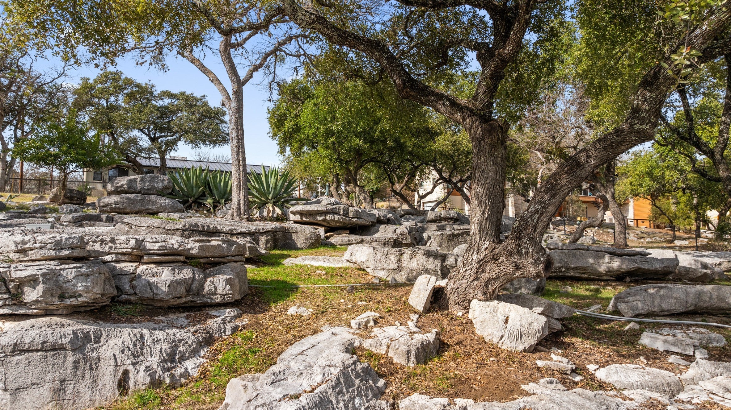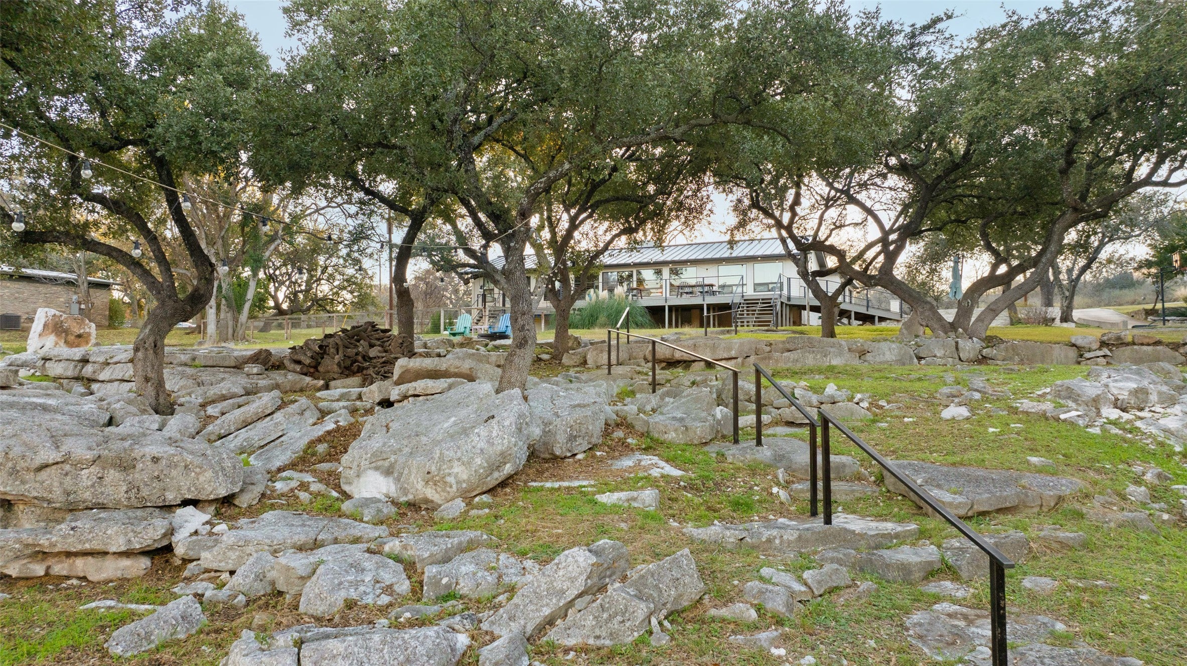 - Back Yard, Sloped Down, Front Yard, Moderate Trees, Native Plants, Rolling Slope, Views, Rock Outcropping