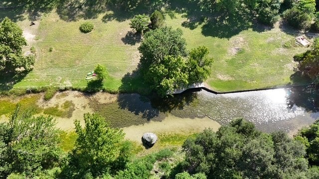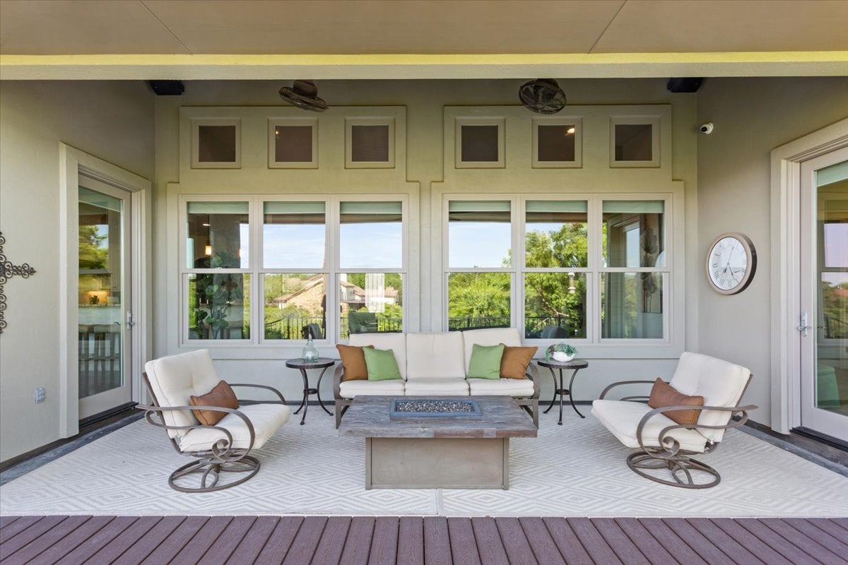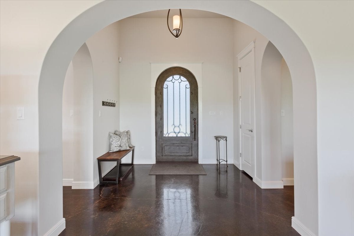 Peace & tranquility perfectly define the setting for this beautifully crafted custom home in the Falls of San Gabriel.Discover this one-of-a-kind enclave community. This stunning single-story home showcases meticulous attention to detail by the Sellers & their builder.Ideally positioned on a corner lot on a a cul-de-sac, even the exterior stonework and stucco are distinctive and seamlessly integrated. A charming courtyard, enclosed by a stone half wall featuring the same unique pattern, is truly a must-see. A breathtaking, heavily treed view awaits from the rear patios. Step through the front door to a striking wall of windows along the back of the home, drawing the natural beauty indoors from the moment you enter—this is also the serene view you’ll wake up to. Gourmet kitchen is equipped with all Jenn-Air appliances, including a 6 burner propane cooktop, oven, convection oven, & warming drawer. Upgraded granite countertops, great center island with sink, cabinetry, & a breakfast bar. Features include spice cabinets,built-in desk area, & large walk-in pantry. Bedrooms are carpeted, while much of the home features stained concrete, heated tile floors in primary bath. Propert includes a whole-house generator! Enjoy 3 patios with scenic views, 1 with a built-in grill, tree lights & ambient exterior lighting throughout the grounds. Wrought iron fence adds to the ambiance. Flex room can serve as a media room, living room, or study. The 3rd garage, approx. 220 sq. ft. & not included in the square footage, is climate-controlled with central air. Concrete-walled “safe room” is located within the 2 car garage. Expansive driveway adds parking. Enjoy private HOA-owned hike & bike trails reserved exclusively for residents, leading to the San Gabriel River. Falls of San Gabriel is unique community & this home is an exceptional must-see. Full list of features or request or during your visit— simply too many to list. The home sits on half an acre, but w/view seems larger.