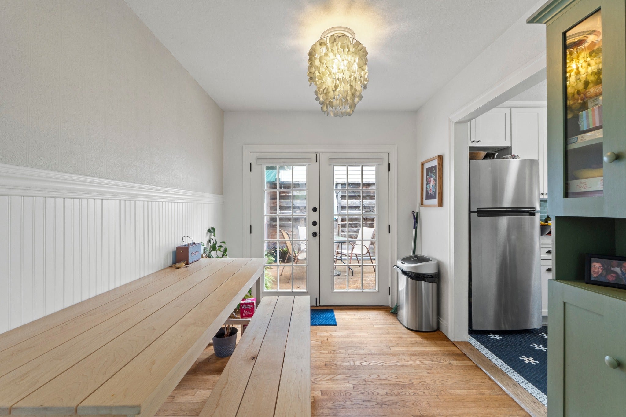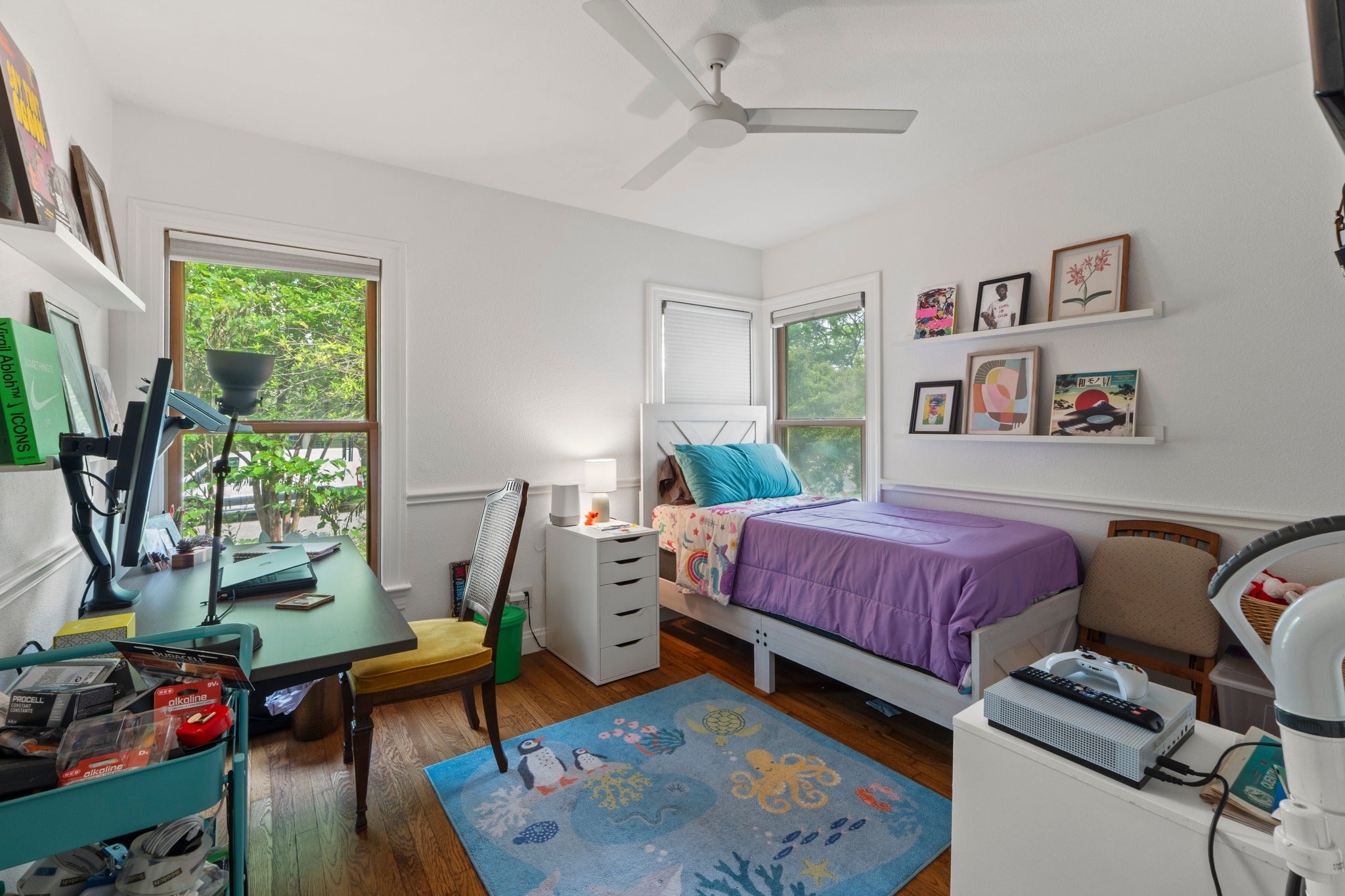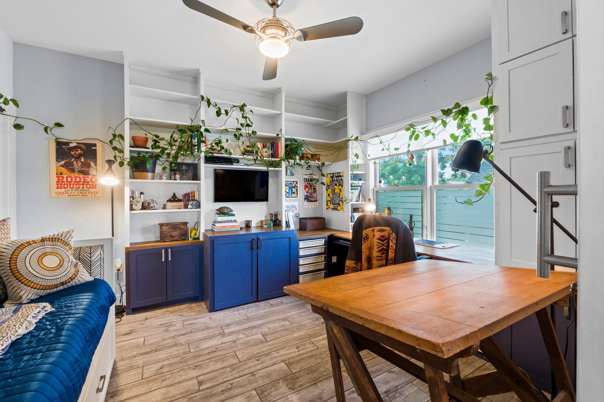 Rare North Loop opportunity with two homes on one lot. Whether you are looking to offset your mortgage by renting one home while living in the other, host extended family, or create a dedicated work-from-home setup, this property offers flexibility that is nearly impossible to find in North Loop. Don't miss the chance to own a piece of one of the city's most sought-after neighborhoods with a built-in income stream. The front house is a charming two-bedroom, one-bathroom bungalow with classic character and thoughtful updates throughout, including a refreshed kitchen and bathroom. The back house is accessed through the rear alley for added privacy and is thoughtfully designed with two bedrooms and a full bathroom upstairs, plus a convenient half bathroom on the main level. The upstairs bedrooms sit among the treetops, giving the space a quiet, tucked-away feel. Guest bedroom has fantastic built-in bookshelves that make it perfect for an office or kid’s room. Alley access also leads to a true two-car garage and a third covered parking spot, a feature that is hard to come by in this neighborhood