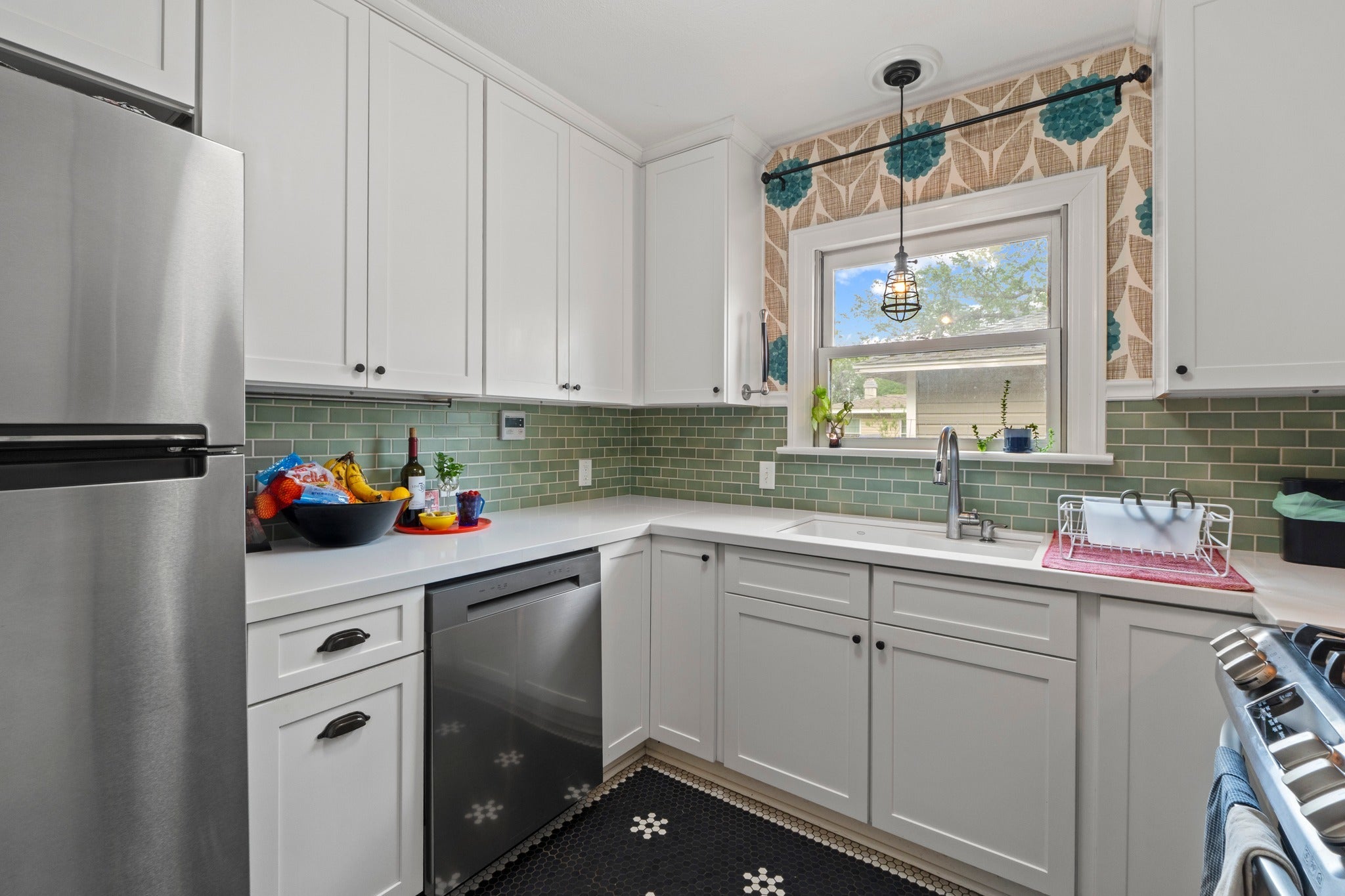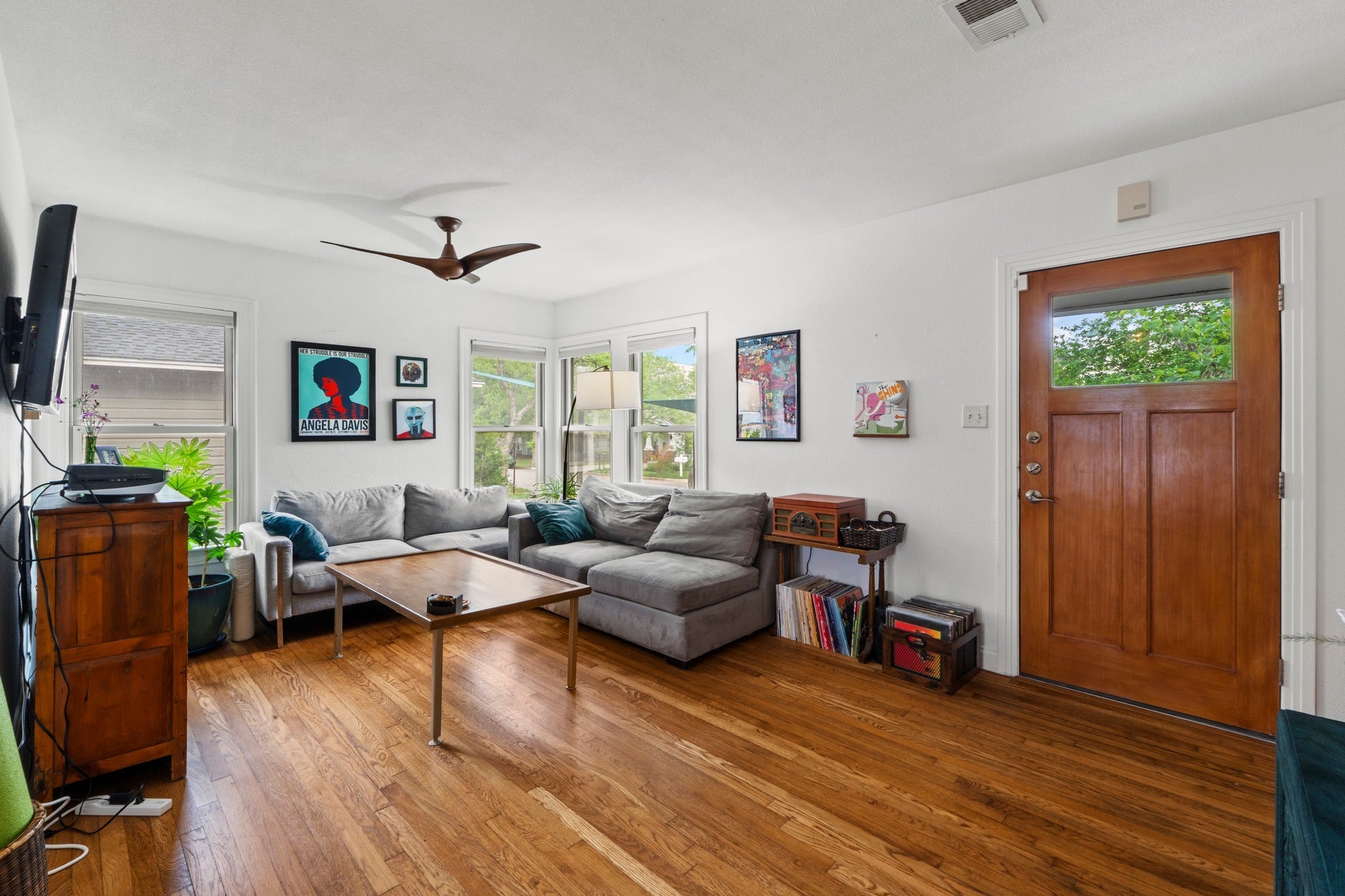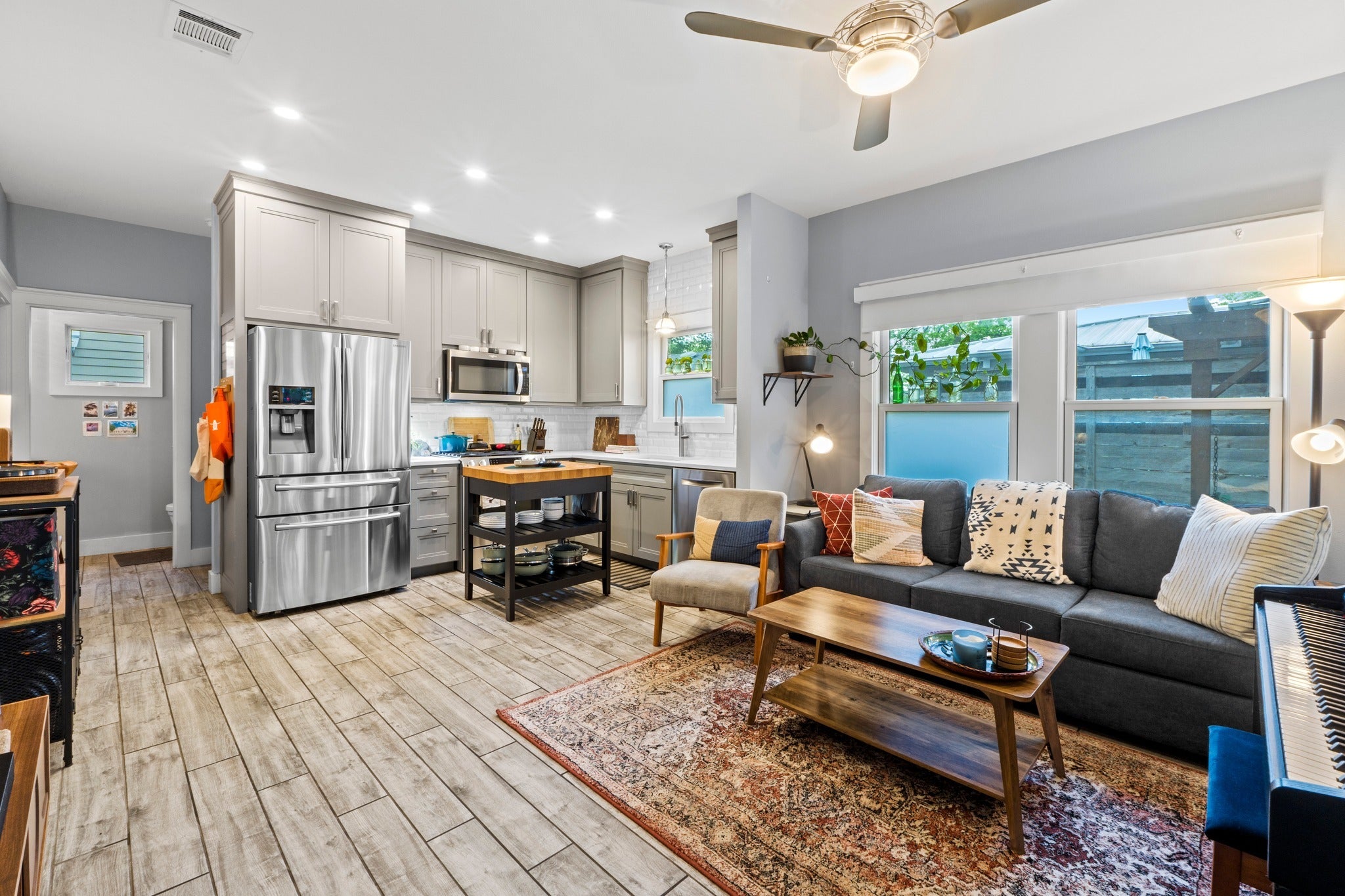 Rare North Loop opportunity with two homes on one lot. Whether you are looking to offset your mortgage by renting one home while living in the other, host extended family, or create a dedicated work-from-home setup, this property offers flexibility that is nearly impossible to find in North Loop. Don't miss the chance to own a piece of one of the city's most sought-after neighborhoods with a built-in income stream. The front house is a charming two-bedroom, one-bathroom bungalow with classic character and thoughtful updates throughout, including a refreshed kitchen and bathroom. The back house is accessed through the rear alley for added privacy and is thoughtfully designed with two bedrooms and a full bathroom upstairs, plus a convenient half bathroom on the main level. The upstairs bedrooms sit among the treetops, giving the space a quiet, tucked-away feel. Guest bedroom has fantastic built-in bookshelves that make it perfect for an office or kid’s room. Alley access also leads to a true two-car garage and a third covered parking spot, a feature that is hard to come by in this neighborhood