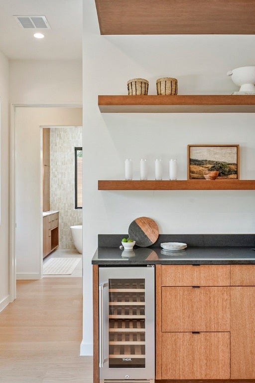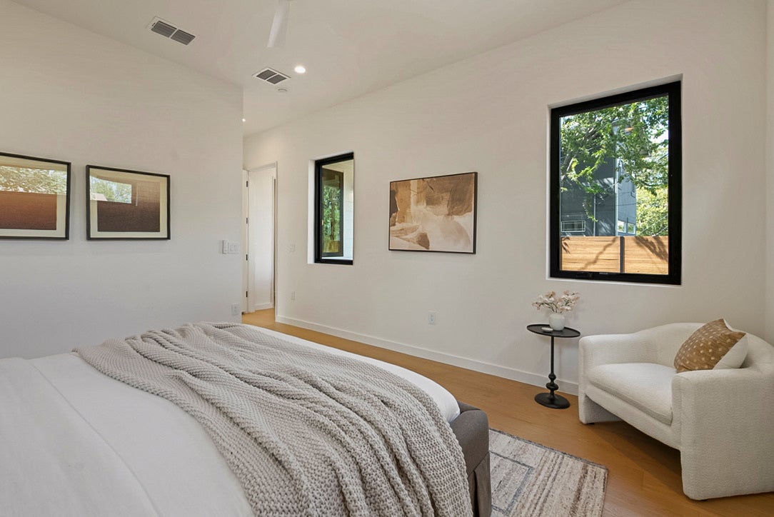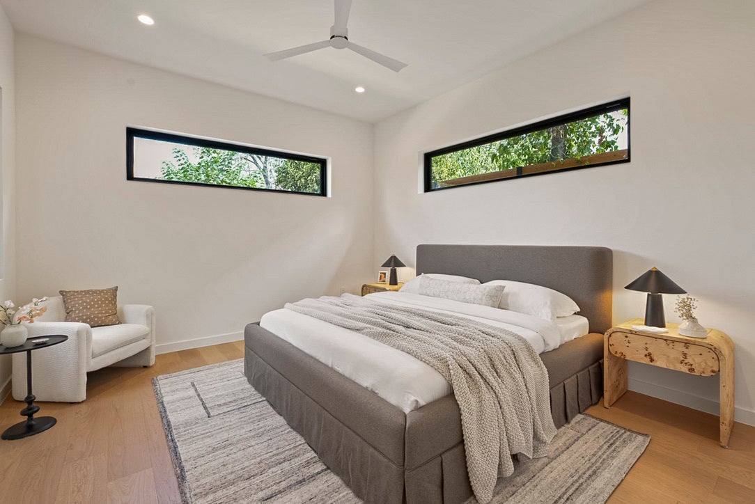Crafted by Skiera Homes in partnership with J&S Quality Construction and designed by R&D Architecture, this home perfectly blends modern architecture, timeless finishes and everyday functionality. Thoughtfully designed with the primary suite on the main level and flexible spaces ideal for multiple living or office areas. Step inside to white oak wood flooring throughout and floor-to-ceiling custom white oak cabinetry in the kitchen and primary suite. The chef’s kitchen features striking Taj Mahal quartzite counters, premium appliances, and an oversized island, perfect for cooking and gathering. In a separate entertaining zone, a dedicated wet bar offers floating shelves, a built-in wine fridge, and sink. Ideal for hosting guests or enjoying an evening drink. Natural light floods the home through large black Andersen windows, enhanced by skylights and step lighting along the staircase. The primary suite features a spa-like bath and a walk-in closet with dedicated washer/dryer hookups, while each additional bedroom offers custom closets and thoughtful touches such as built-in desks, nooks, and storage. Designed for indoor-outdoor living, the backyard features a modern design with cedar fencing and steel posts for privacy and durability. The two-car carport is wired for an EV charger, with the option to add a garage door for enhanced privacy. OWNER / AGENT.
