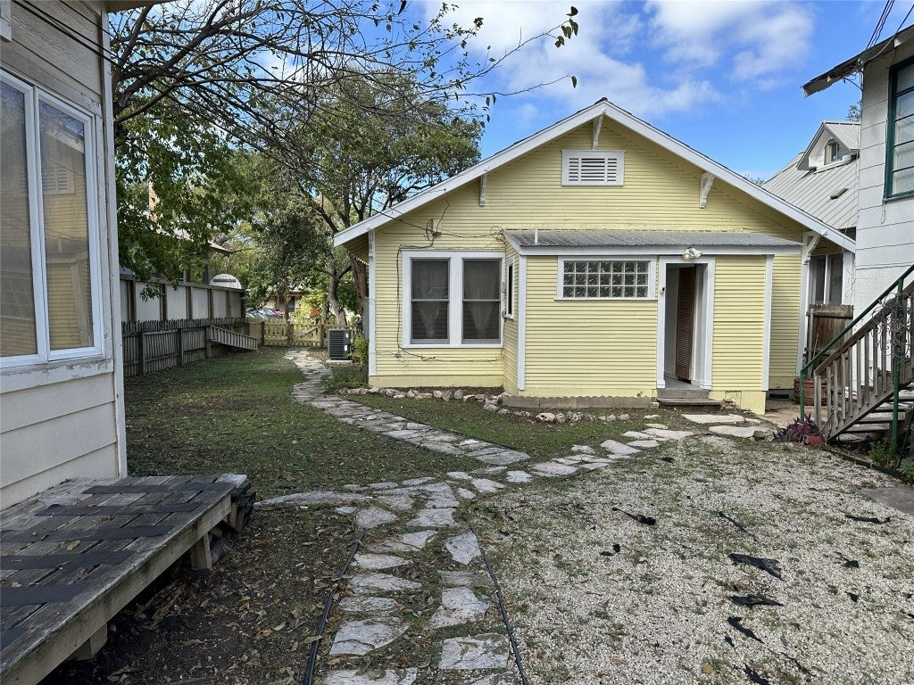 2107 Eva Street Built in 1929, this property sits in one of the most desirable locations in town. With endless possibilities, it’s ready for your vision—whether you want to create a fresh new space, preserve its nostalgic character, or continue using it as a rental investment. Situated on a duplex-sized lot with alley access, the main residence offers 1,064 sq. ft. with two bedrooms and two baths. The garage apartment adds another 912 sq. ft., featuring an upstairs unit plus additional space below. Just steps from South Congress, you’ll enjoy walking access to Austin’s best restaurants, shopping, and entertainment. The brand-new HEB grocery store is only a couple of blocks away, making everyday living both convenient and vibrant.