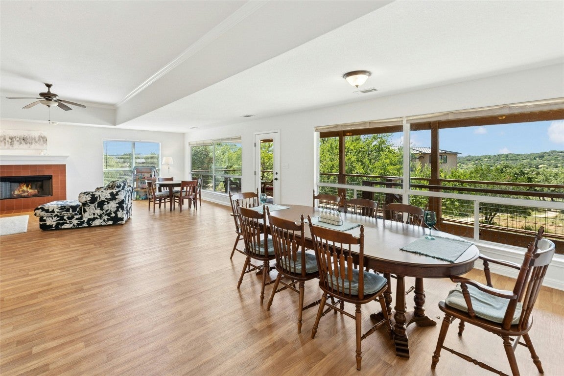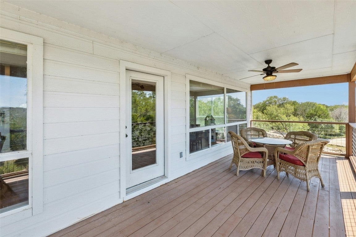 Expansive 5-bedroom waterfront home featuring a sought-after private deep-water dock, situated on more than 1.5 acres of land, offering gently sloped access to the water. Peaceful and sprawling, this property features captivating views and top-notch amenities, with approx. 80 feet of private water frontage. Whether you want to golf, fish, enjoy nature, or get out on the water, the outdoor life abounds. Upon entering the home, you're welcomed by an open and airy space with soaring ceilings, abundant natural light, and walls of windows that frame the stunning lake views, seamlessly connecting to the expansive covered deck that's perfect for dinner and drinks. With five generously sized bedrooms, there’s ample space for family and friends to enjoy the lake lifestyle and create lifelong memories. Two of the bedrooms feature lake views. A large kitchen with inviting breakfast bar seating opens to dining area and an oversized living area, all with views to the lake. The sprawling 1.54-acre homesite features a winding path leading to easy, gentle access to the floating dock. This remarkable home not only boasts stunning water frontage but also offers access to a variety of thoughtful amenities. Located in the vibrant Lago Vista community, this home grants access to exclusive voluntary Lago Vista POA amenities; deep boat ramps, an 18 hole golf course, fitness centers, tennis, pickle ball, fishing well, private parks, hiking, camping, disc golf and sparkling pools. Short Term Rentals allowed. This is a rare opportunity to create a legacy of memories among the timeless beauty of Lake Travis and the surrounding hill country. Home has very large unfinished area at ground level. House is set back on lot - no flood insurance required. Plenty of room to add pool or additional structures, this is a fantastic investment opportunity.