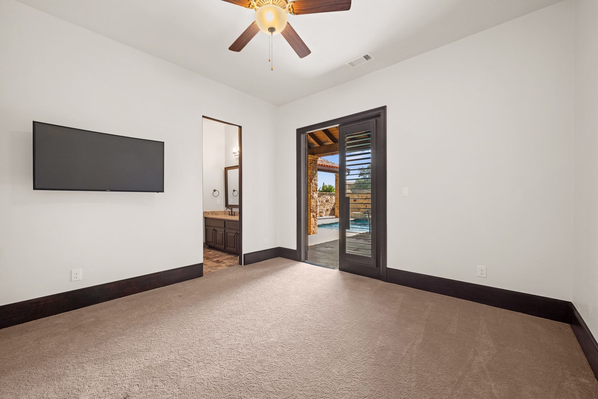 Welcome to 444 La Serena Loop, nestled within the prestigious Escondido community and just steps from the renowned Escondido Golf & Lake Club. This impeccably maintained, single-story residence offers exceptional craftsmanship and effortless luxury living. The main home features four spacious bedrooms, each with its own ensuite bath, while the private casita adds a fifth bedroom and full bathroom overlooking the resort-style pool and spa—perfect for guests seeking comfort and privacy. Designed for easy indoor-outdoor living, the home boasts an outdoor kitchen complete with a gas grill, dual refrigerators, and elegant privacy curtains that can be opened to capture serene views of the 16th tee box and the 15th green. Inside, the generous living room is anchored by a sophisticated bar equipped with an additional refrigerator and ice maker, creating an inviting space for seamless hosting. The seller has thoughtfully appointed the property with high-end furnishings in the living room, dining room, and primary suite—all of which convey with the home. The expansive chef’s kitchen is a true centerpiece, showcasing a 6-burner Viking range with dual ovens—including a convection oven—along with a large built-in Thermador refrigerator and an impressive Thermador wine fridge, making it ideal for both everyday cooking and elevated entertaining. Retreat to the luxurious primary bath, where a grand walk-in shower, separate soaking tub, and dual closets elevate everyday living. Experience the unparalleled lifestyle and world-class amenities that Escondido has to offer in this extraordinary one-story estate.