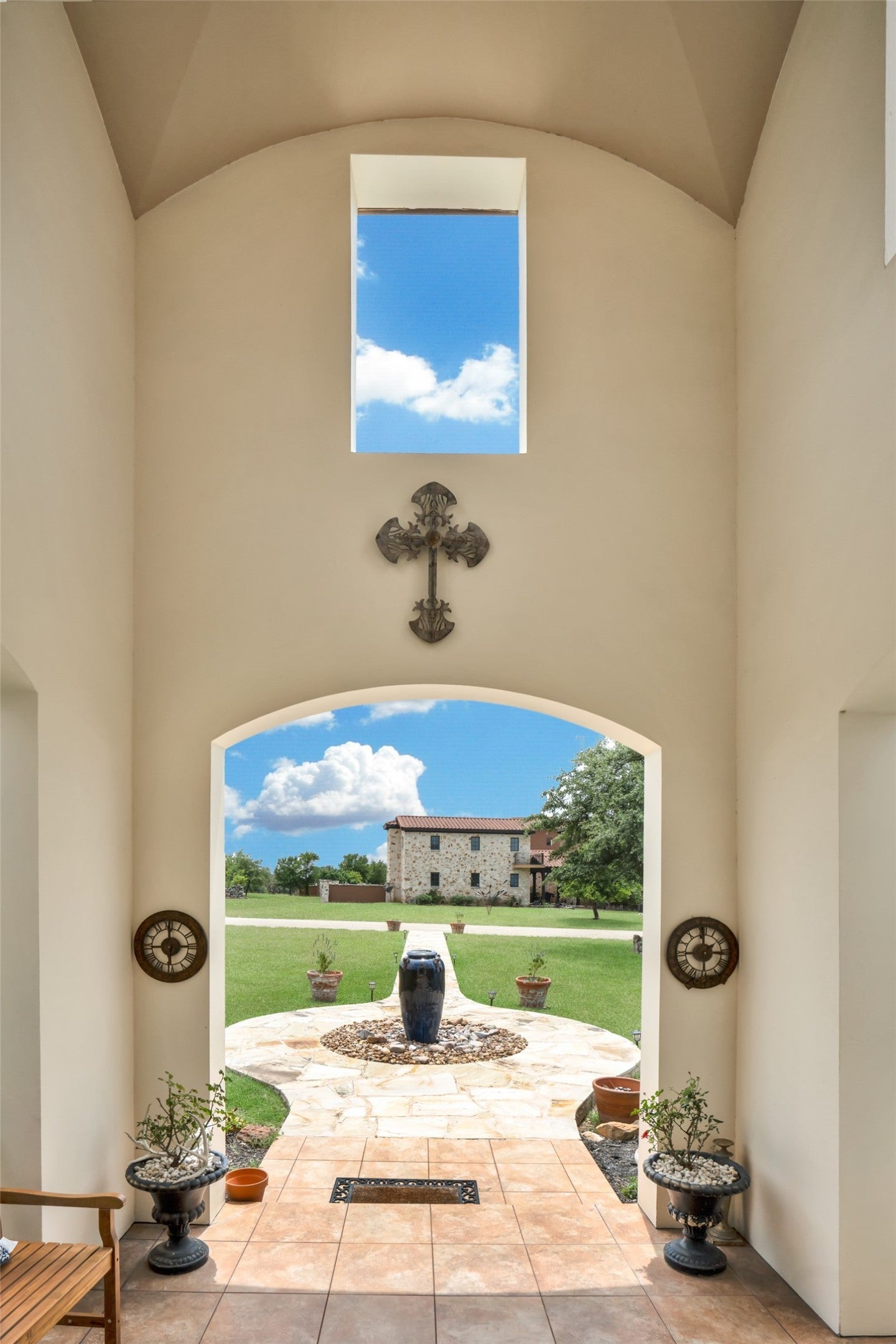 One of the most beautiful views of the Vineyards at Florence. At the top of the hill there are unobstructed views which are absolutely stunning. The Vineyard of Florence offers social gathering at the restaurant, various tasting areas, gorgeous grounds and facilities while enjoying the night stars and moon at their fullest in the hill country setting. This home is truly a master piece positioned perfectly for views in all directions and ultimate in privacy. Luxury homes are rare with this quality and setting on a 2.3 acre corner lot. Exterior and interior features are astounding! From the wine cellar just off the main dining/kitchen area to the private pool/spa with fountain, jetted tub for spa like master bath, there is no end to the peacefulness of this home and grounds.