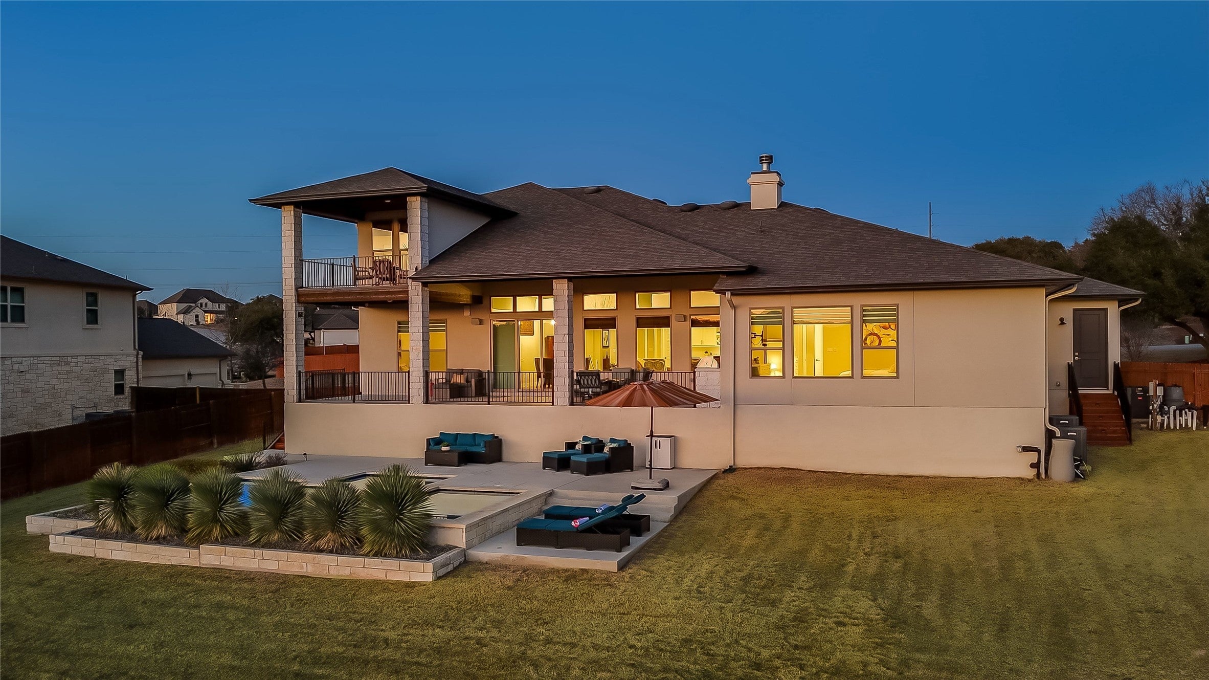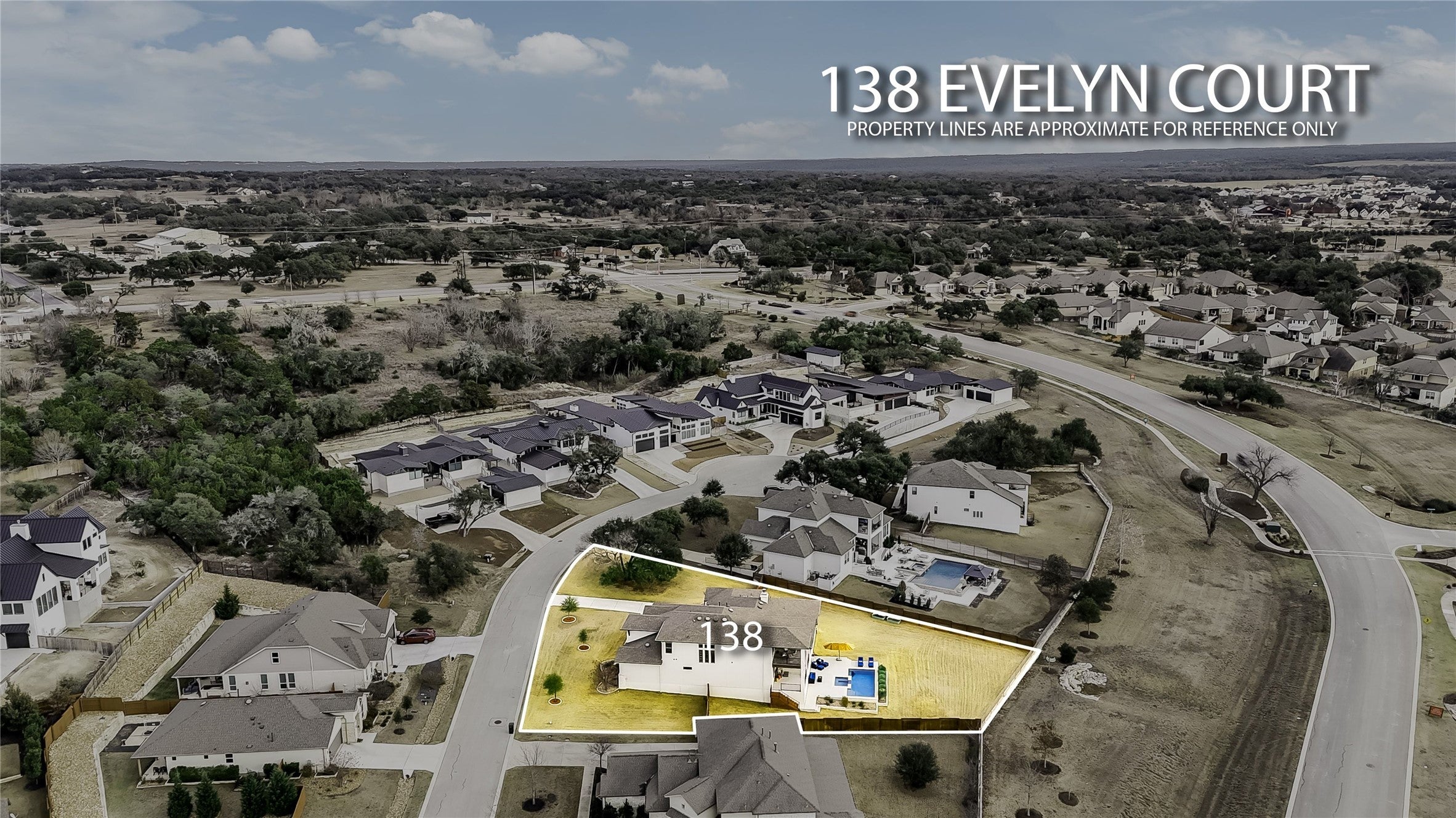 Luxury meets comfort at 138 Evelyn Court in Dripping Springs, Texas. This exceptional Move-in-Ready home offers thoughtful design, quality finishes, custom window treatments, plenty of storage, a layout ideal for families and entertaining and a rare and highly attractive opportunity to assume an existing 4% VA loan - you do not need to be a veteran to take advantage of this exceptional financing option - call for details! The family room features a vaulted ceiling with a wood beam and a wood-burning fireplace with gas starter. The chef’s kitchen includes Silestone countertops, a large island, white shaker cabinetry with glass uppers, double ovens, gas cooktop, Extra large (29.5 cu ft) built-in refrigerator, walk-in pantry, and an open-concept butler’s pantry complete with a wine fridge! The primary suite offers a coffee bar, 2 walk in closets and a spa-like bath experience featuring a soaking tub and a walk-in shower with three shower heads. Two additional main-level bedrooms feature en-suite baths, including one oversized bedroom ideal for a mother-in-law suite. Upstairs includes a loft with access to a second patio, a media room wired for surround sound, a fourth bedroom, and a full bath. The backyard is anchored by a beautiful sparkling pool with spa, spacious patio and outdoor kitchen. The large covered patio features built in outdoor speakers, electrical outlet for a TV, in-ceiling gigabit WAP (dual band), fenced yard, and two balconies with gorgeous sunset views. This incredible outdoor space is an ideal setting for entertaining, relaxing on weekends, and enjoying the Texas sunshine! Location! Location! Location - this property is located in the award winning Caliterra community with numerous hike and bike trails, kayaking on Onion Creek, a dog park, resort style community pools and a short walk to The Barn Community Center and Sonder Coffee shop. Don’t miss the opportunity to experience this remarkable home! Schedule your private tour today!