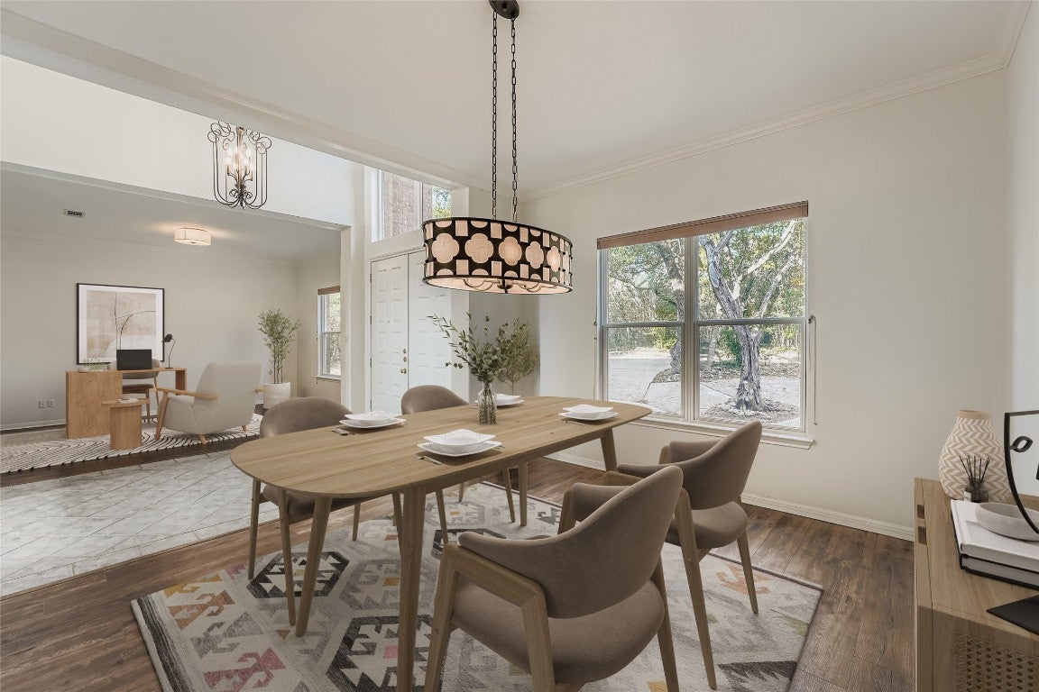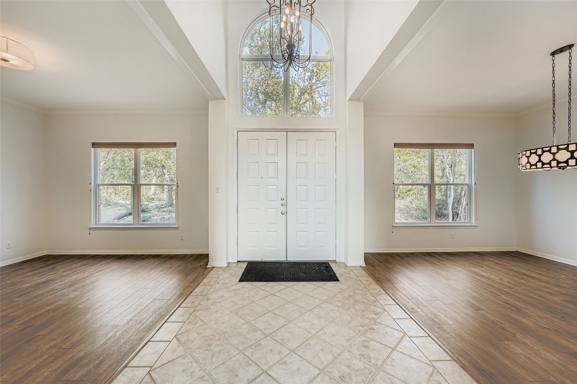 It’s rare to find a home that feels this secluded while being right in the middle of everything Northwest Austin has to offer. Sitting on a lush, tree-covered lot, this home hits that sweet spot between Hill Country privacy and everyday convenience. From the moment you walk in, the soaring ceilings and massive windows make the 4,500 square feet feel even more expansive. The layout is smart—there’s plenty of room for big formal dinners, but the heart of the home is that open family room where you can relax by the fireplace and look out at nothing but green trees. The kitchen is definitely built for a crowd, featuring crisp quartz countertops, a gas cooktop, and dual dishwashers that make cleanup a lot easier after hosting. One of the best parts about this floorplan is the sheer flexibility. With six to seven potential bedrooms, including a main-floor guest suite and a huge game room that leads right out to the deck, you have plenty of options for a home office, a gym, or a dedicated space for the kids. Upstairs, the primary suite is tucked away from the rest of the house, offering a quiet spot to unwind with a jetted tub and a massive walk-in closet and a spectacular view. The back deck is really where this house shines. It’s a massive wood space that feels like a private perch above the yard, perfect for a morning coffee while watching the deer wander through the trees. It’s hard to believe you’re just a mile from H-E-B and within walking distance to Canyon Vista Middle School. You’ve got The Domain and the tech corridor less than 10 minutes away, so you’re never far from the action, but when you’re home, it feels worlds apart. Between the low tax rate and the schools nearby, this place is more than just a house—it’s a solid home base for whatever your next chapter looks like. It’s the kind of property you really have to stand in to appreciate the views and the peacefulness.