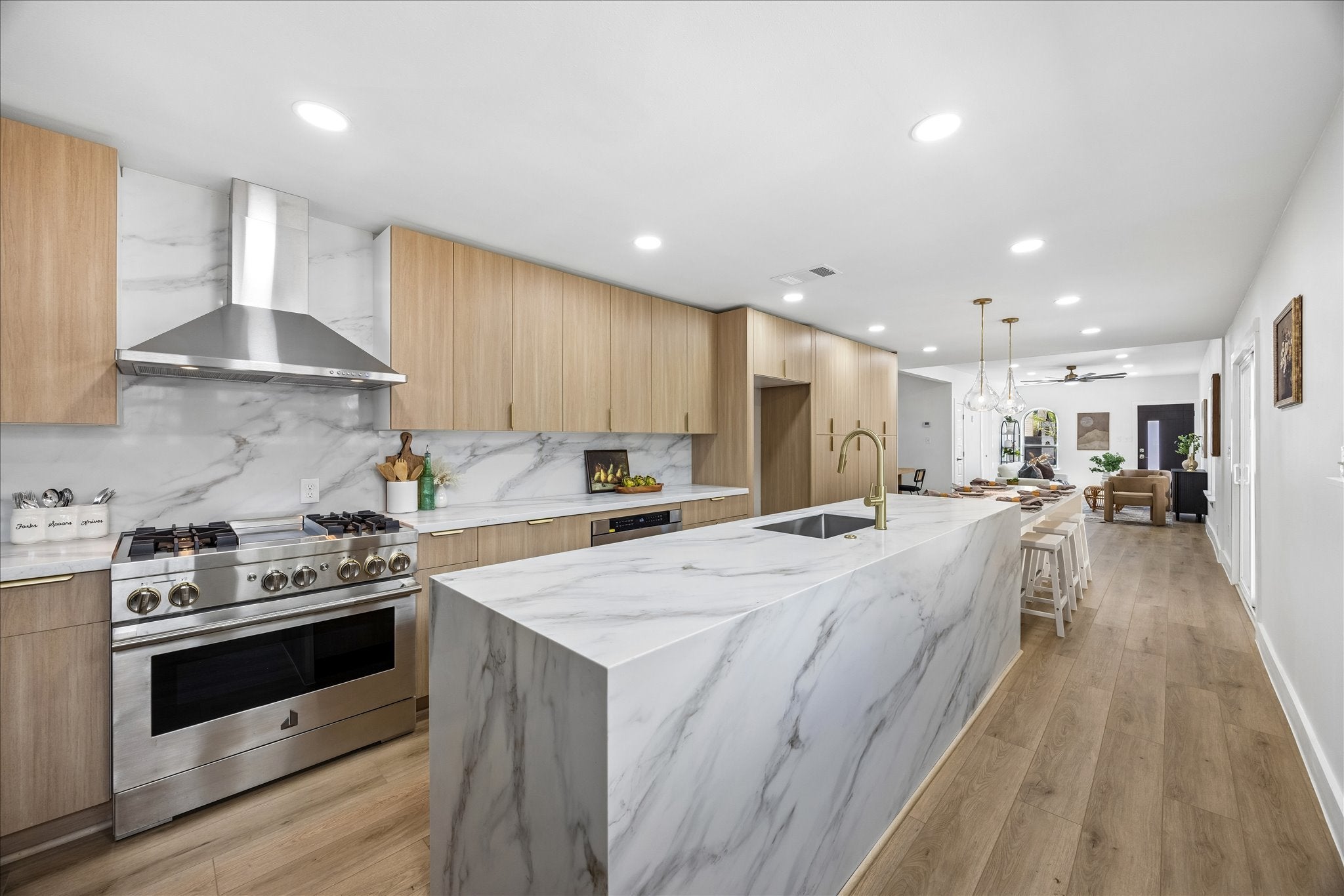 Incredible opportunity in the highly sought after Bouldin Creek neighborhood. Just minutes from the vibrant downtown of Austin sits this amazing 5 bedroom 3 full bath fully remodeled home. Lady Bird Lake, South Congress, and 1st street are all minutes away. Step onto the property and you are greeted with the charm of heritage oak trees providing ample shade. Step inside and you feel the warmth of modern touches curated for everyday living and comfort. Large spacious home with a dream kitchen boasting extremely high end stainless steel gas range and oven. High end Perlick stainless steel wine fridge, Thermador dishwasher, designer light fixtures, and beautiful cabinetry make this kitchen a chefs dream. Quartz countertops cascade the massive island and kitchen walls. Magazine worthy bathrooms and wallpaper imported from London put elegant finishing touches on this lovely home. New interior doors, windows, and flooring throughout. Huge backyard and very little maintenance makes upkeep a breeze. Back alley parking and access is very convenient creating more space for when guest come over. Tons of space for ADU and pool if desired. Make your appointment today this one will not last long!