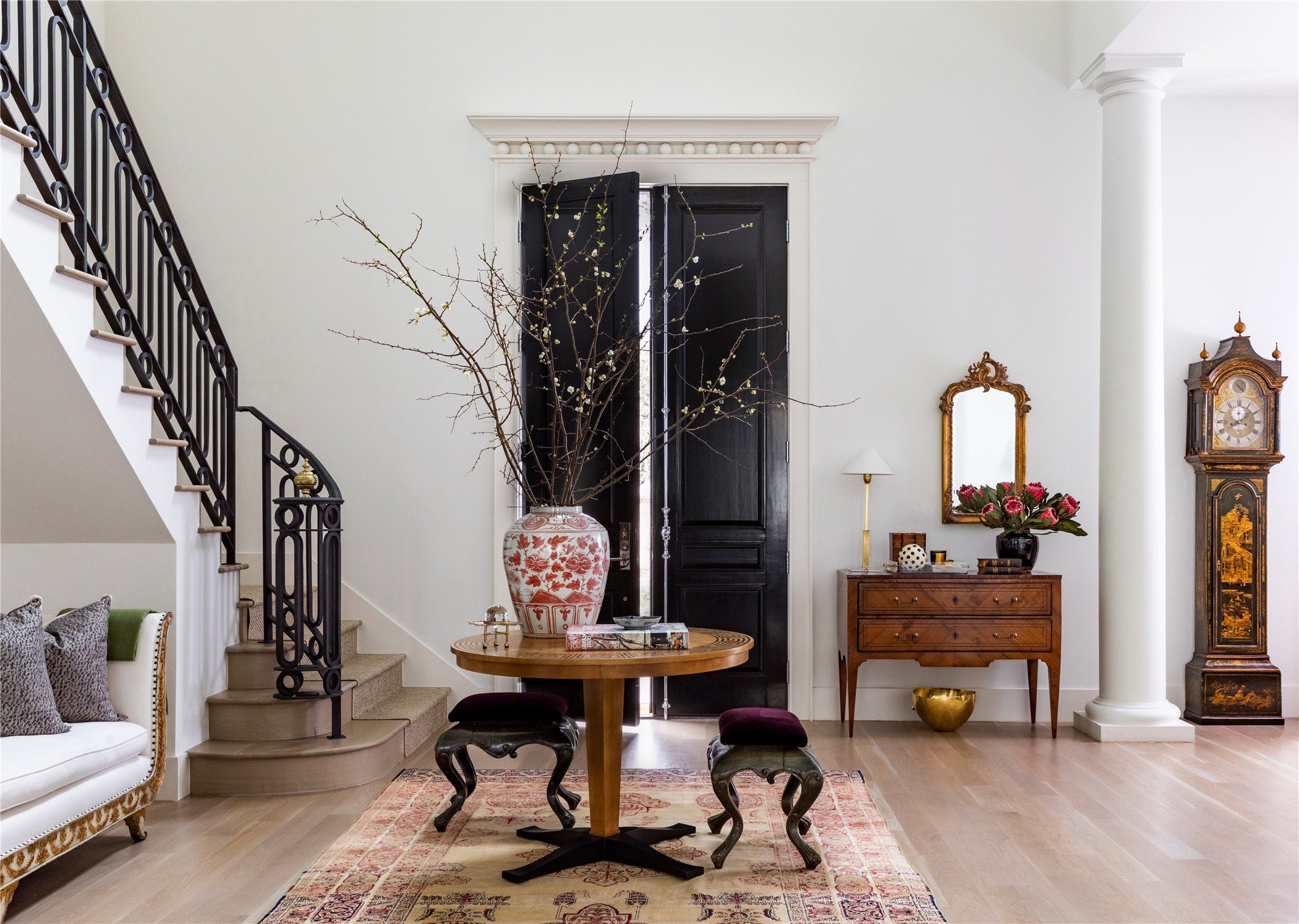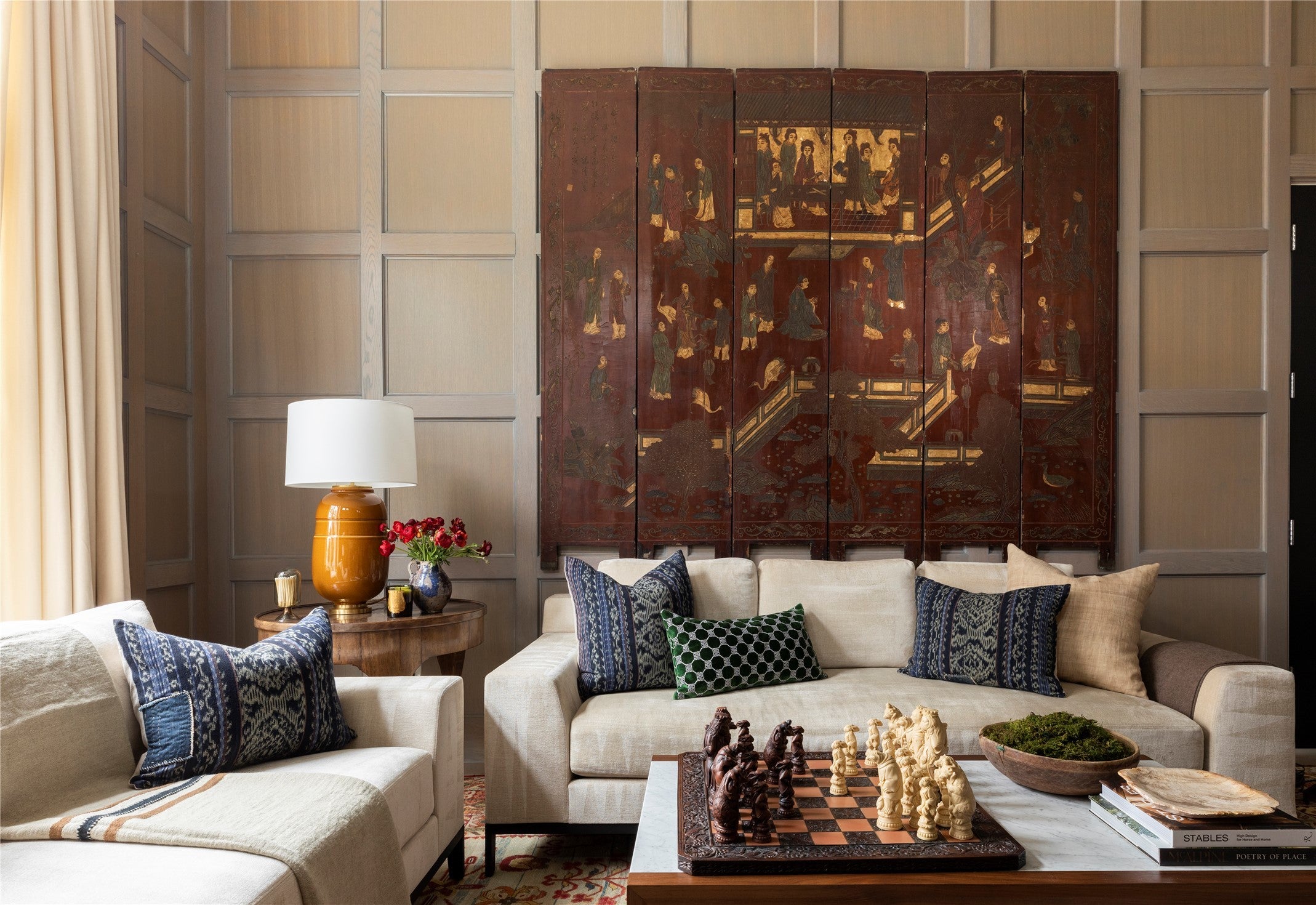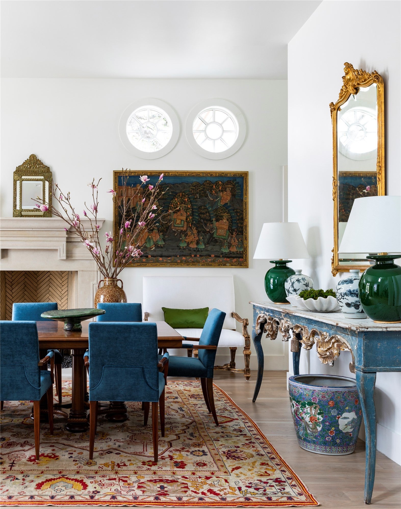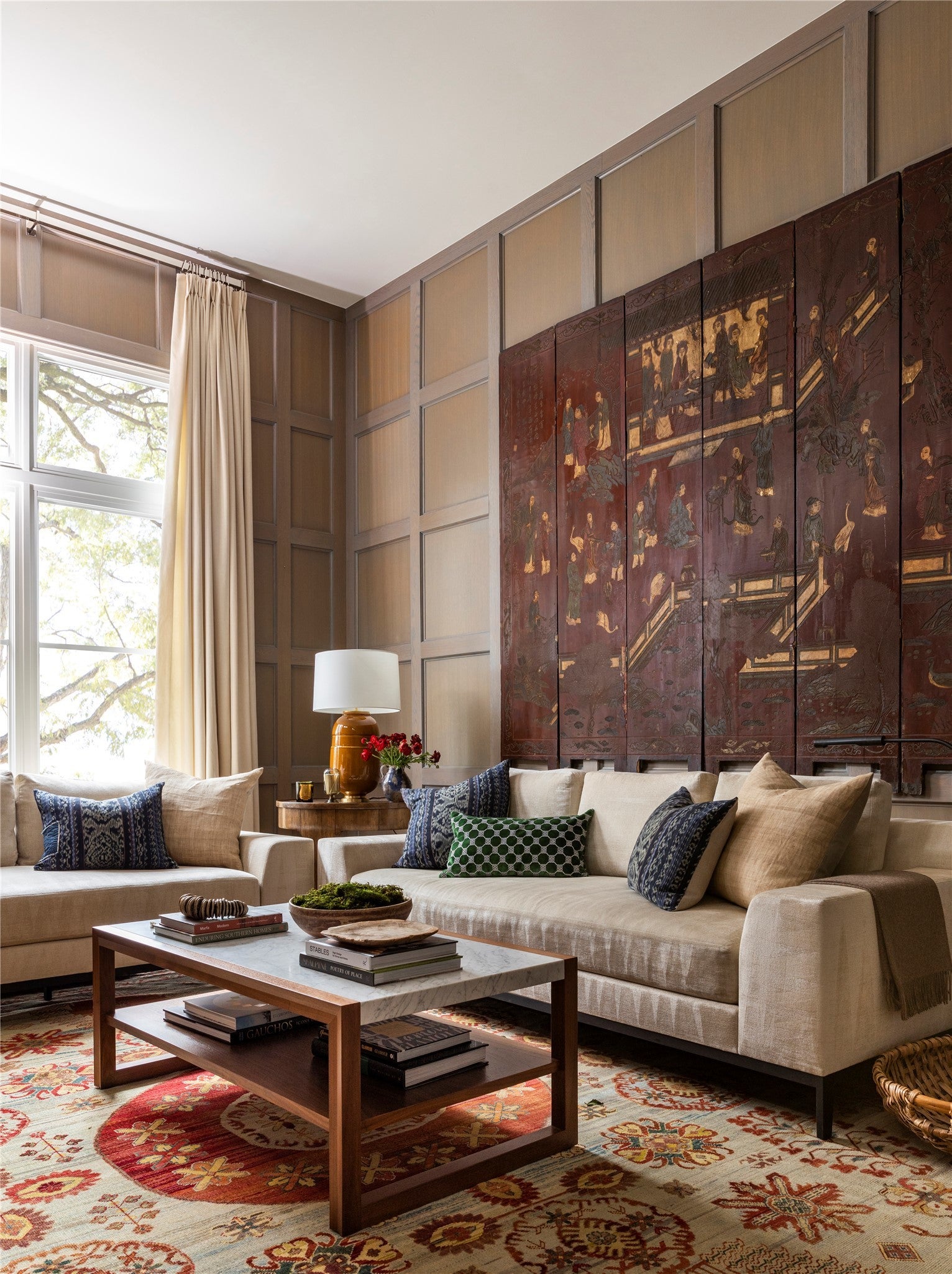 Elegance abounds in this stately four-bedroom, four-and-a-half-bathroom residence featuring curated interiors, four living areas, multiple striking fireplaces and a manicured poolside outdoor space in Austin’s sought-after Tarrytown neighborhood. Situated on a cul-de-sac street, this beautifully appointed home delivers an exquisite backdrop for elevated living and entertaining with high ceilings, bespoke millwork and intentional finishes throughout. Tall entry doors open to a grand foyer flanked by a staircase. The sophisticated formal dining room invites you to plan your next dinner party alongside a distinct Lueders stone fireplace. Enjoy a more intimate setting in the library with floor-to-ceiling wood paneling and handsome bookcases flanking another refined fireplace. Designed for effortless living, the main gathering area seamlessly flows to the adjacent kitchen and breakfast spaces that can also be closed off by concealed pocket doors. The primary bedroom suite is situated on the main level overlooking the pool through an expansive corner steel window unit. Above, three equally well-appointed secondary suites surround their own gathering room with treetop views. A hidden bookcase door leads you to an additional living area that is ideal as a wellness room, bunkroom or office. Outside enjoy al fresco gatherings in the pristine, secluded yard featuring a swimming pool, tall privacy walls, and established greenery. The covered patio is the perfect destination for all-season outdoor entertaining. A large motor court in front and a two-car garage accessible from the rear alley add abundant off-street parking to this stunning Austin sanctuary.