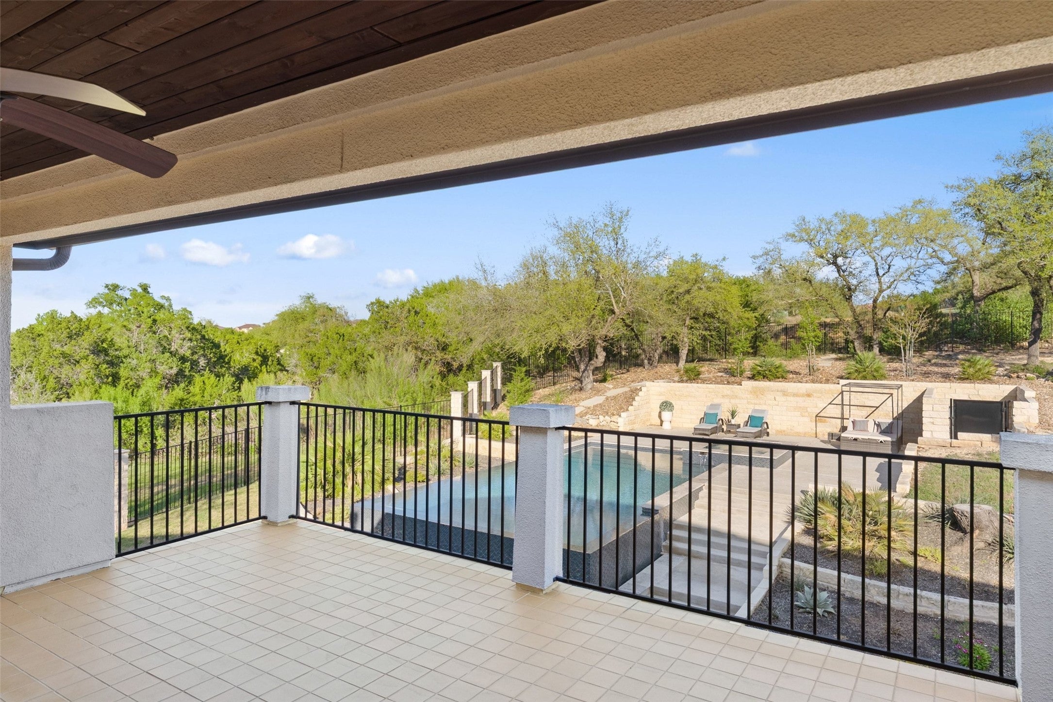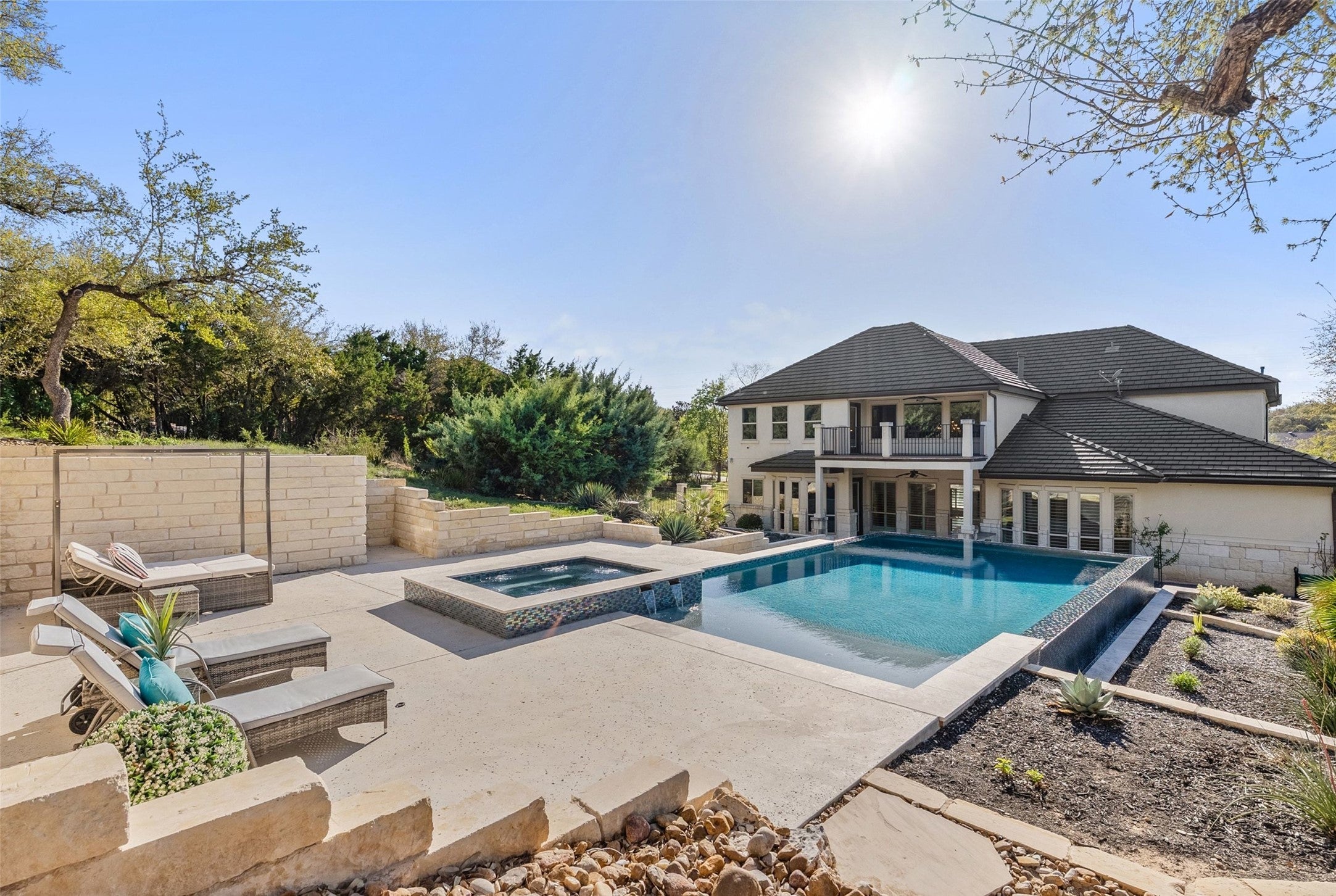 Gated Bella Montagna estate on a private, landscaped one-acre lot with Hill Country views and over $600K in recent enhancements. Double iron doors open to a light-filled interior with expansive windows, beamed ceilings, and a fireplace. The main living area is elevated with custom built-ins and integrated lighting, creating a clean, refined focal point. The kitchen offers high-end stainless appliances, a large center island, and seamless flow for everyday living and entertaining. The primary suite is a true retreat with a sitting area, spa-inspired bath, and fully customized boutique-style closet. A flexible bonus space off the bath works well as a fitness room, office, or nursery. Upstairs features a game room, media room, and work/study areas. One secondary bath has been fully remodeled with a contemporary design, including a soaking tub, bidet, and towel warmer. Attached casita with private entrance and full bath—ideal for guests, extended stays, or a separate office. Outdoor living is dialed in with a recently added pool, patios, and over $100K in professional landscaping, offering privacy and space to enjoy the setting. Lake Travis ISD. Minutes to Lake Travis, golf, marinas, dining, and shopping.